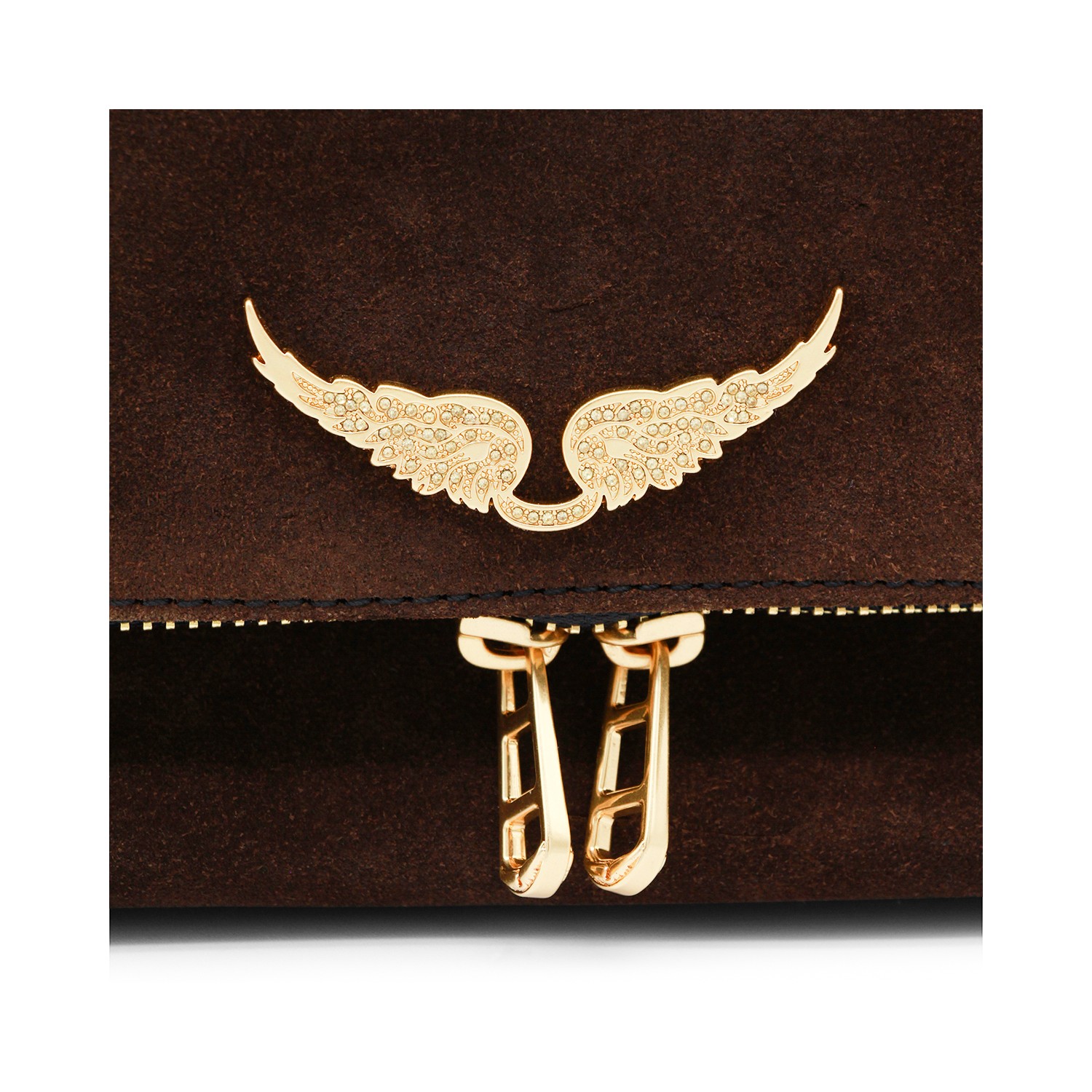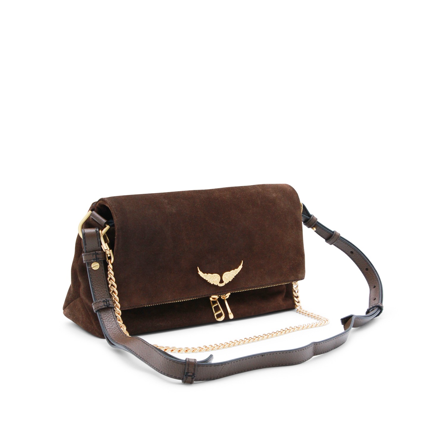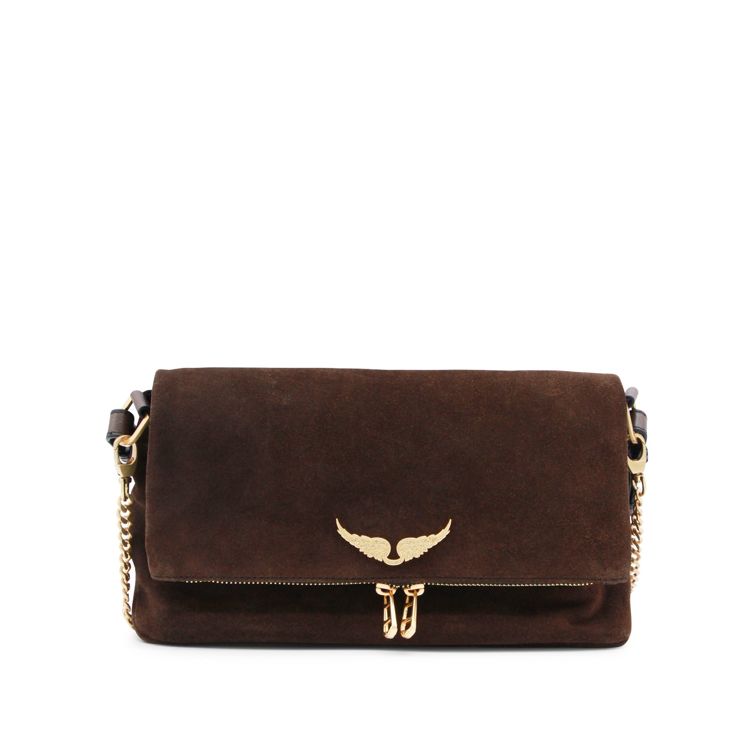 Wood leather Rock II Suede shoulder bag from Zadig&Voltaire featuring frontal fastening, chain, silver tone hardware and pocket.