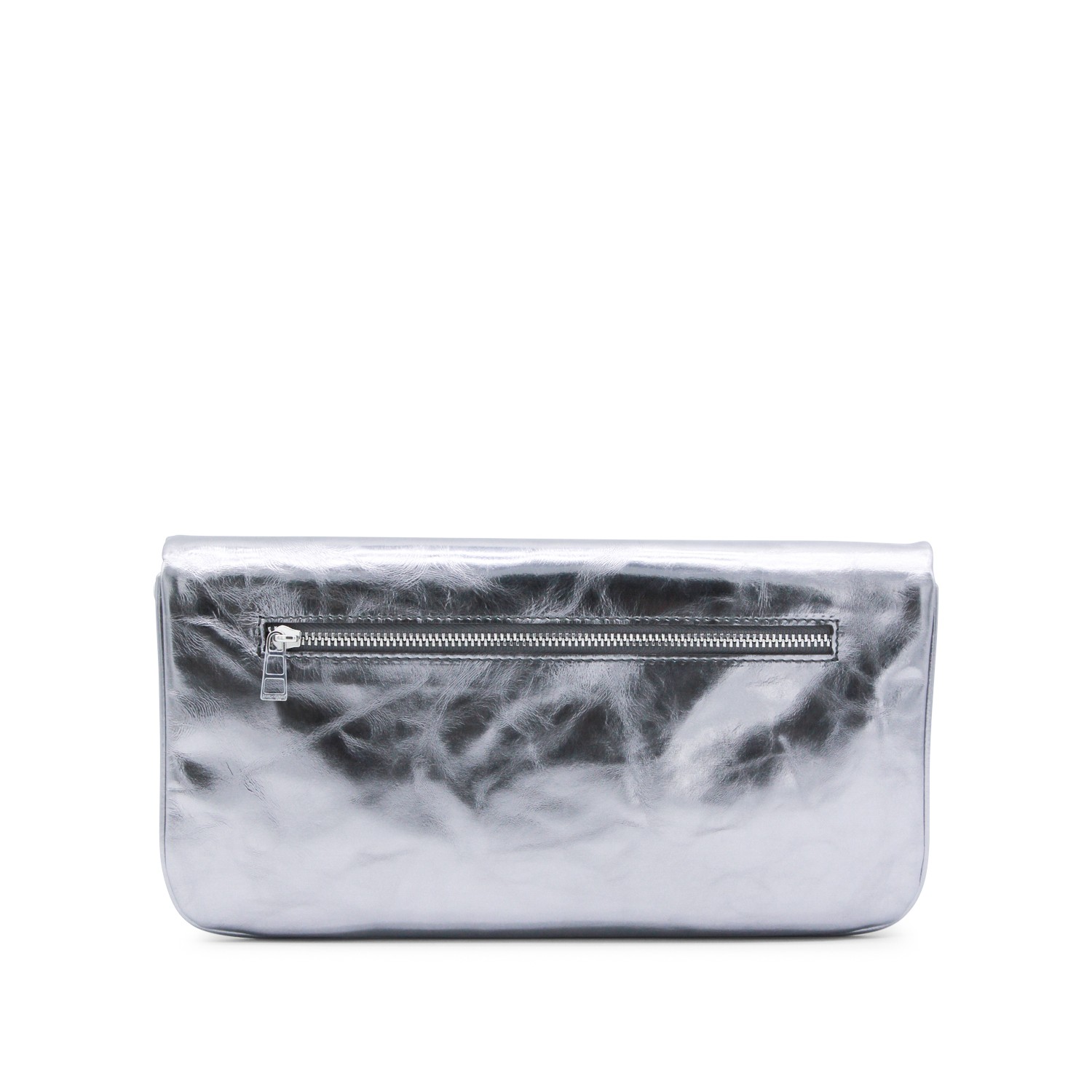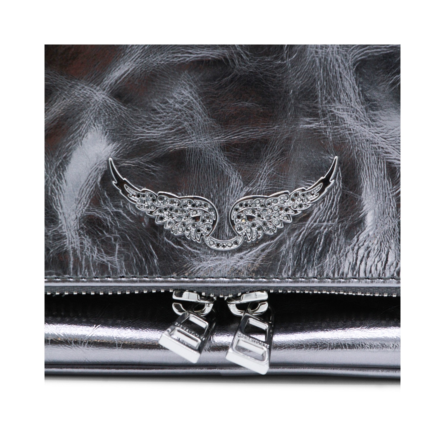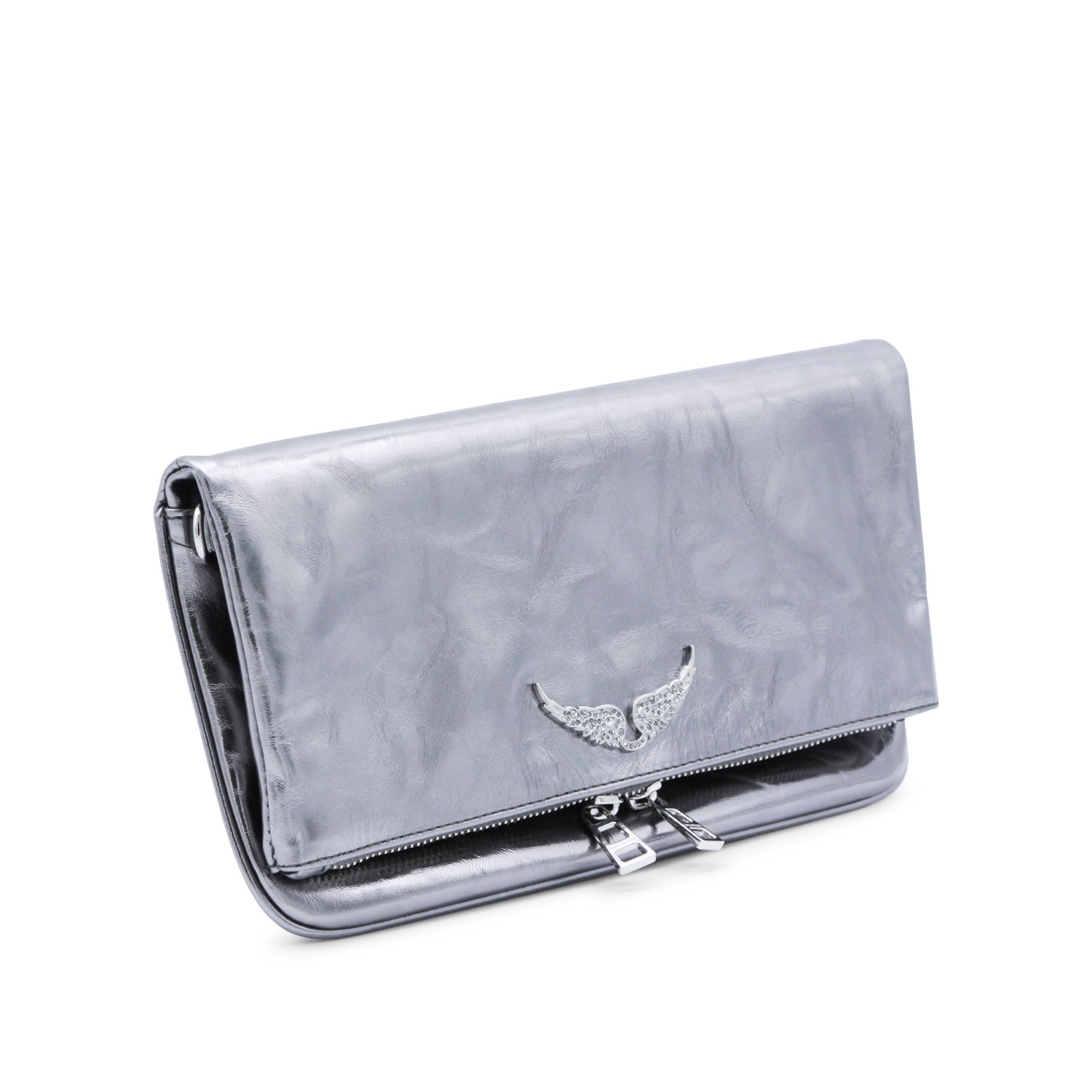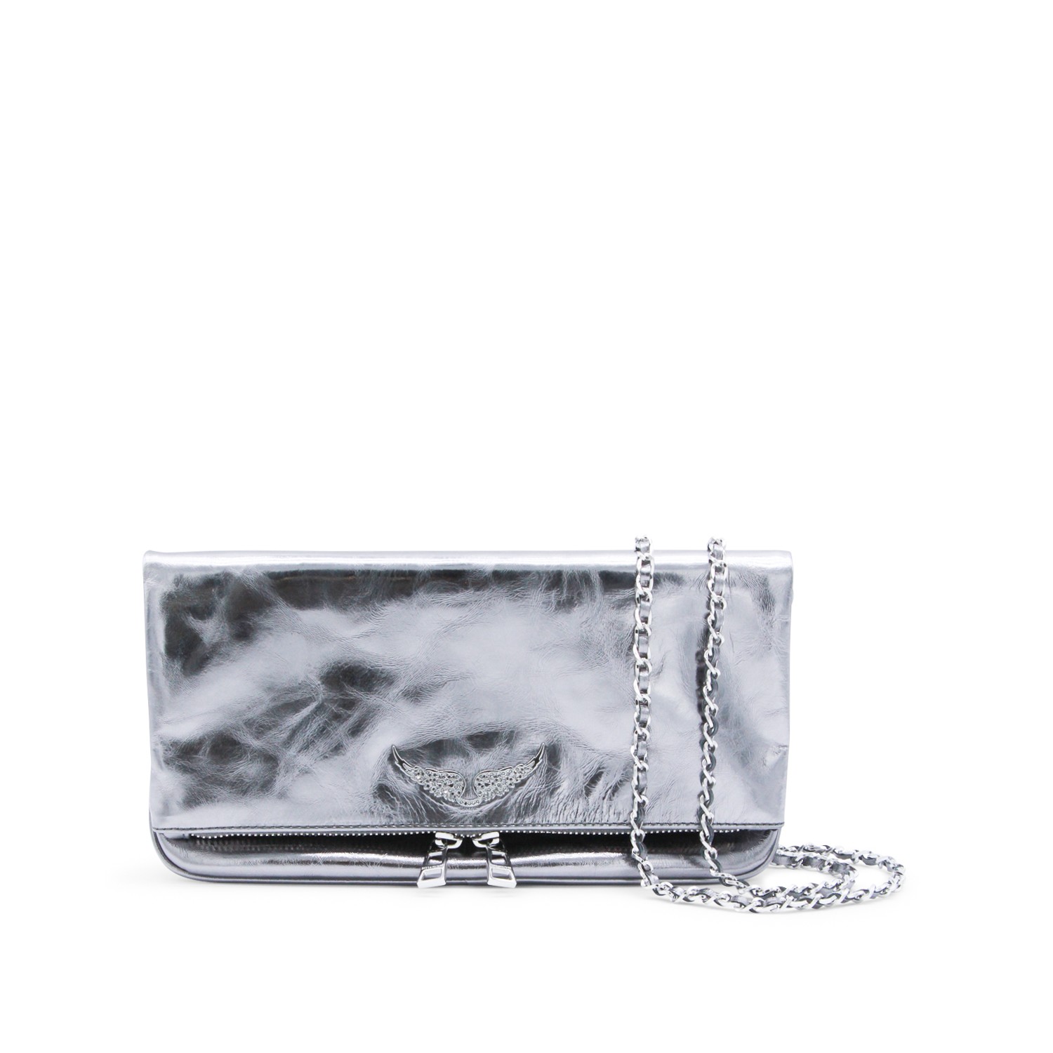 Silver leather Rock Vintage Metal shoulder bag from Zadig&Voltaire featuring frontal fastening, chain, silver tone hardware and pocket.