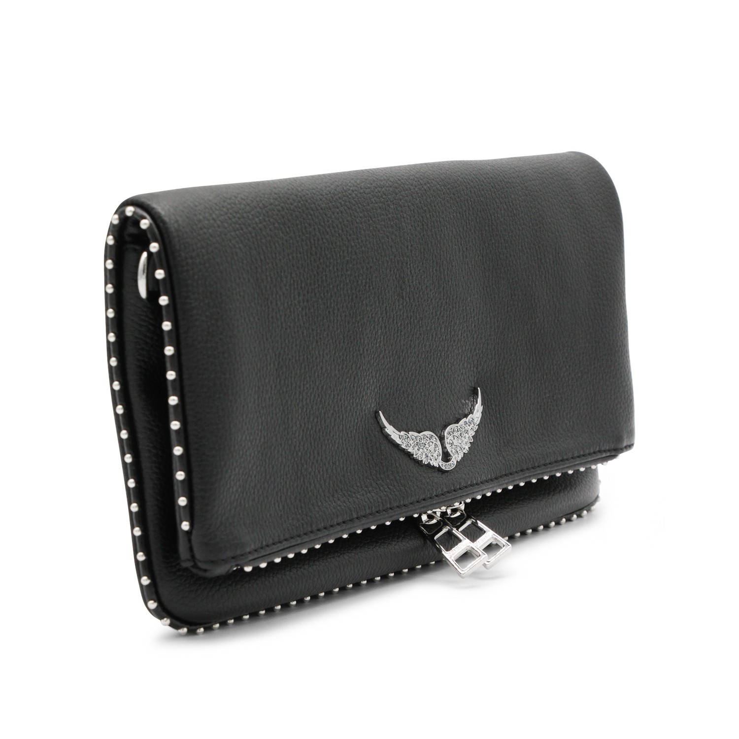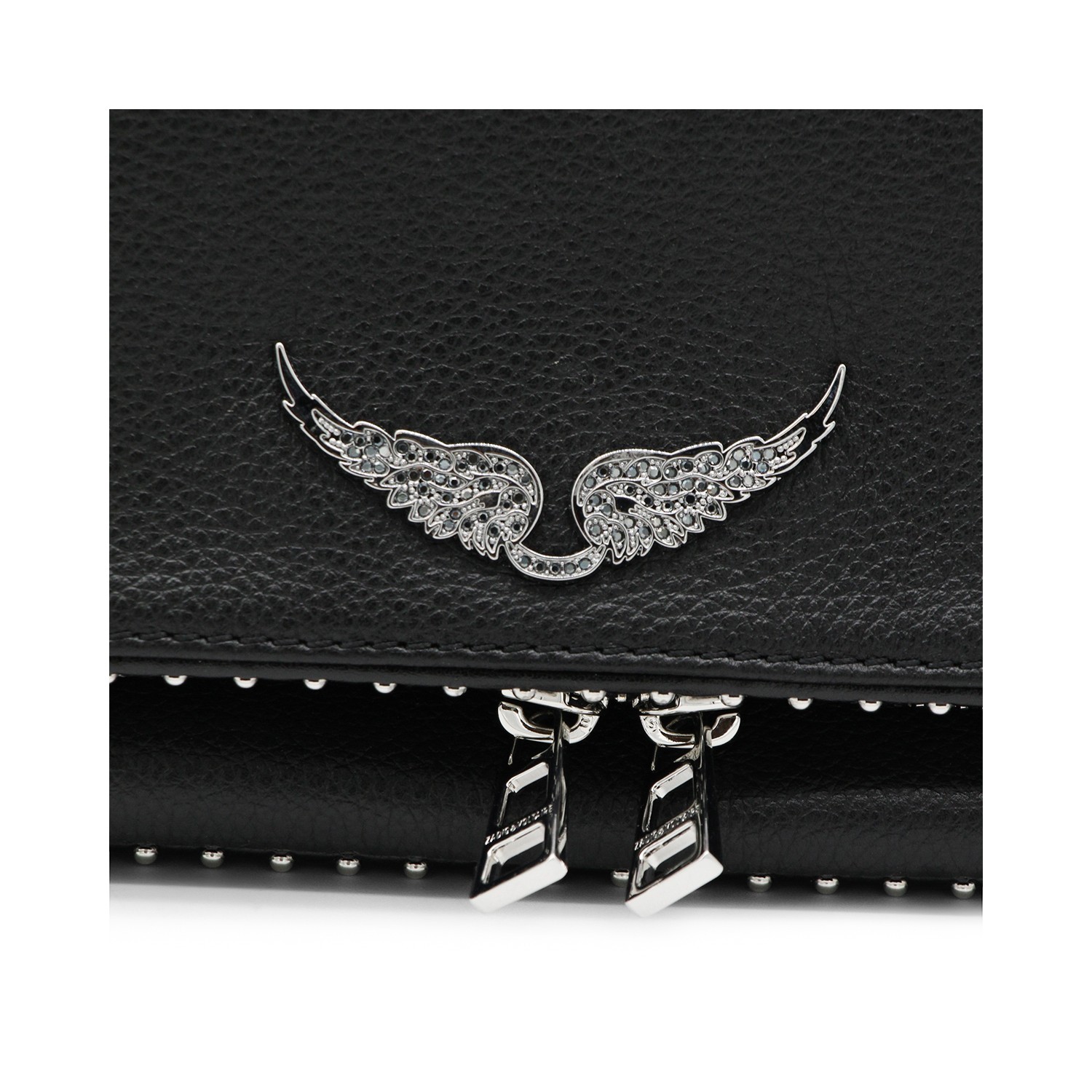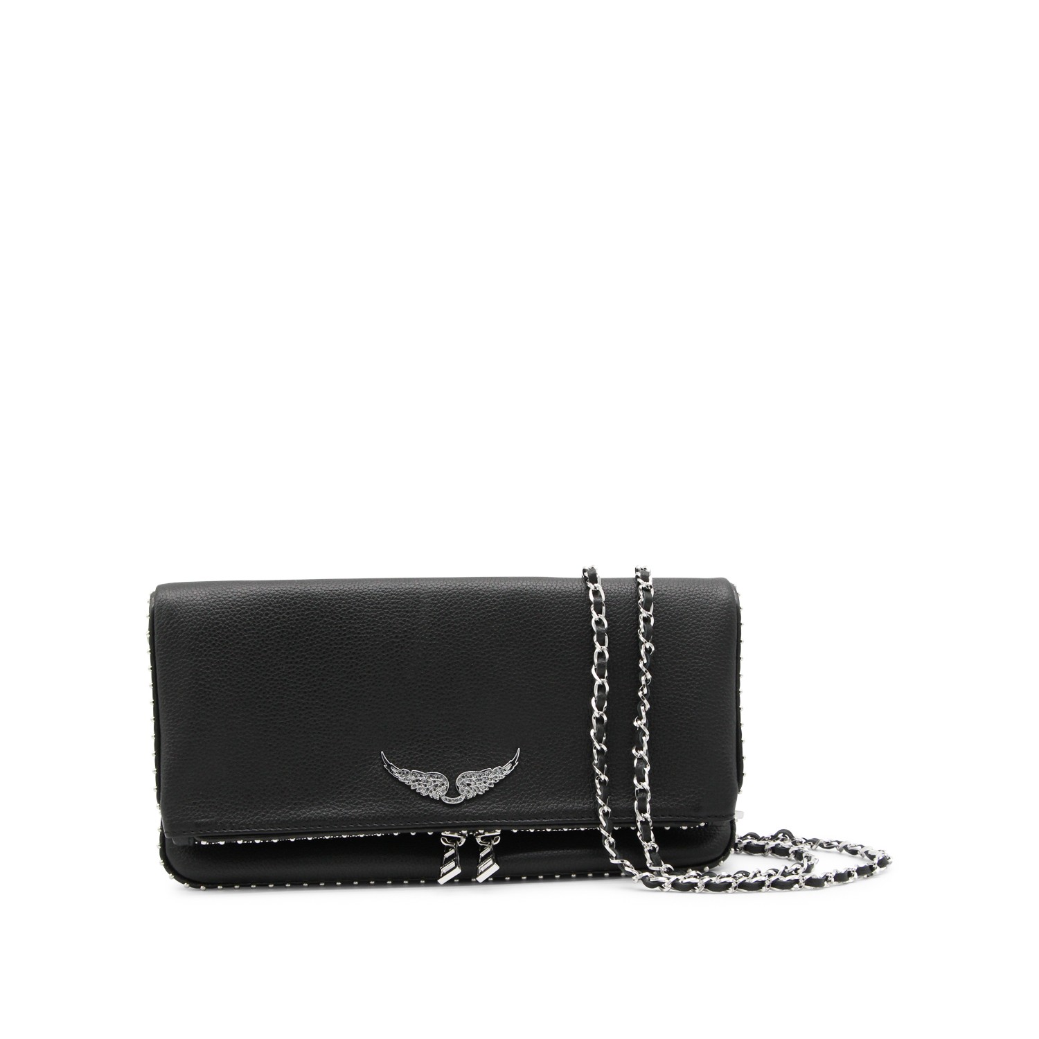 Black Rock Grained leather shoulder bag from Zadig&Voltaire featuring zip pocket, frontal logo, chain, magnetic fastening and details.