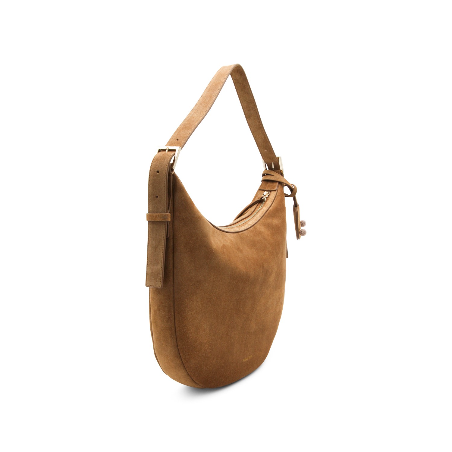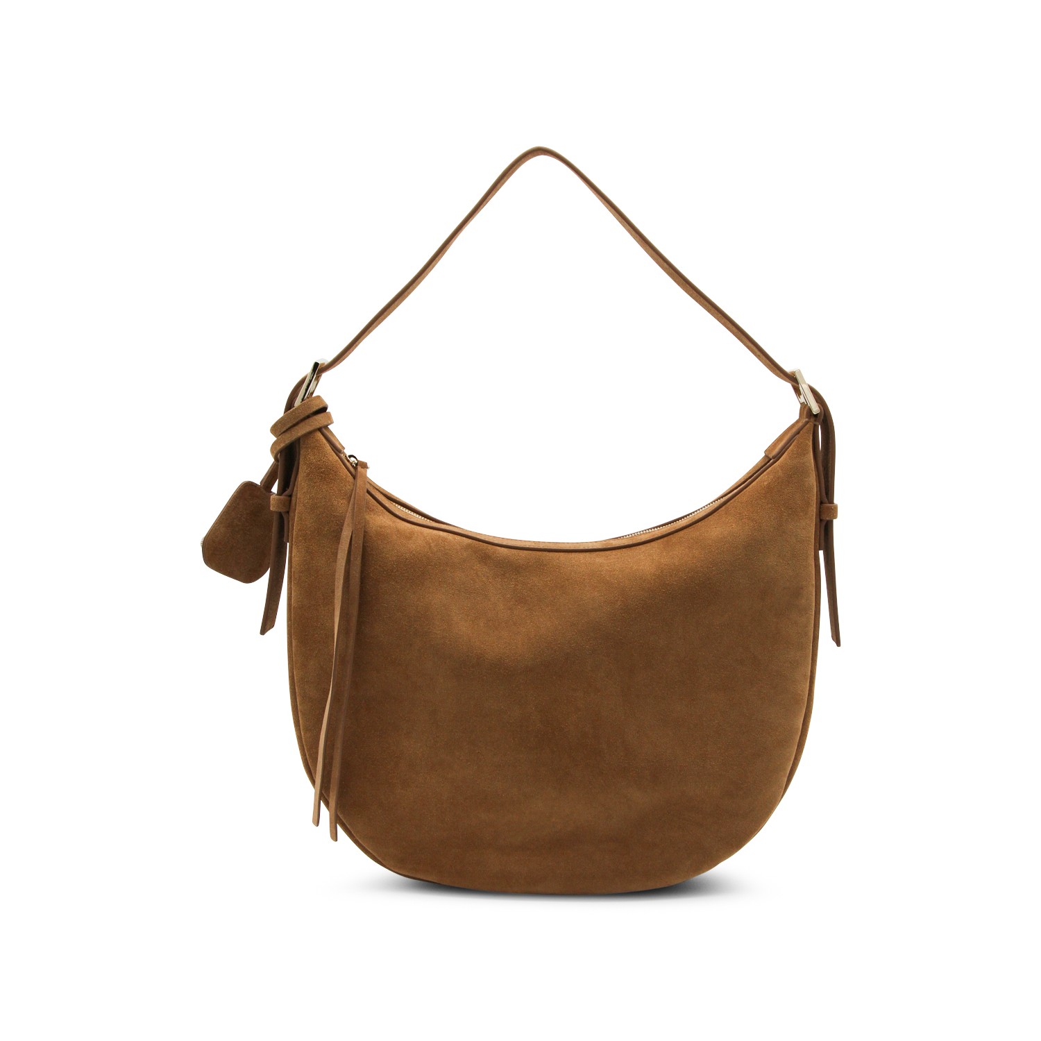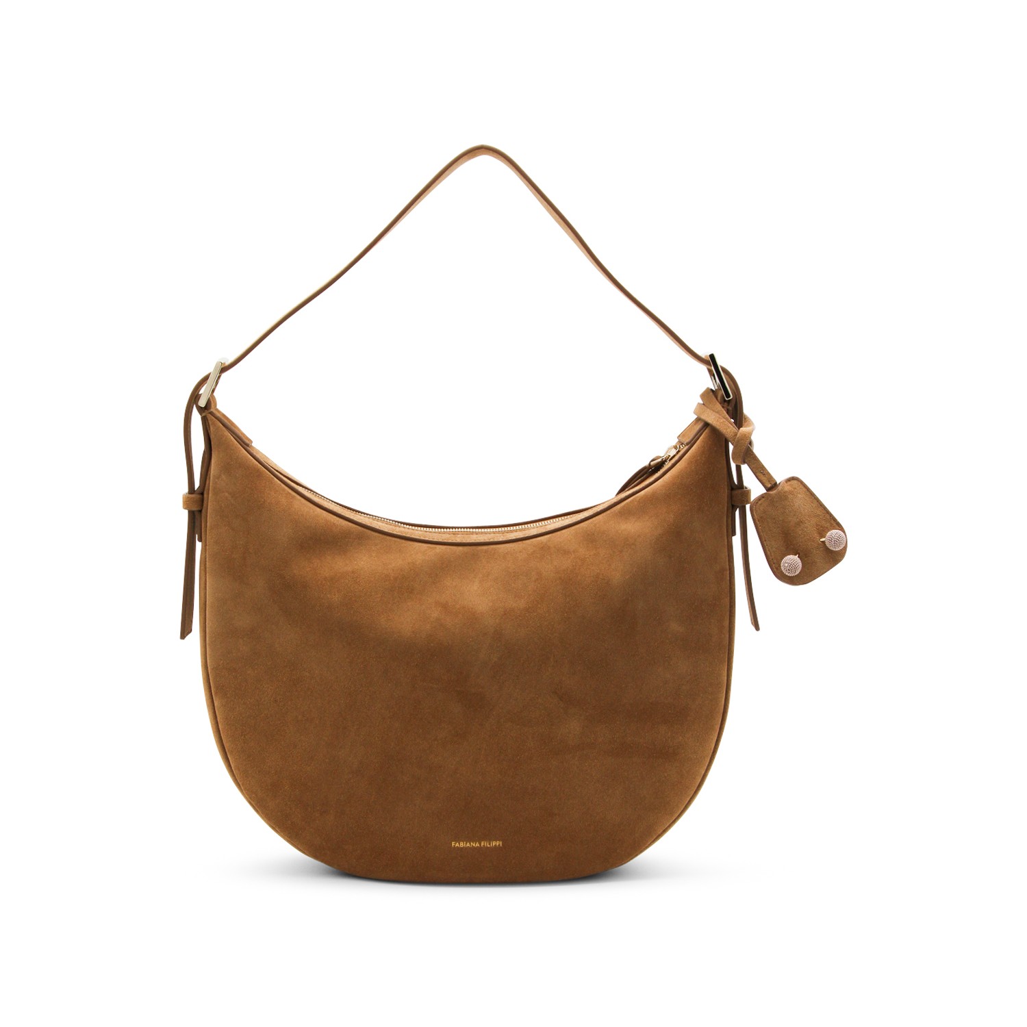 Brown leather shoulder bag from Fabiana Filippi featuring top adjustable handle, main compartment and frontal logo.