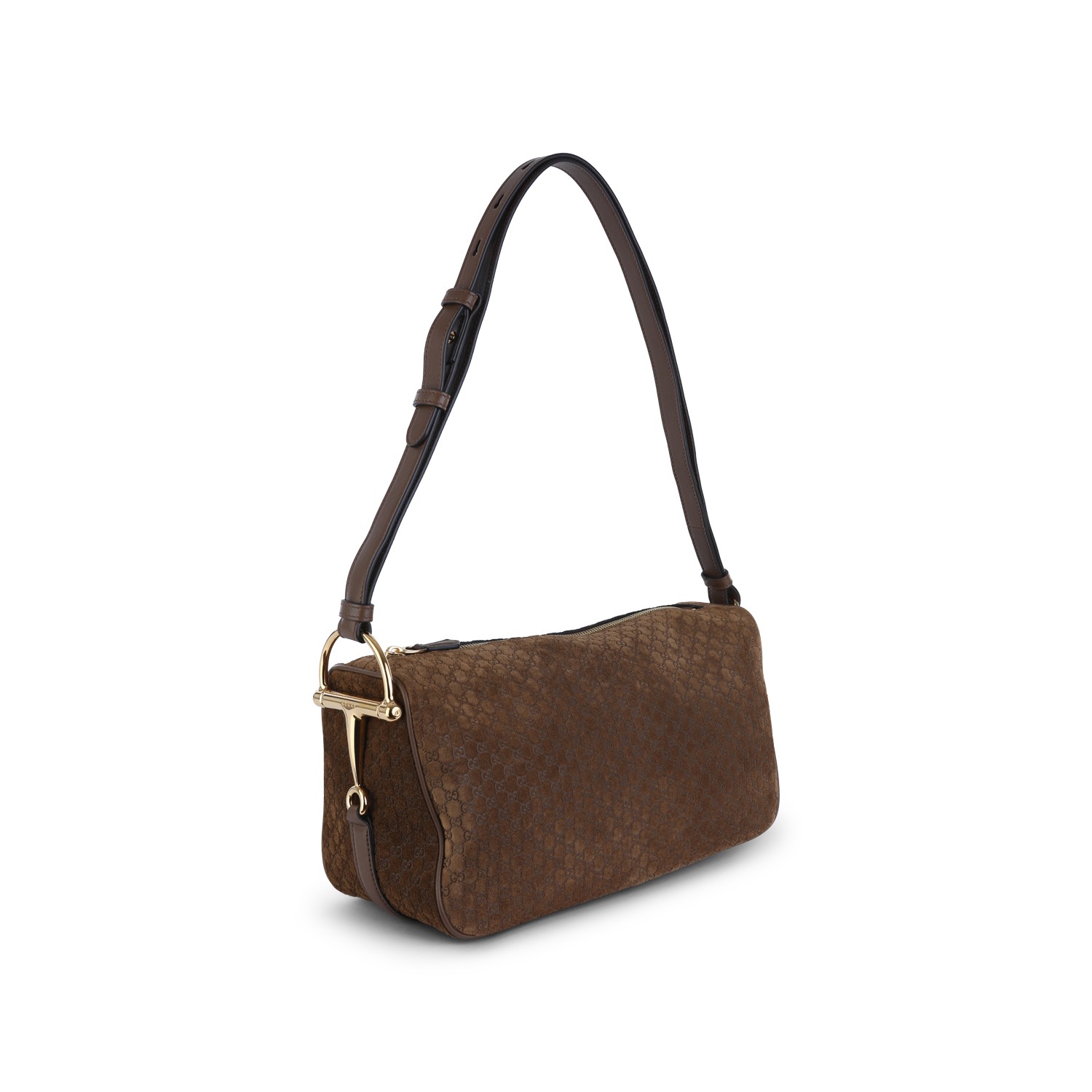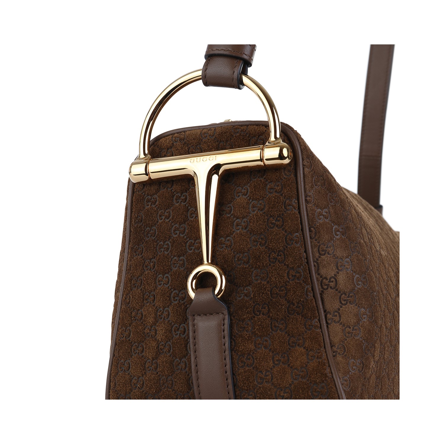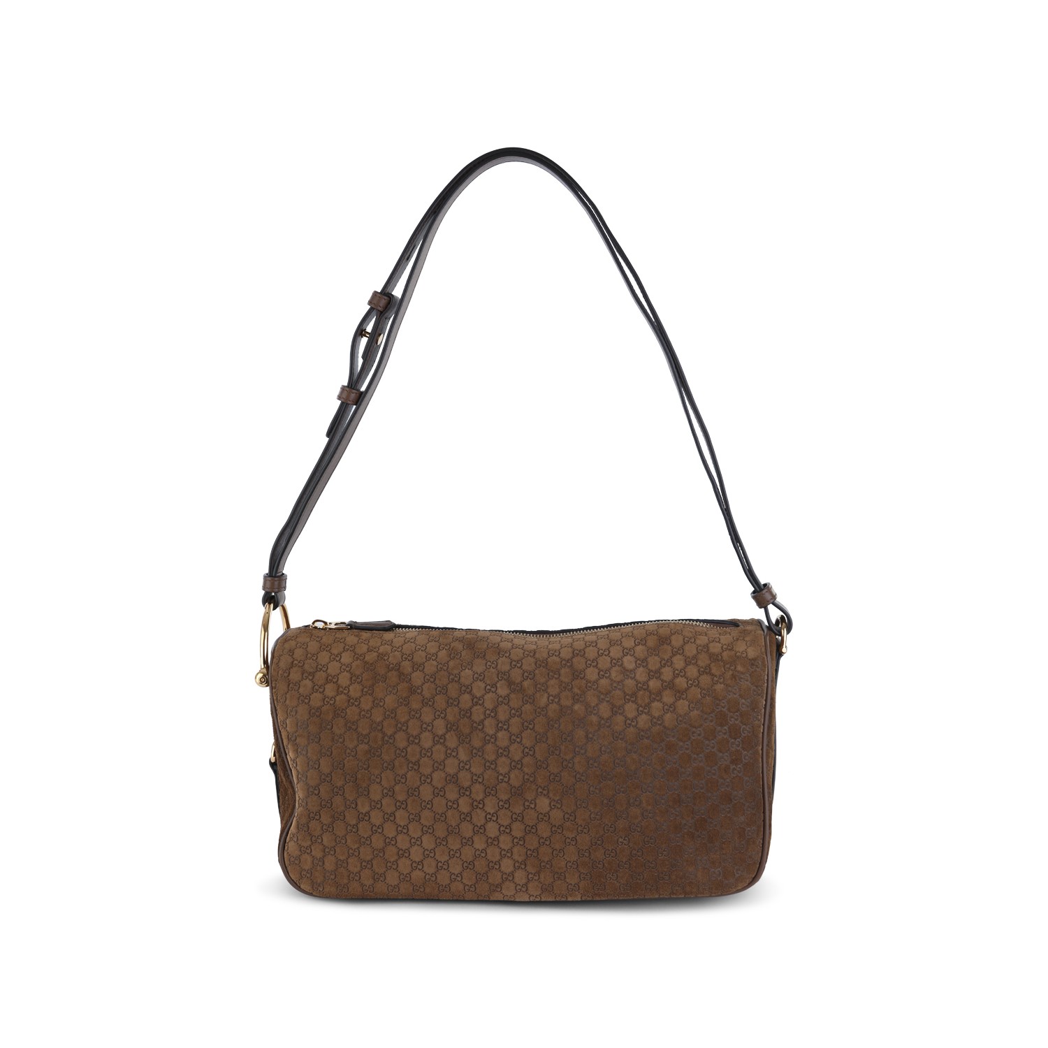 Brown leather shoulder bag from Gucci featuring top adjustable handle, main compartment, zip fastening and gold tone hardware.