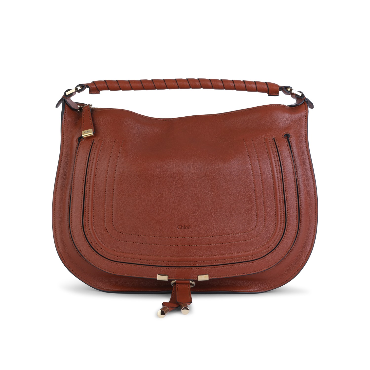 Brown leather Marcie shoulder bag from Chlofeaturing top handle, main compartment, button fastening, engraved logo and gold tone hardware.