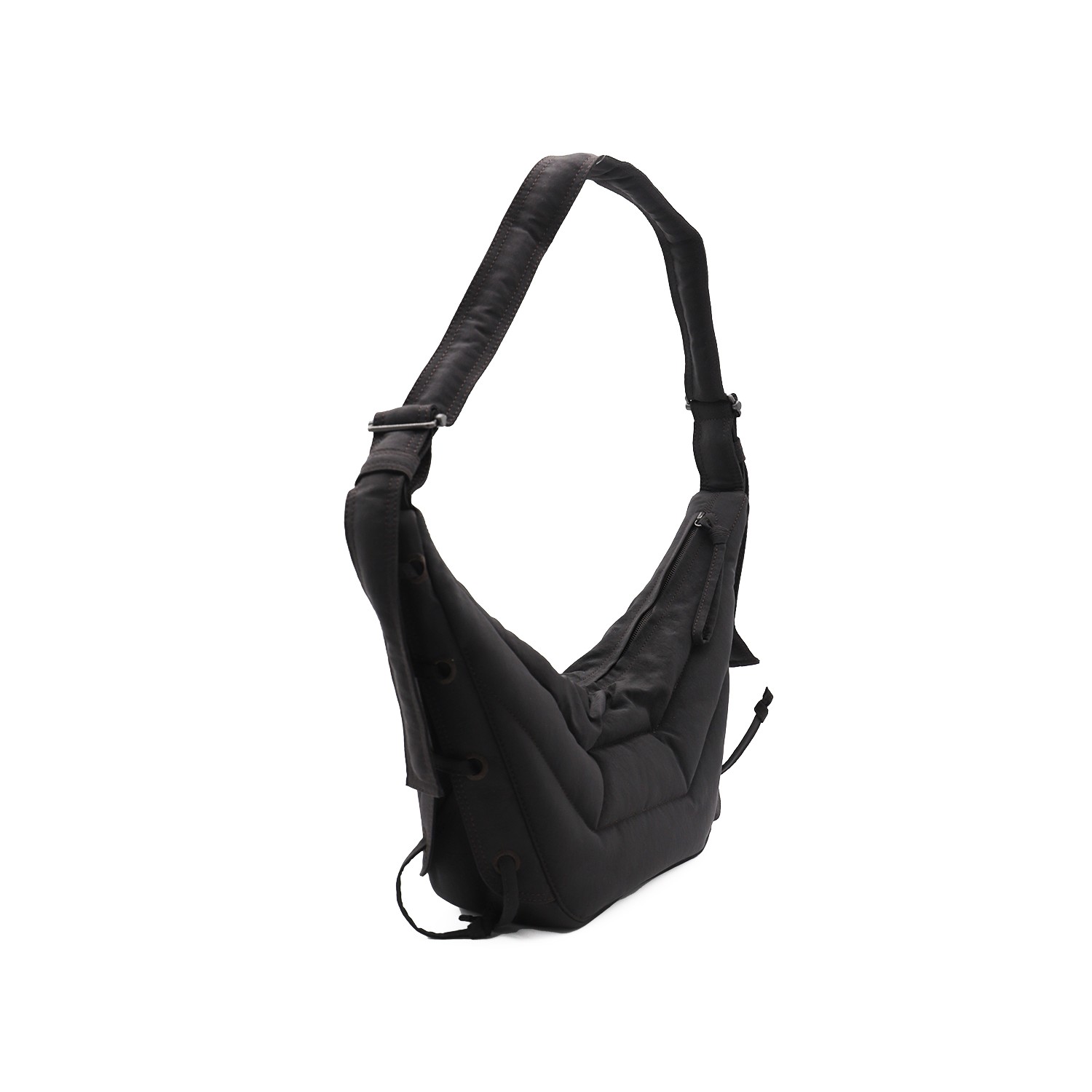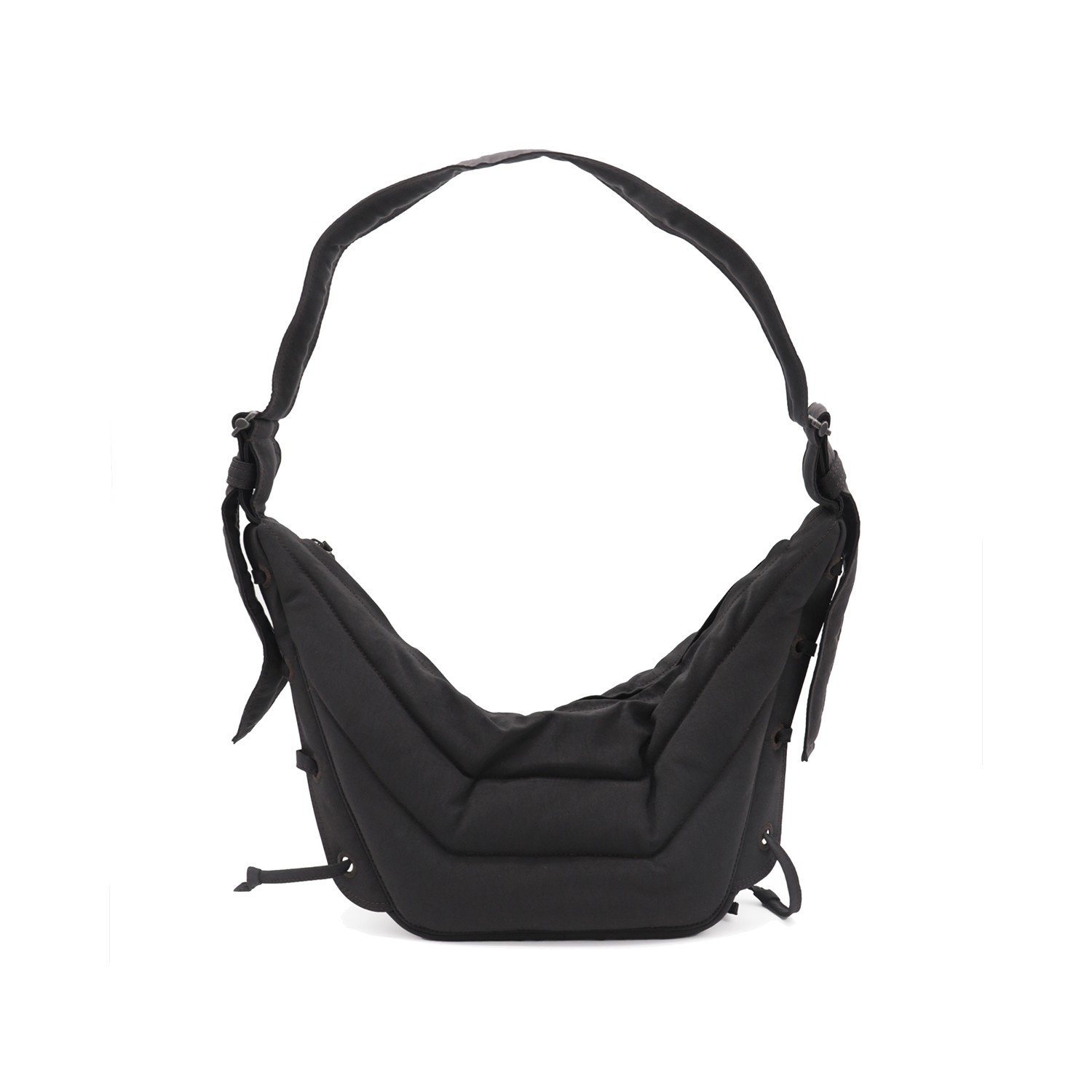 Black small Soft Game shoulder bag from Lemaire featuring shoulder strap, zip fastening, main compartment and internal pocket.