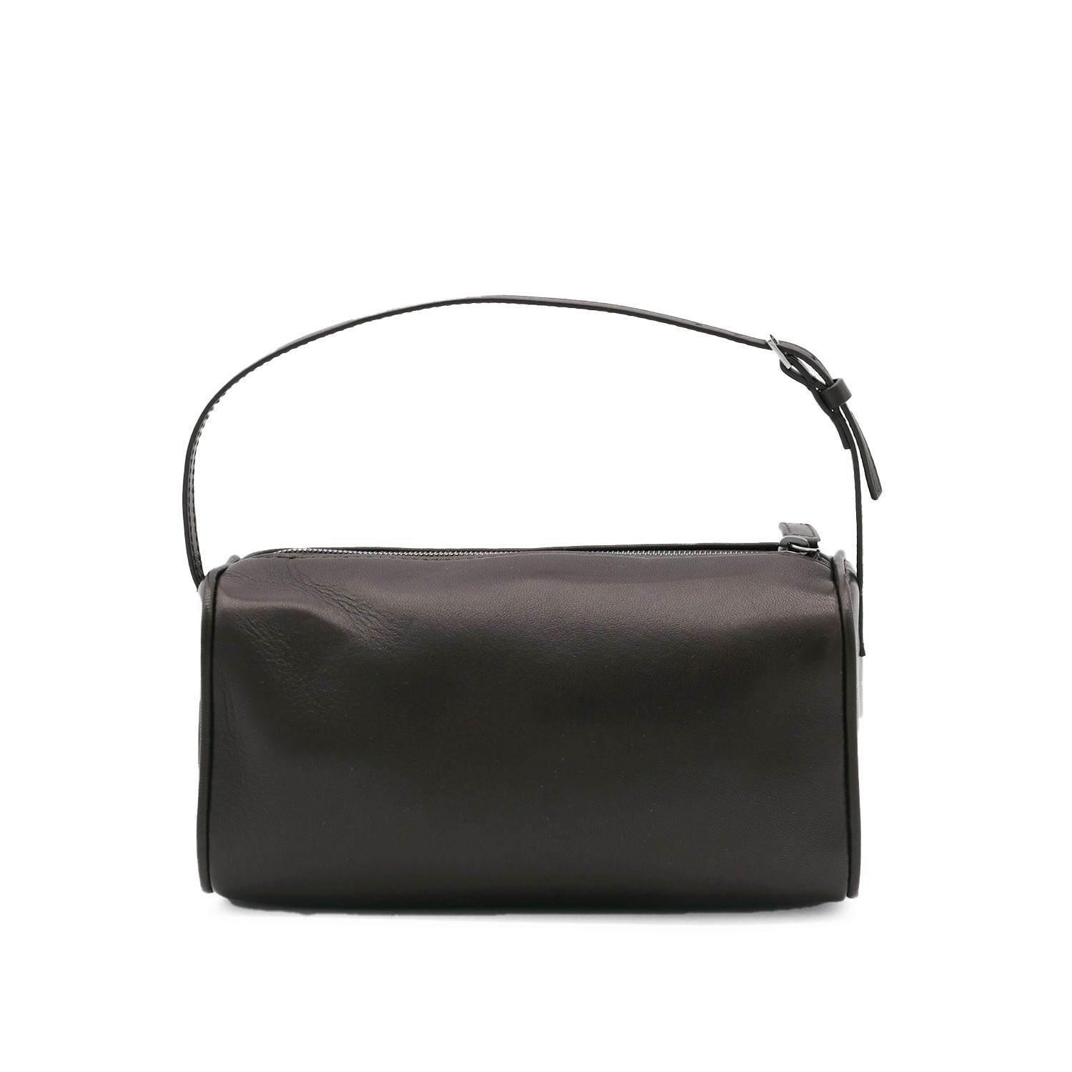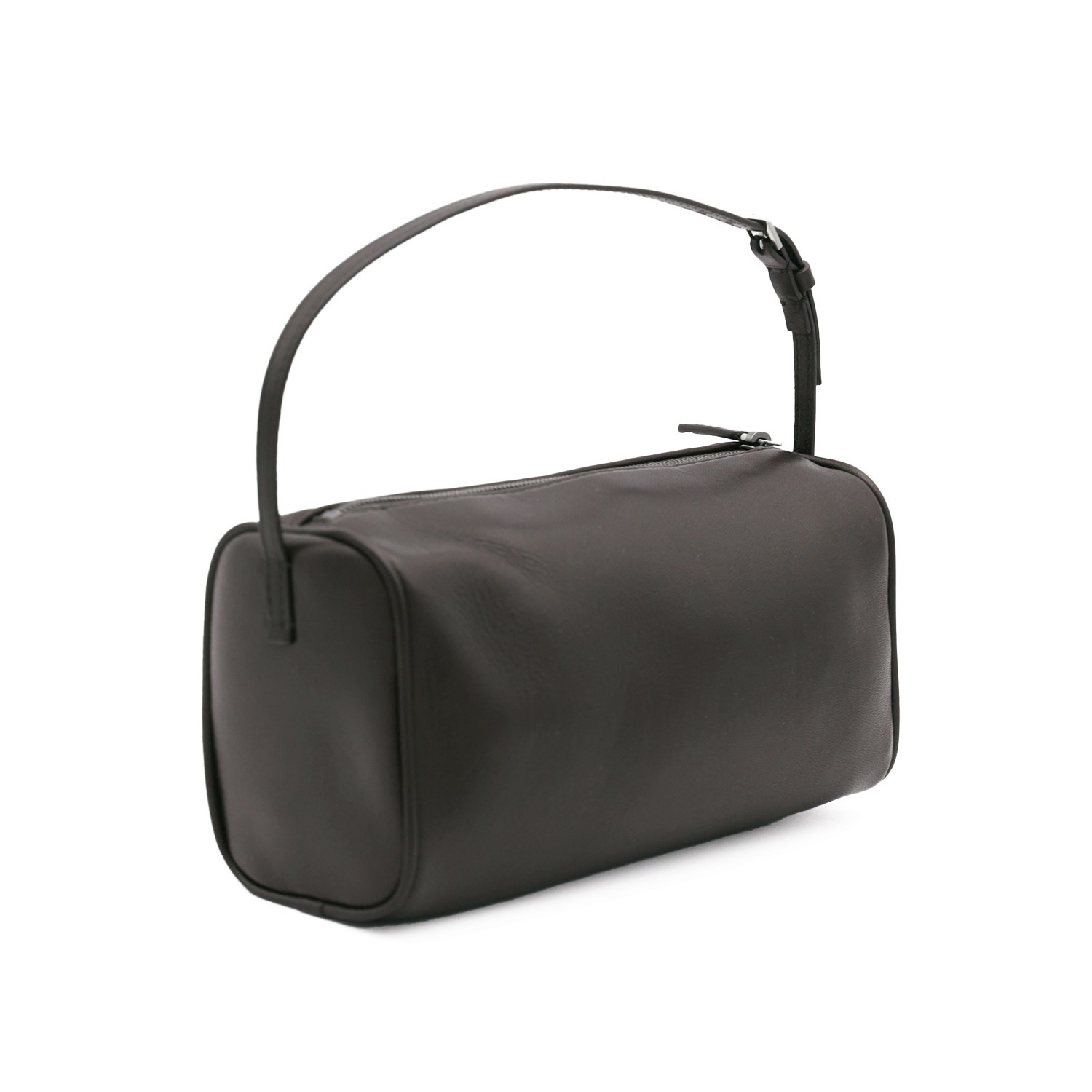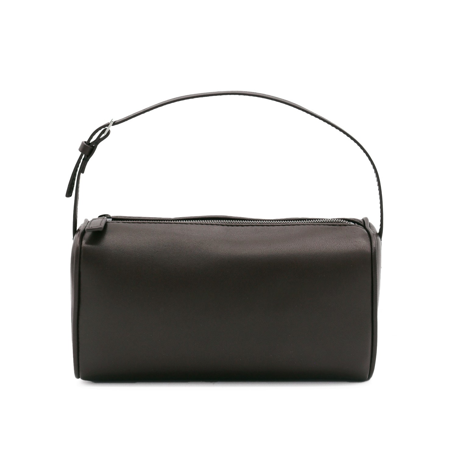 Brown leather 90s shoulder bag from The Row featuring top adjustable handle, slightly round edges, zip closure and main compartment.