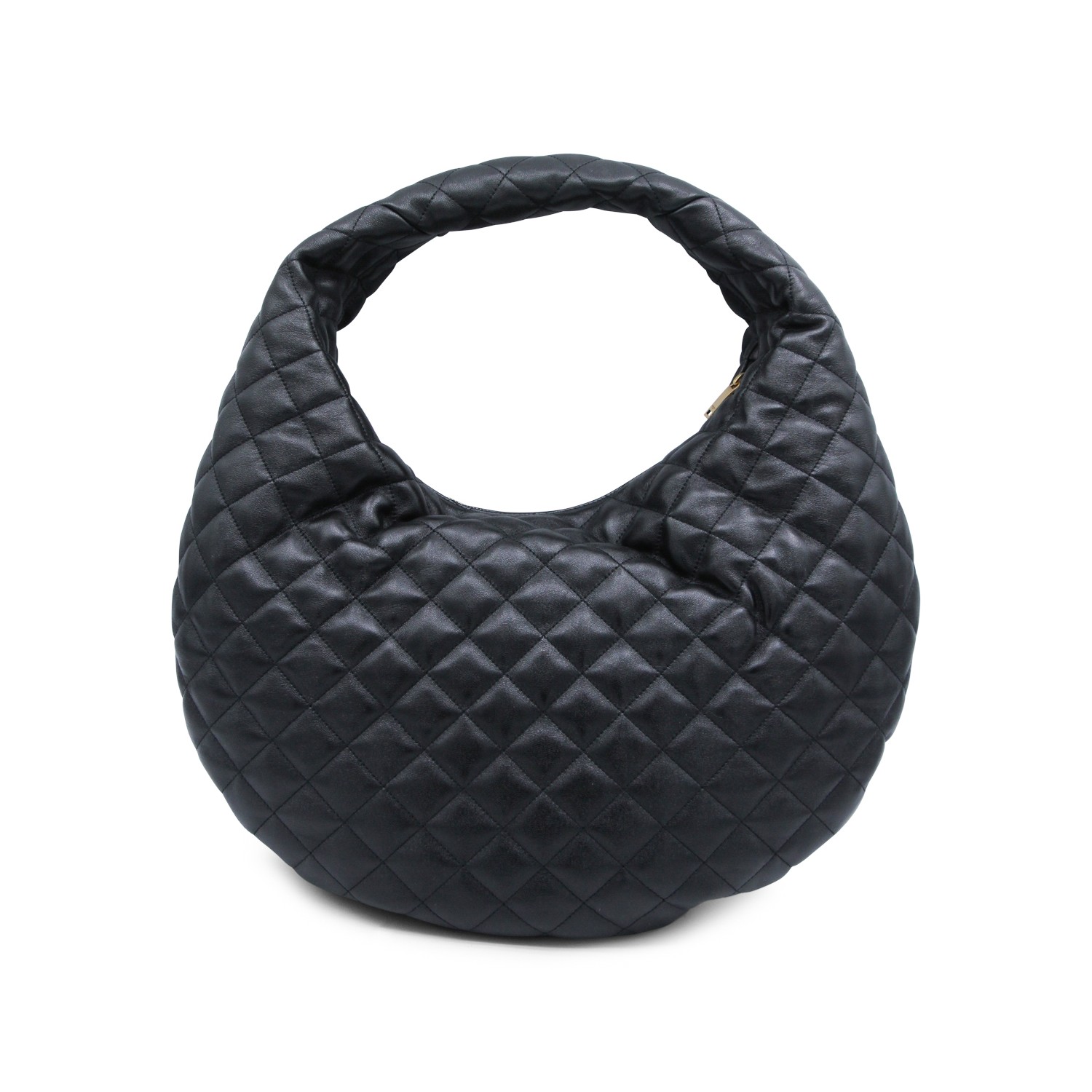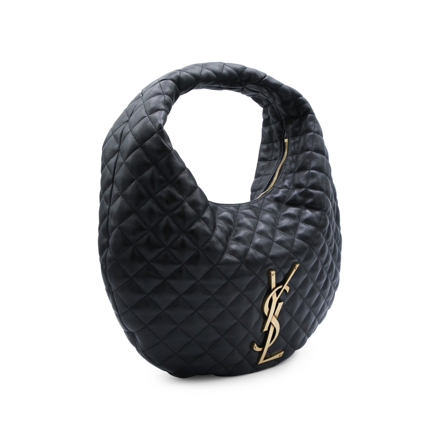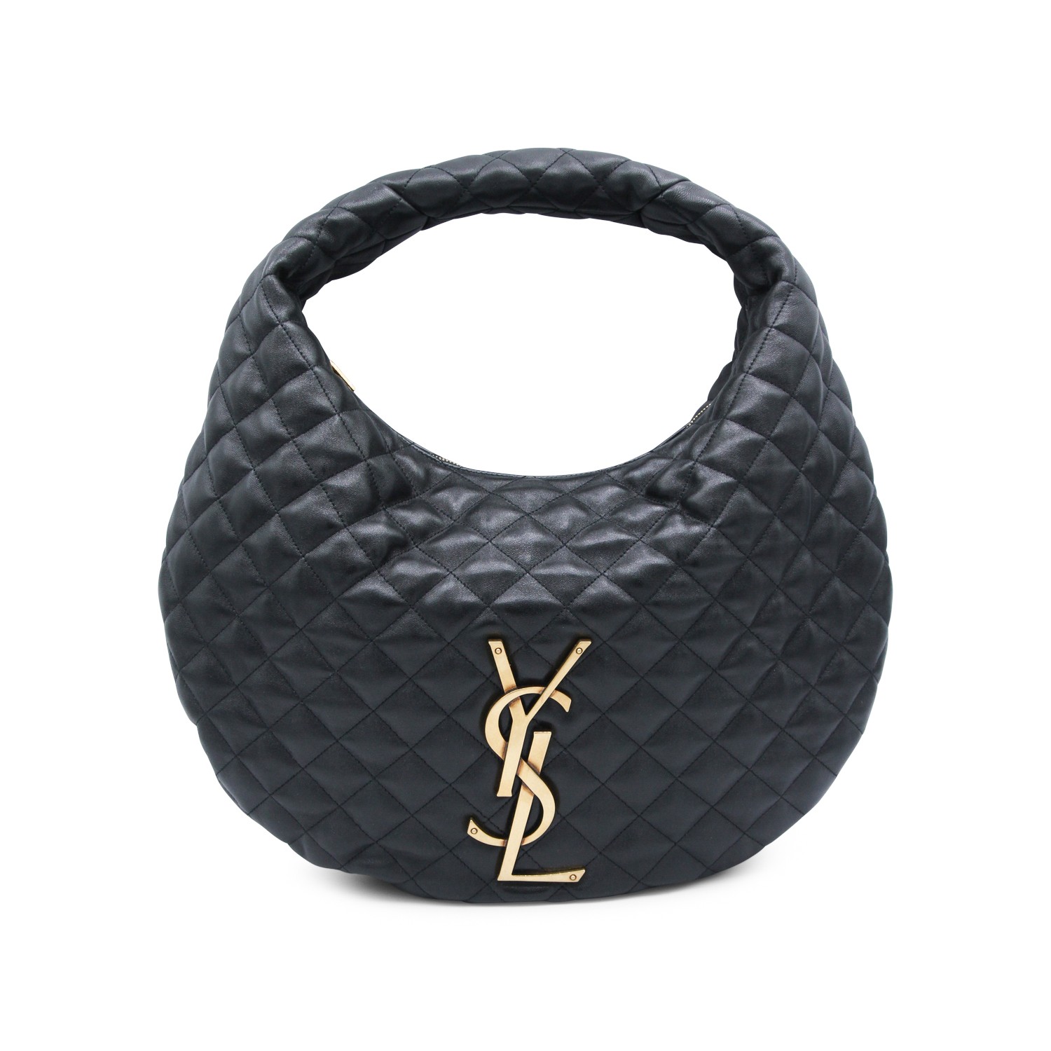 Black leather Icare Hobo shoulder bag from Saint Laurent featuring quilted effect, bronze metal hardware, zip fastening, monogram logo and main compartment.