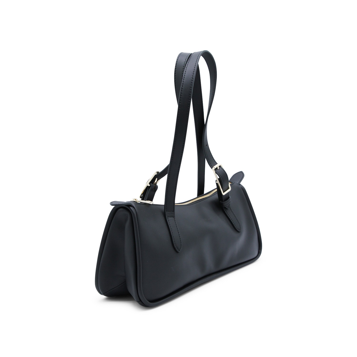 BLACK LEATHER LONG SAC SHOULDER BAG
