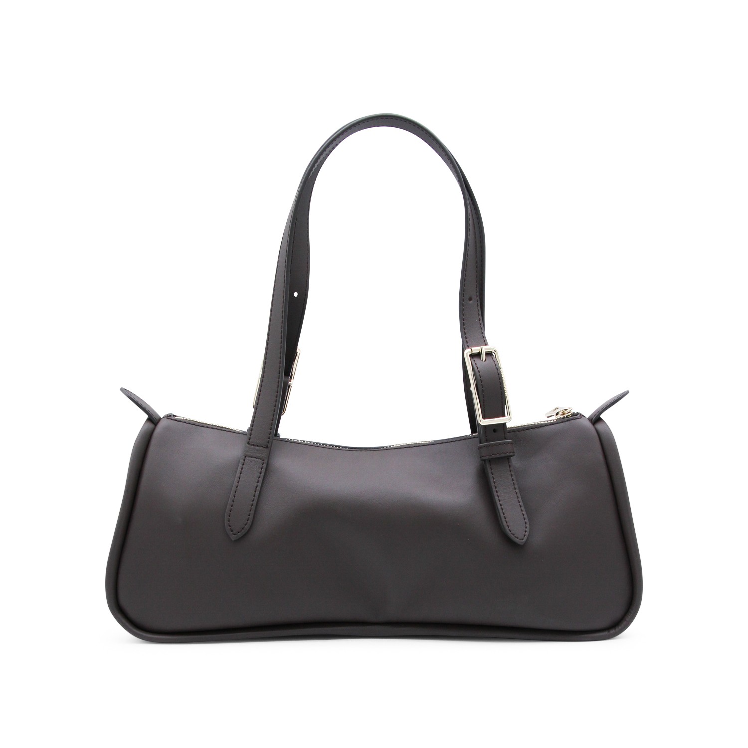 DARK BROWN LEATHER LONG SAC SHOULDER BAG