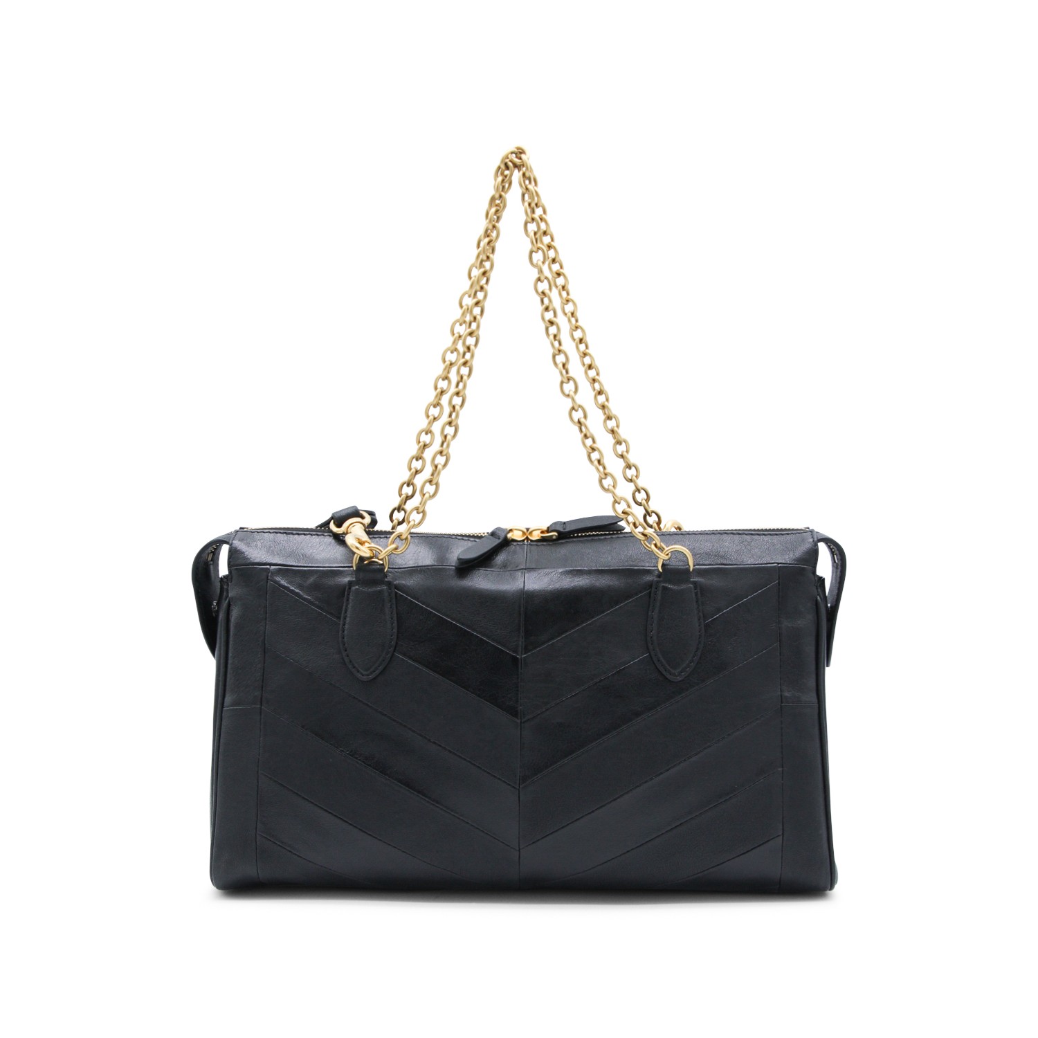 BLACK LEATHER PANTHEA SHOULDER BAG