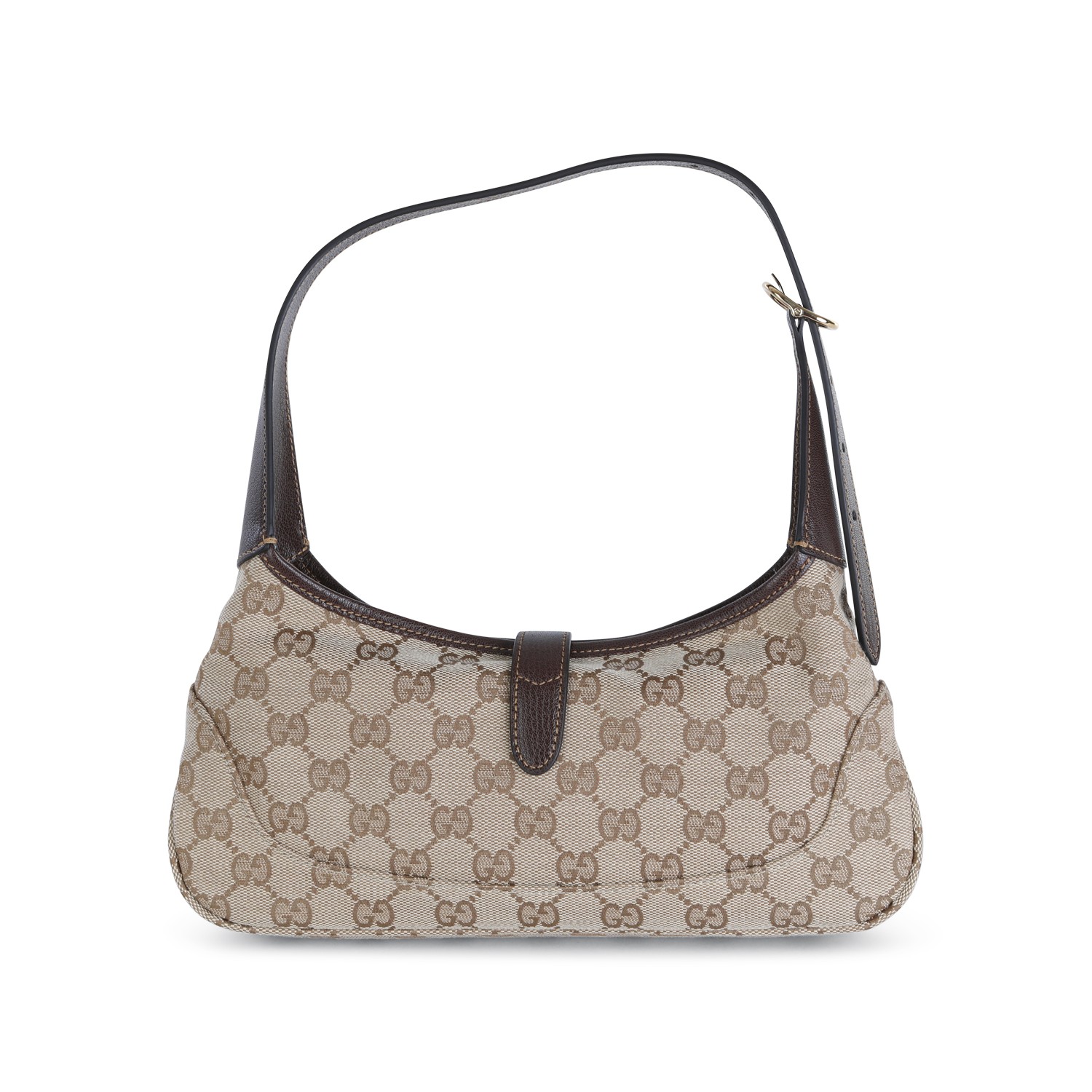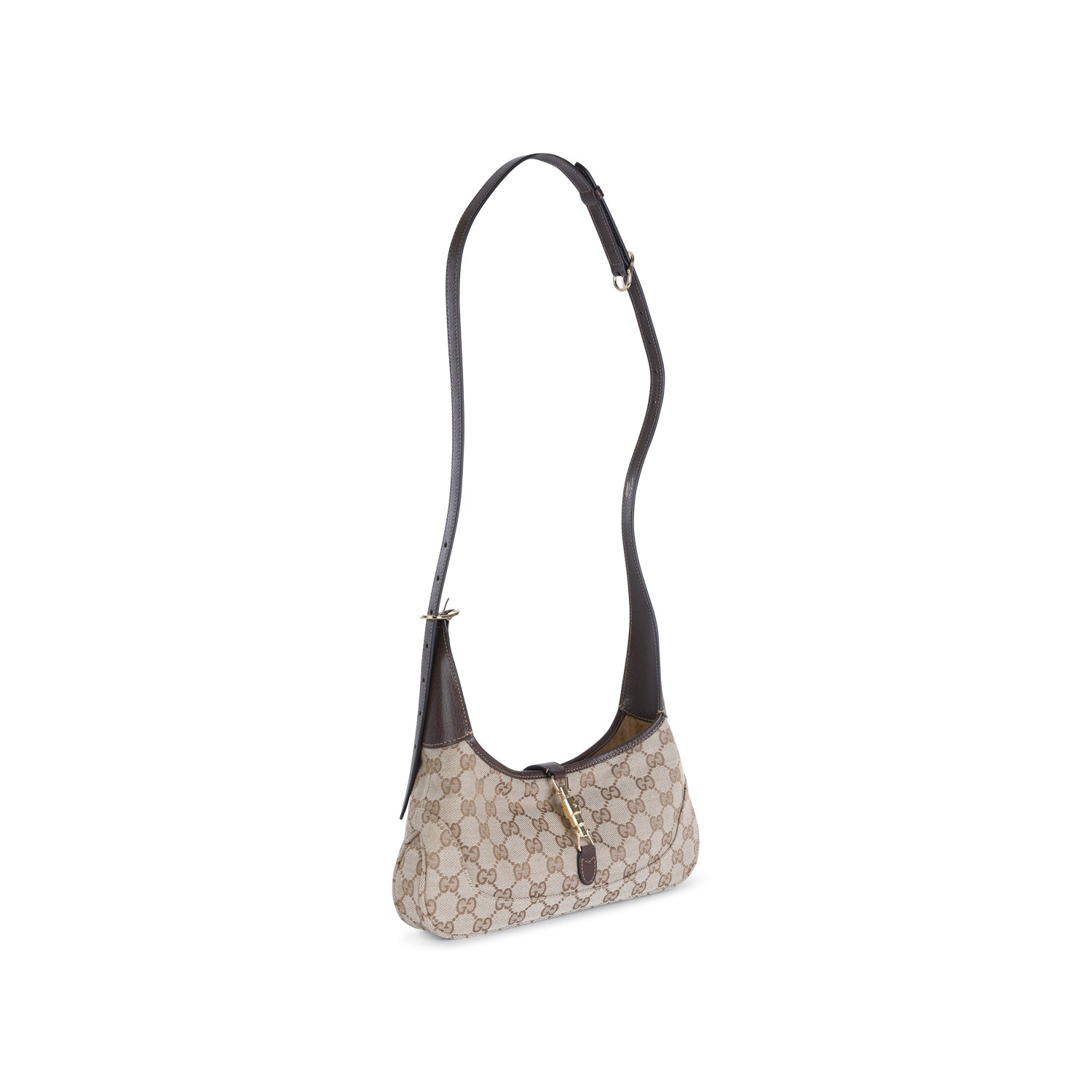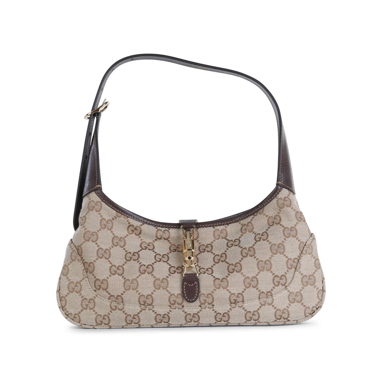 Sand GG Jackie Hobo small shoulder bag from Gucci featuring gold tone logo hardware, adjustable shoulder strap, all over iconic GG stamp and main compartment.