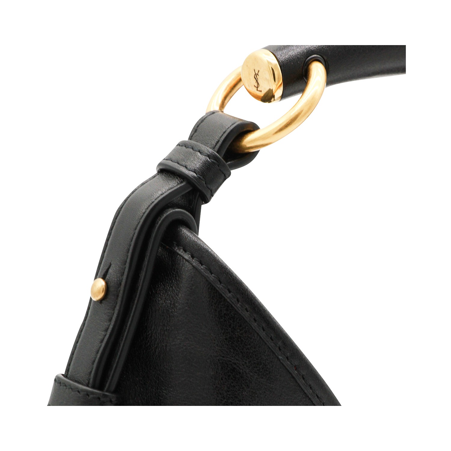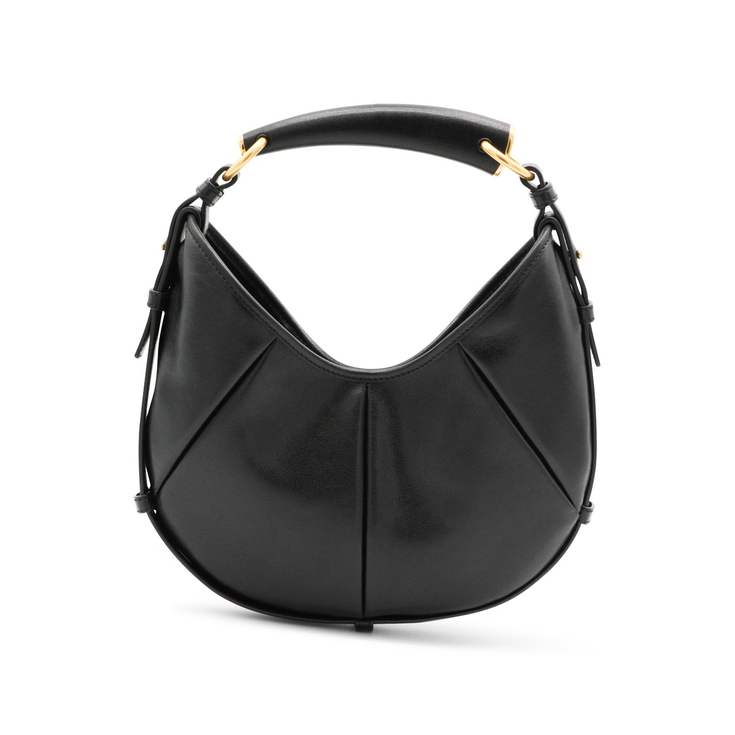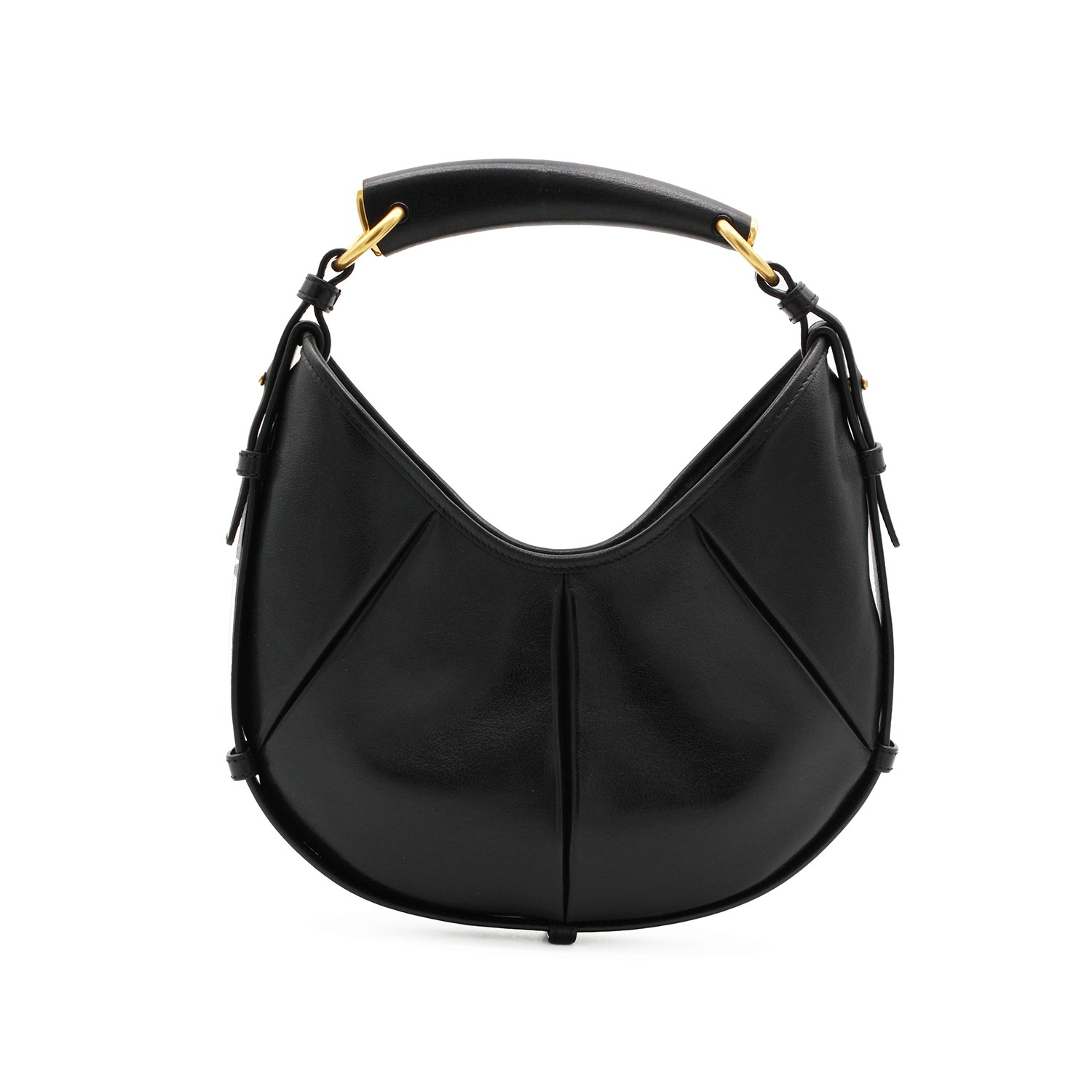 Black leather small Mombasa featuring top leather handle, gold tone hardware, magnetic closure and main compartment.