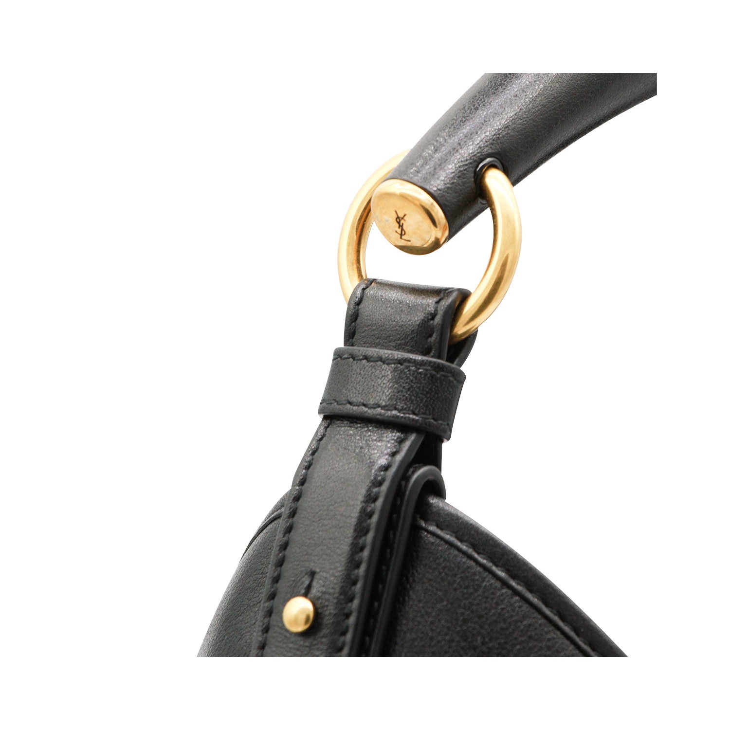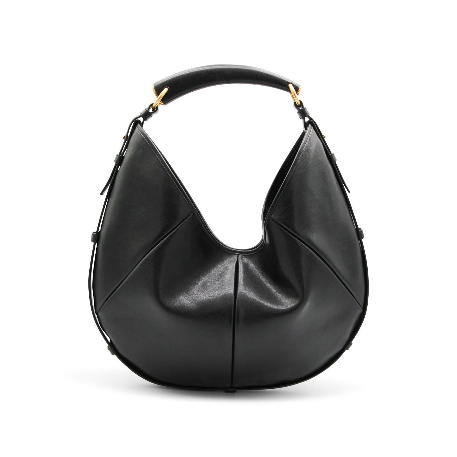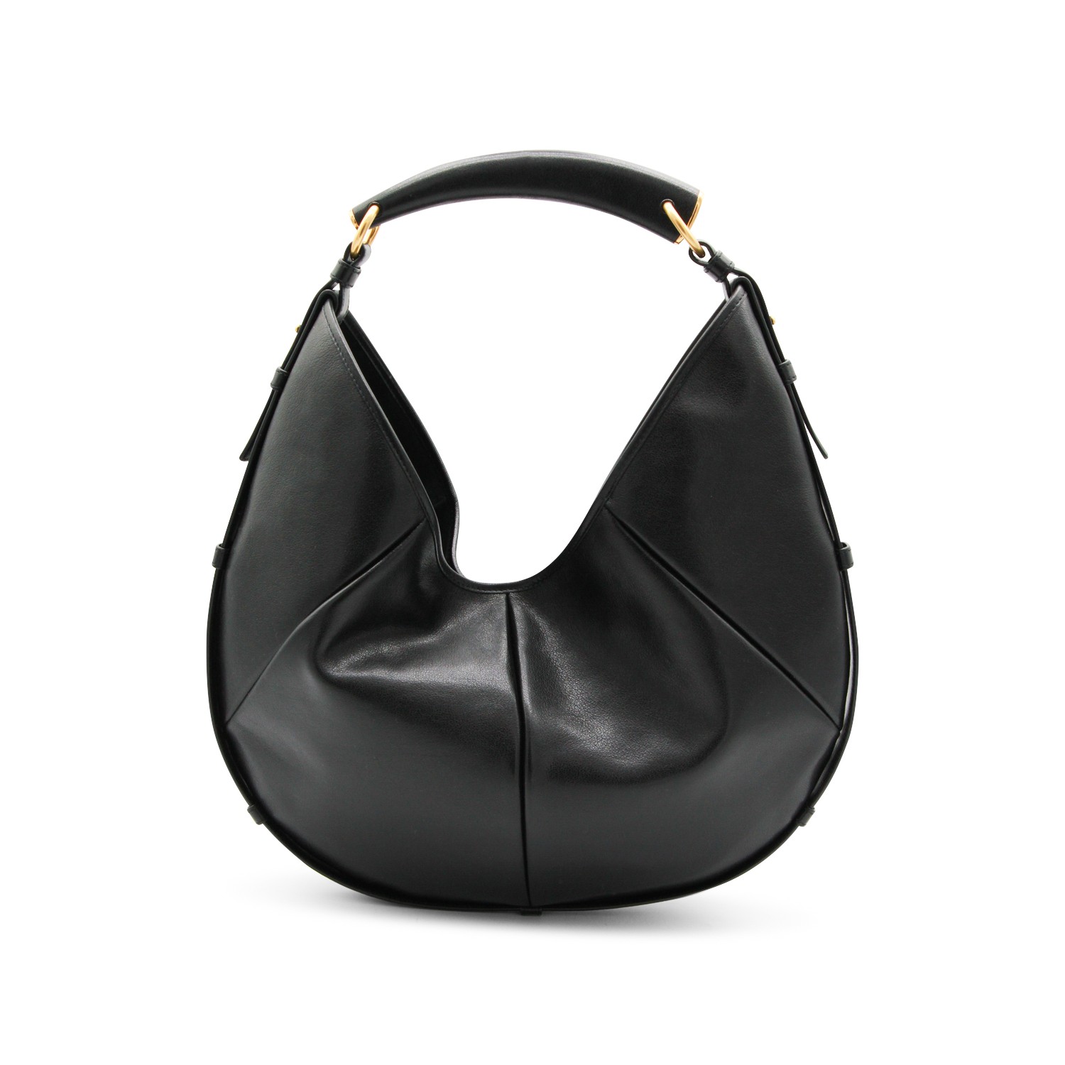 Black leather medium Mombasa shoulder bag from Saint Laurent featuring leather top handle, gold tone hardware, magnetic closure, main compartment and zip pocket.