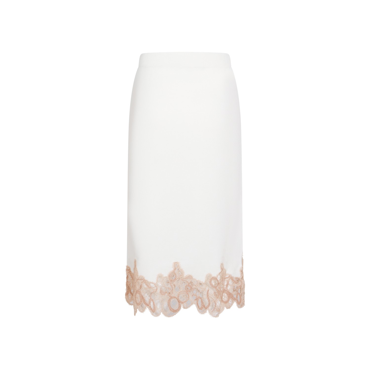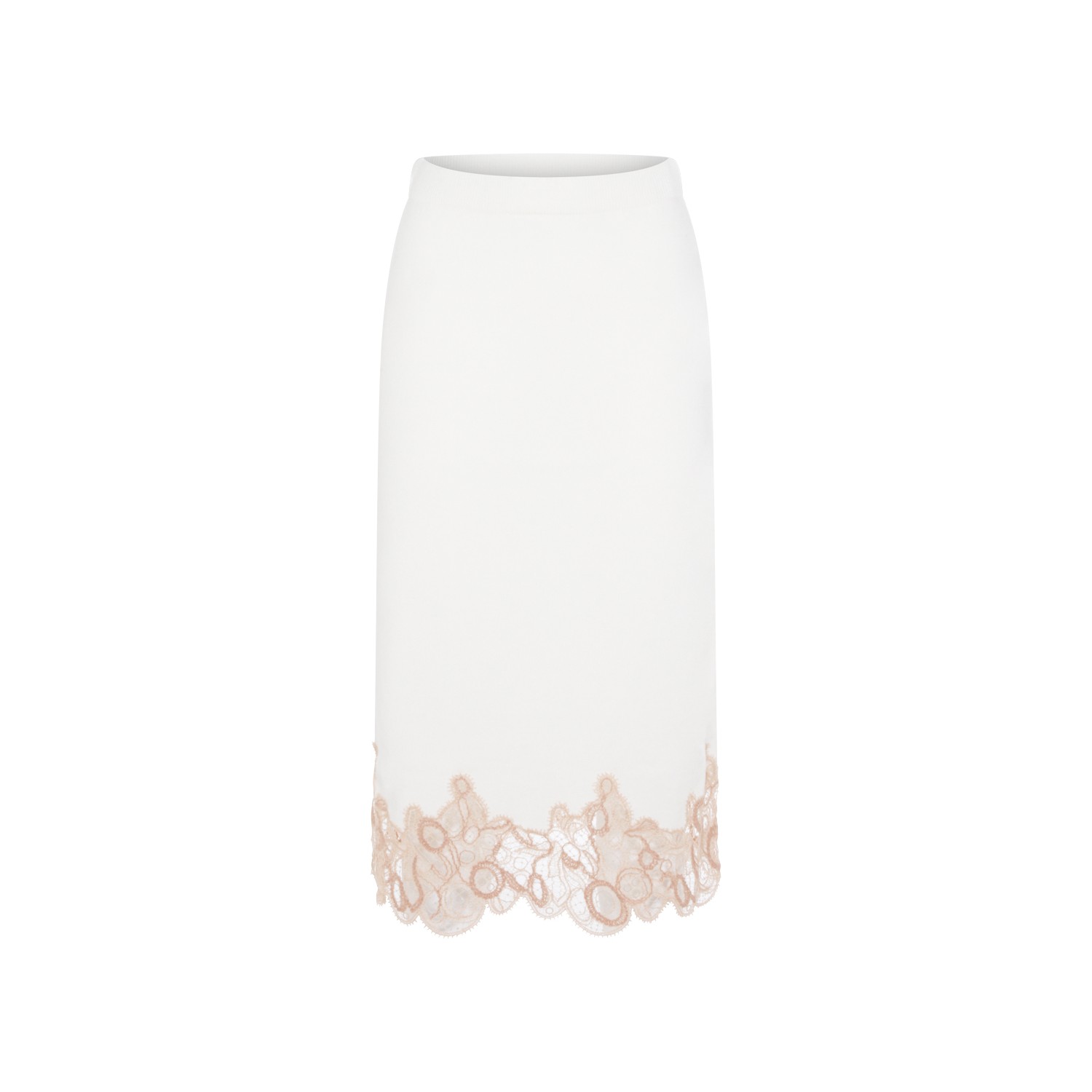 White wool skirt from Fabiana Filippi featuring elasticated waistband and lace details.
