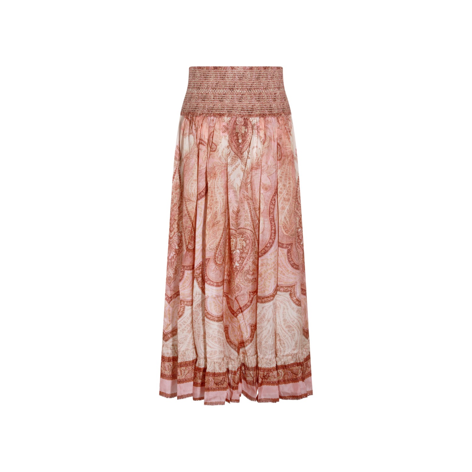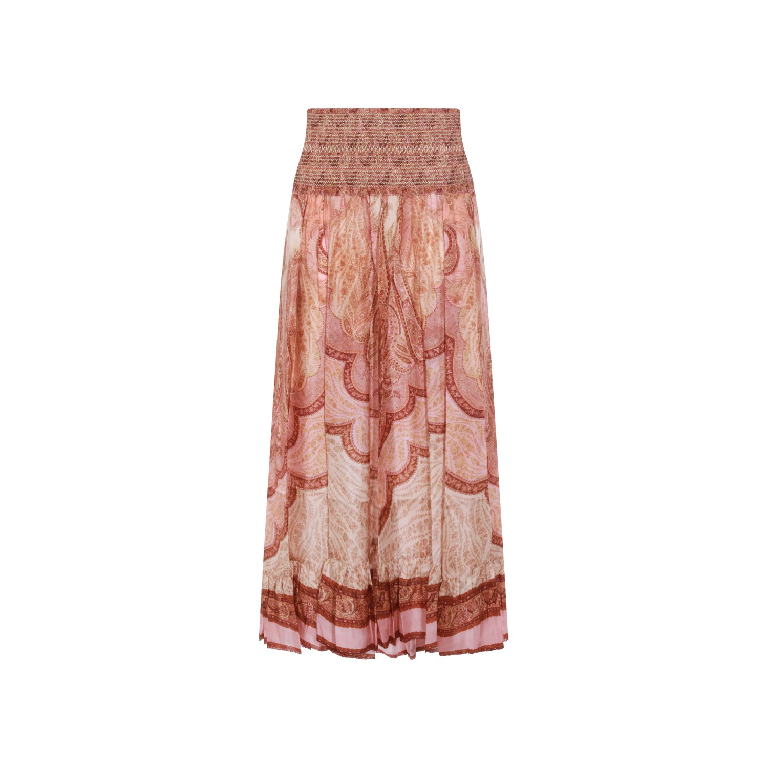 Burgundy silk skirt from Zimmermann featuring elastic waist and oversize vestibility.