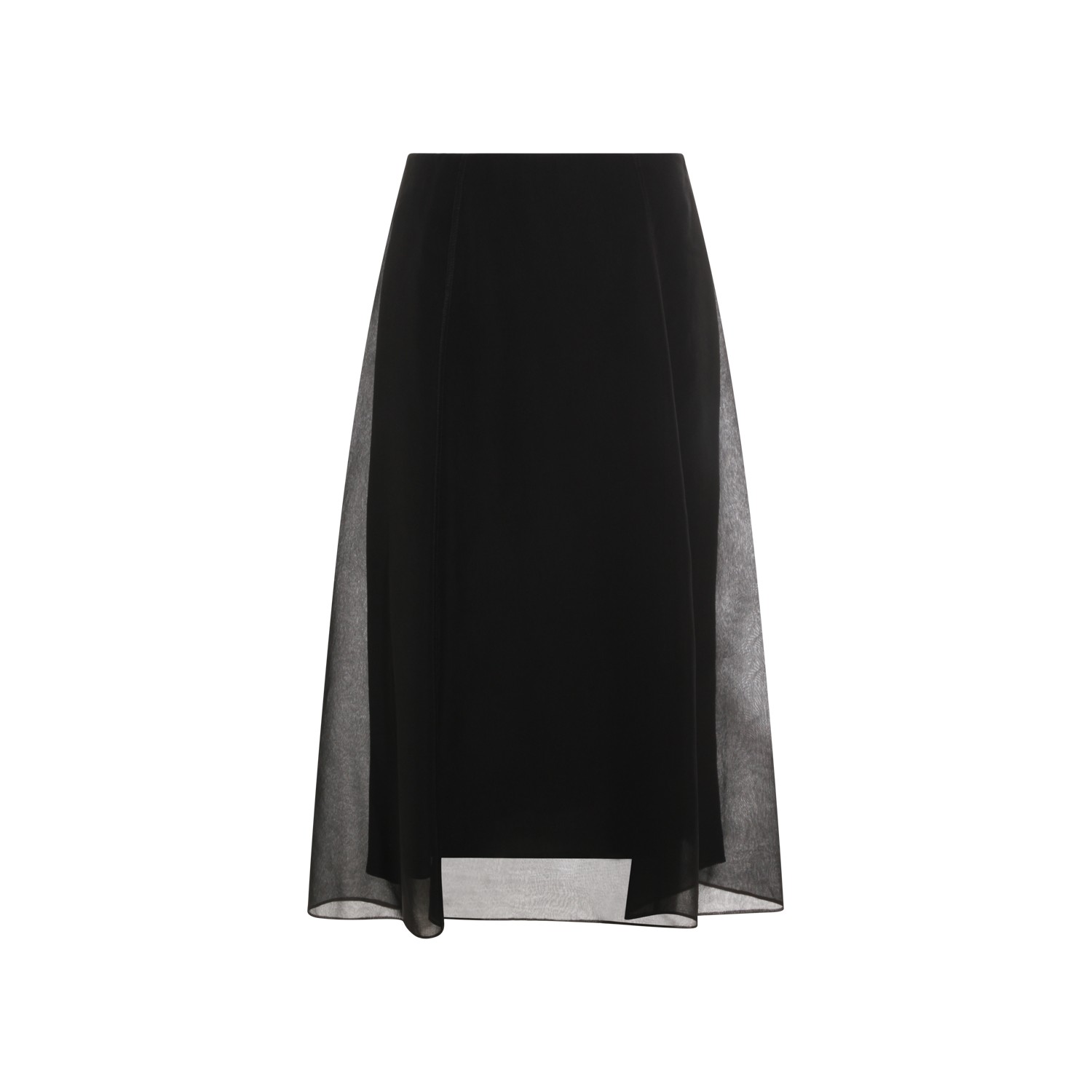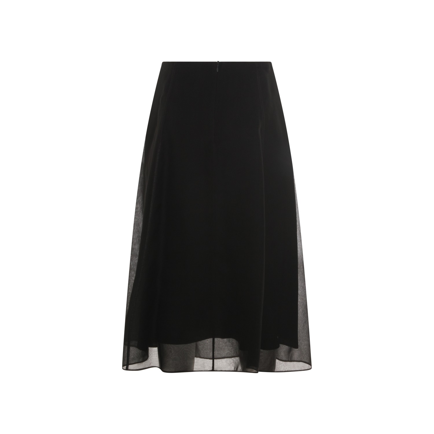 Black silk skirt from Brunello Cucinelli featuring high waist, all over length, loose vestibility and transparencies.
