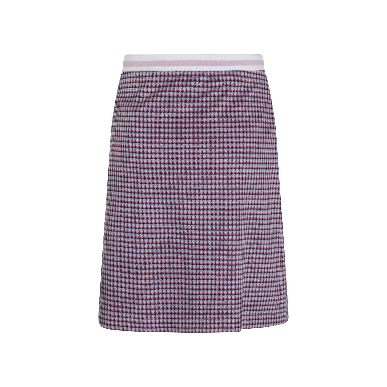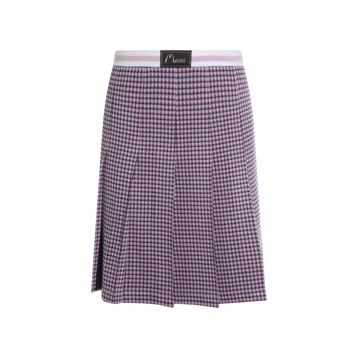 Violet skirt form Marni featuring elastic waistband with logo patch, Houndstooth pattern and pleated.