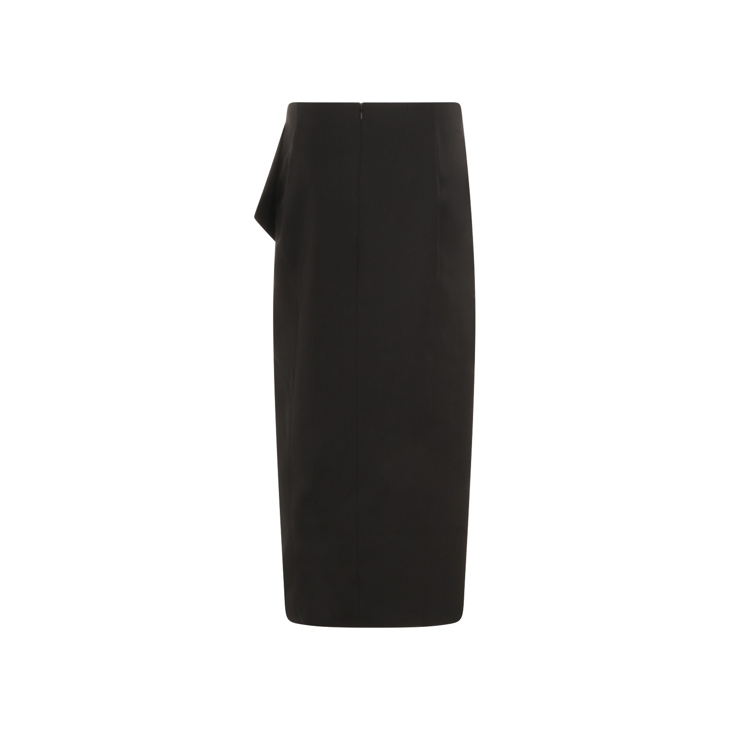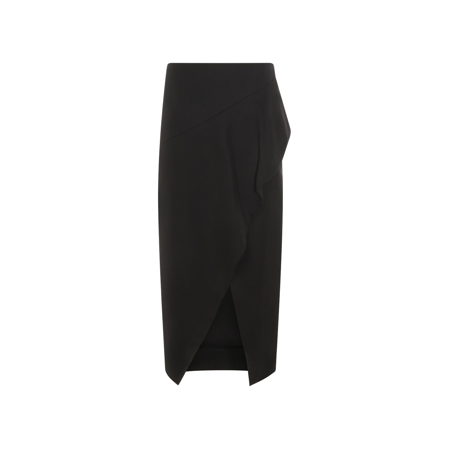 Black wool skirt from Khaite featuring high waist, all over length, lateral detail and open front.