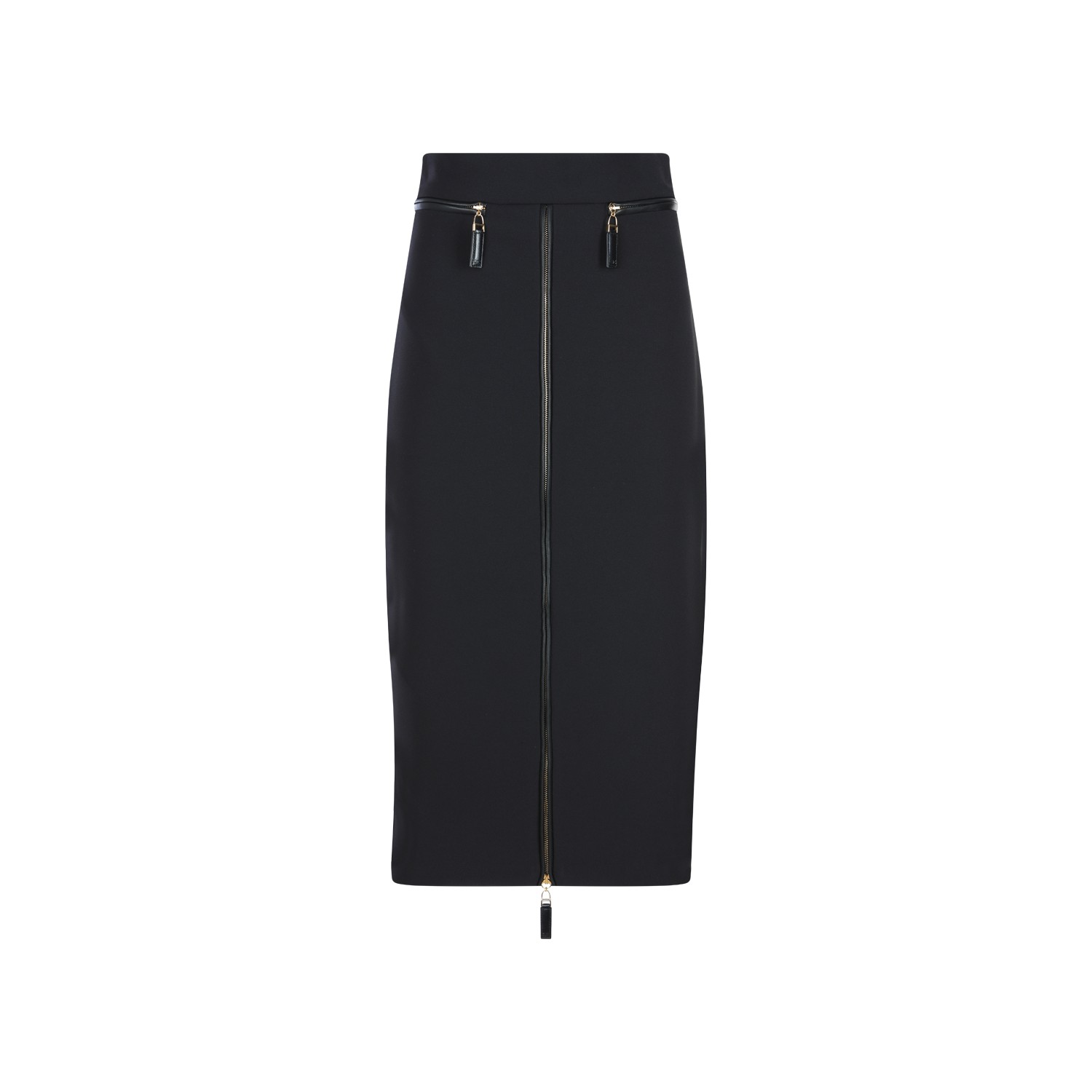 Black skirt from Elisabetta Franchi featuring zip details, rear zip fastening, midi lenght and tight vestibility.