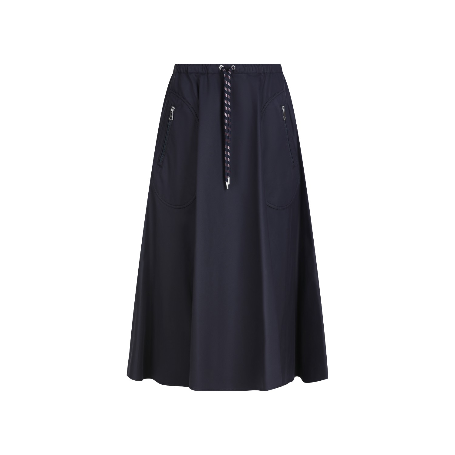 Navy blue cotton skirt from Moncler featuring lace fastening, pockets, all over length and loose vestibility.