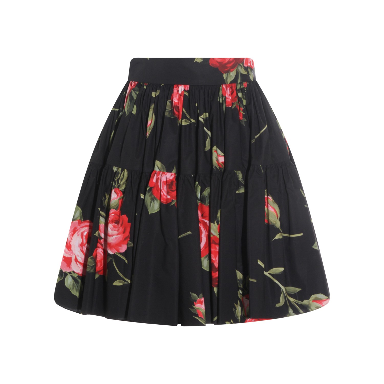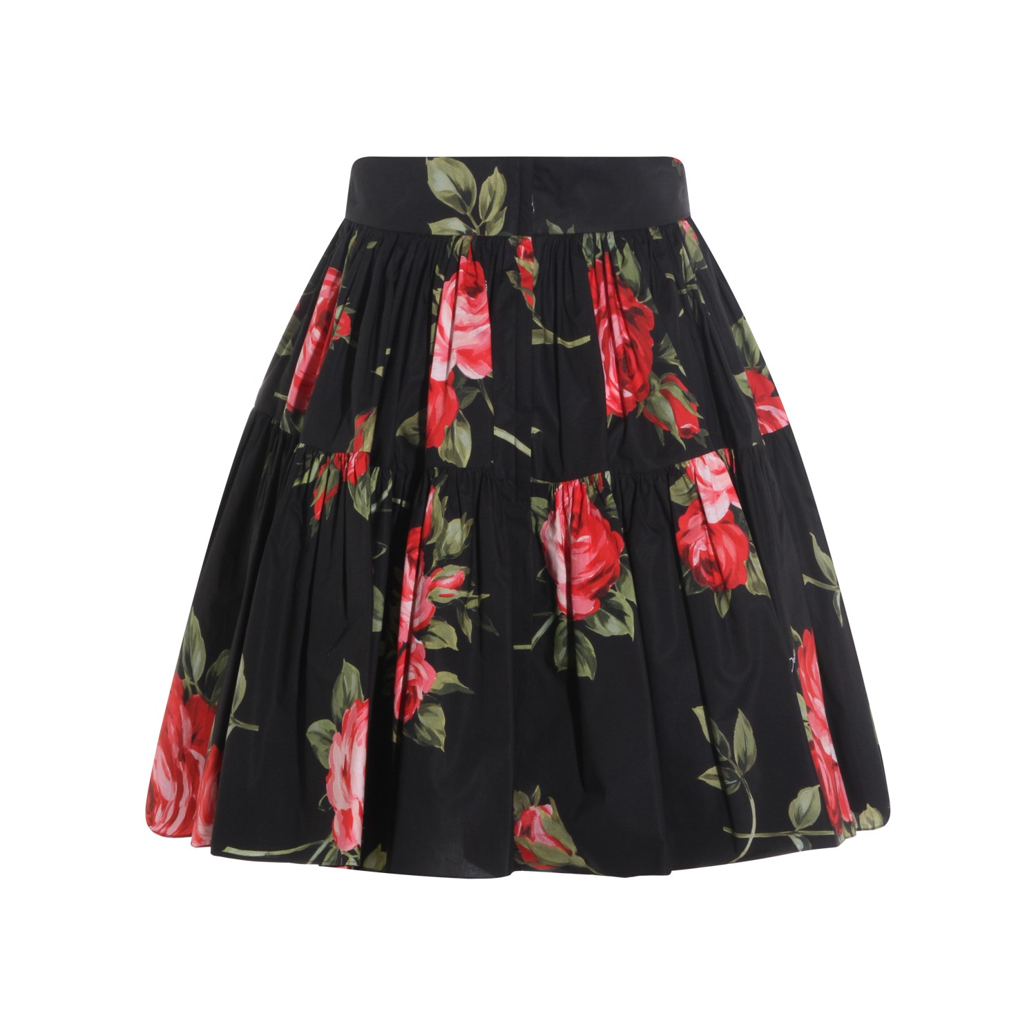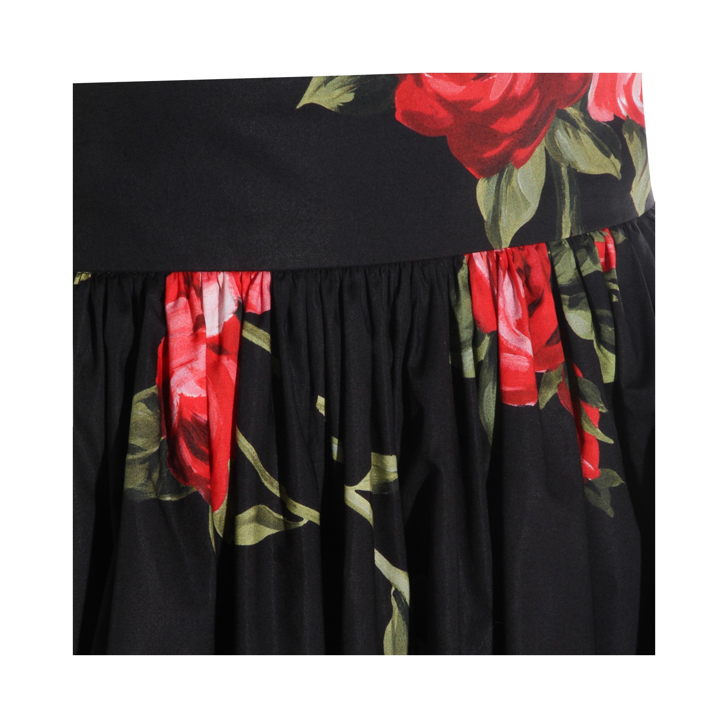 Black cotton skirt from Dolce & Gabbana featuring high waist, flowers pattern, pleated details and mini lenght.