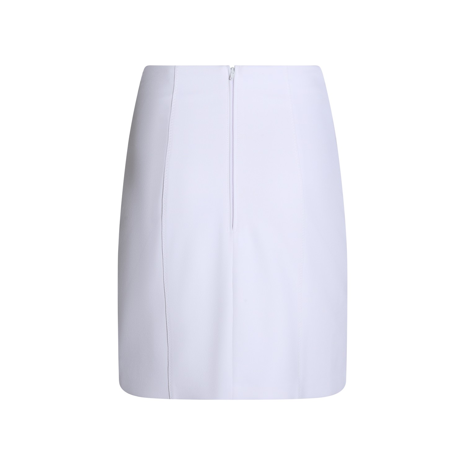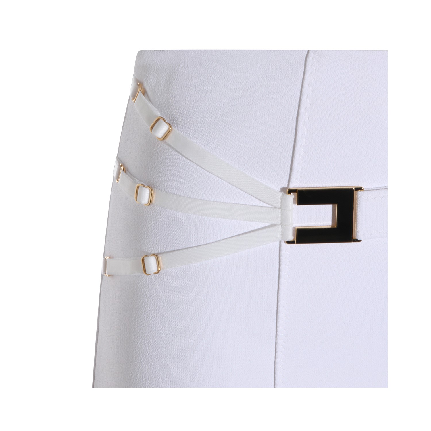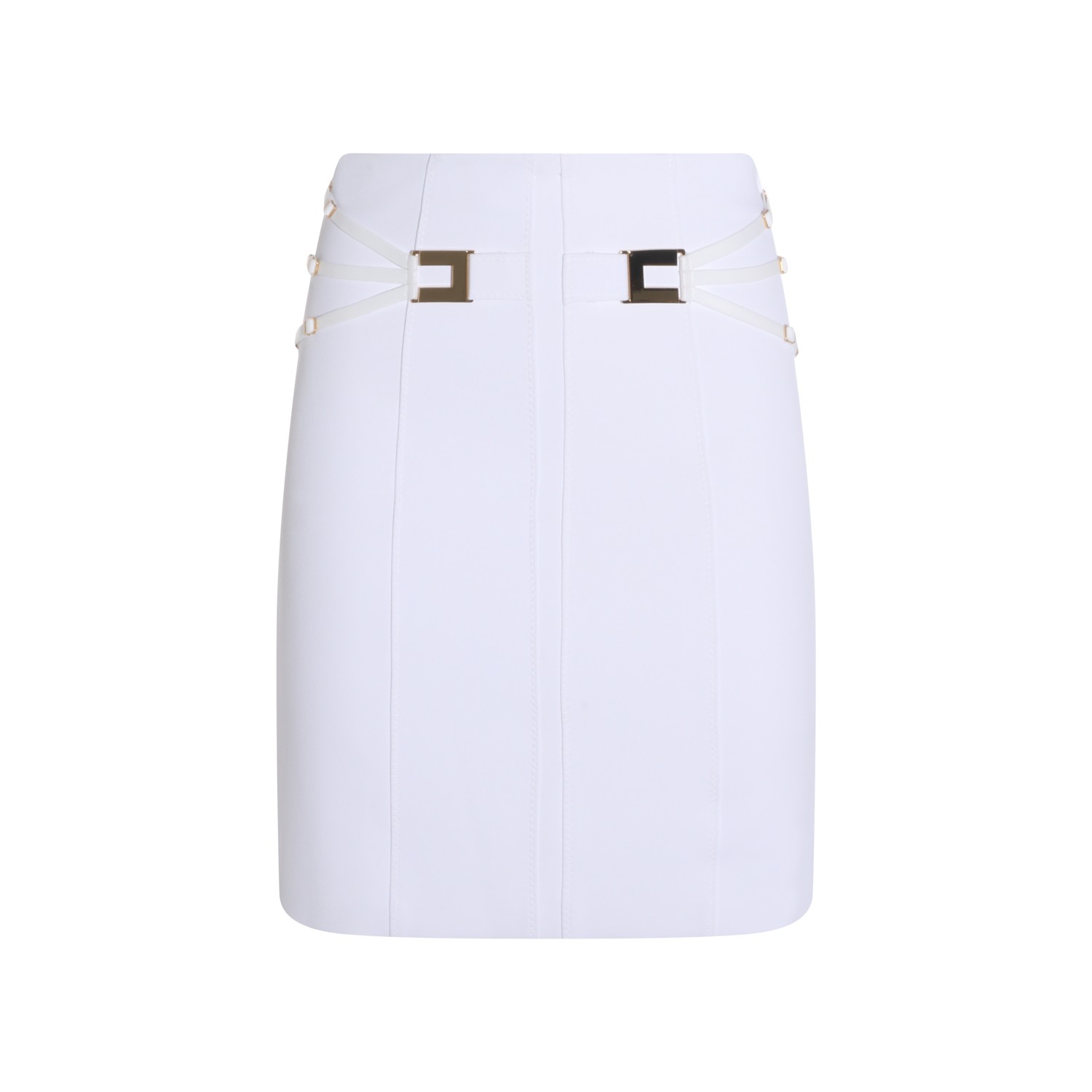 Ivory skirt from Elisabetta Franchi featuring high flat wait, back fastening, buckle details and tight fit.