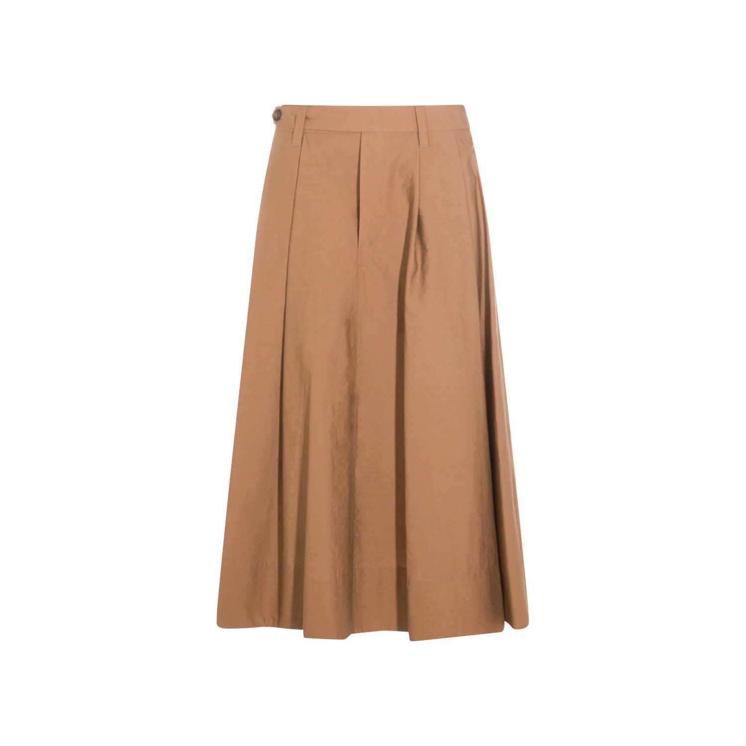 Brown cotton skirt from Brunello Cucinelli featuring high waist, belt loops, side fastening and pleated.