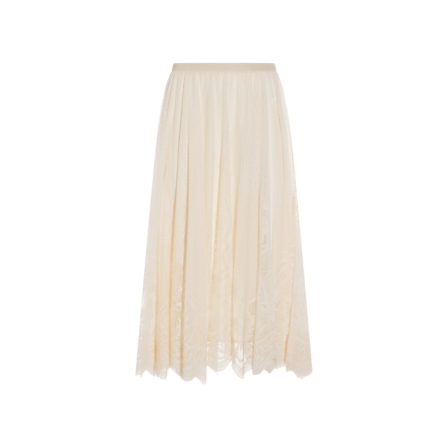 Light beige cotton skirt from Fabiana Filippi featuring elasticated waistband, lace details, pleated and midi lenght.