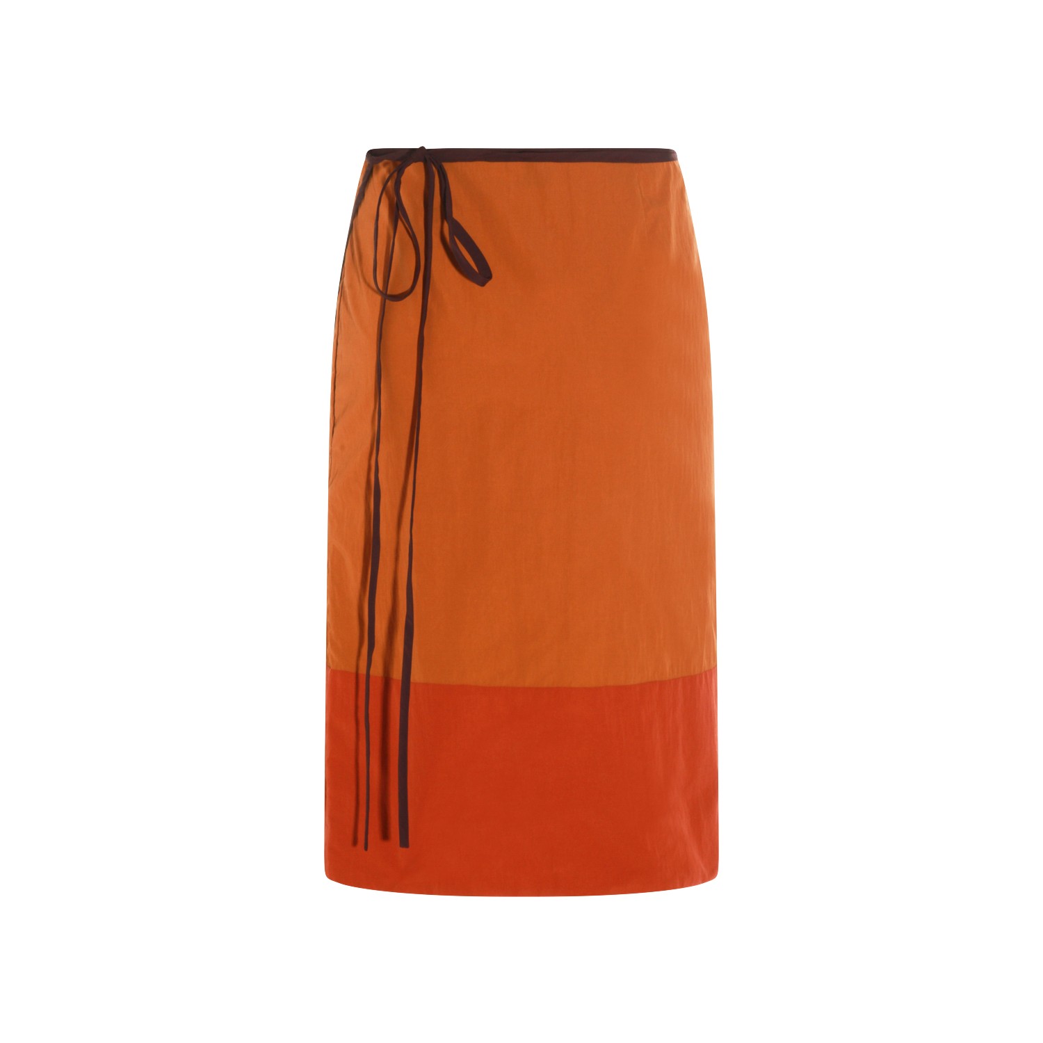 Orange skirt from Saint Laurent featuring midi length and color block.