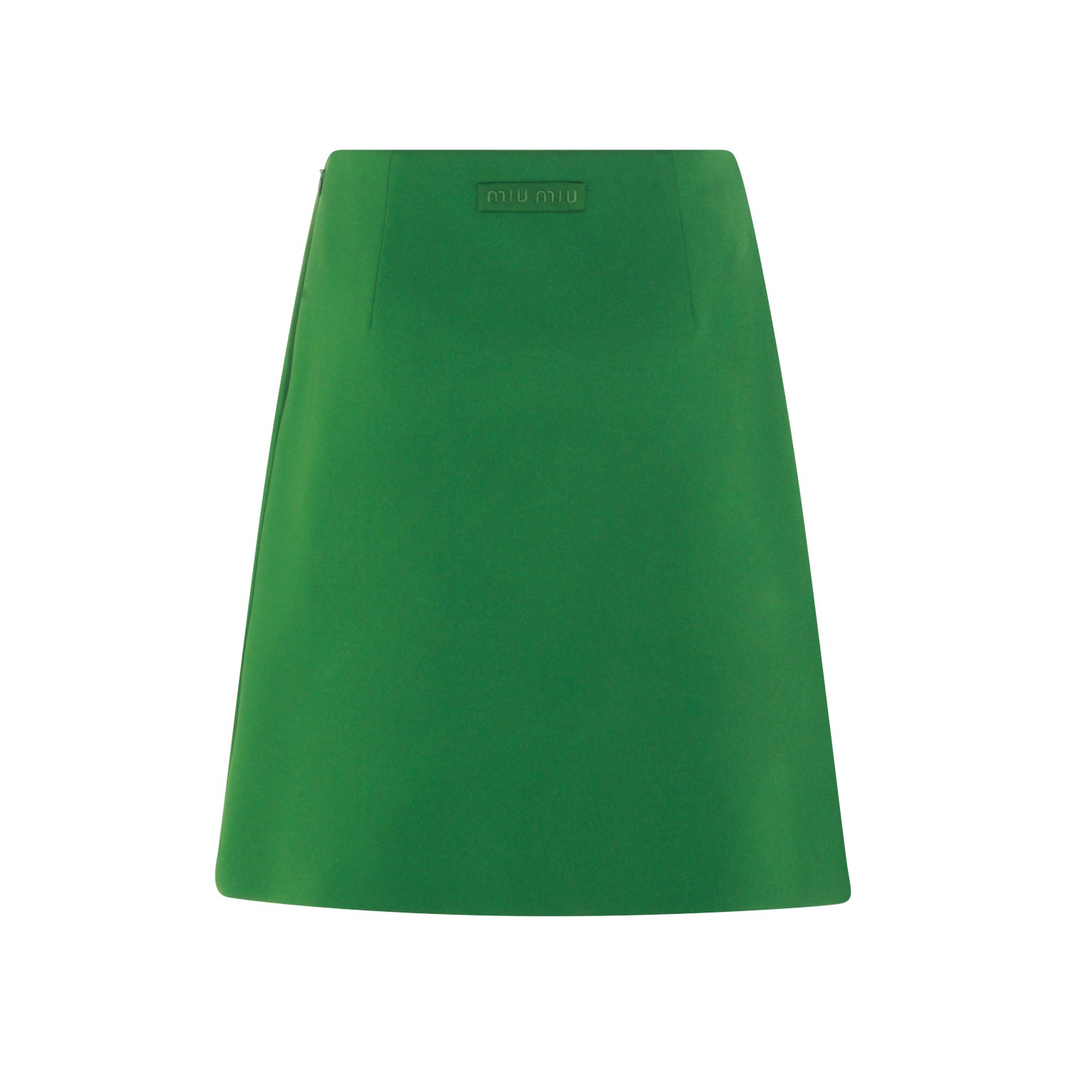 Green skirt from Miu Miu featuring lined head, side fastening, embroidered logo, straight fit and mini lenght.