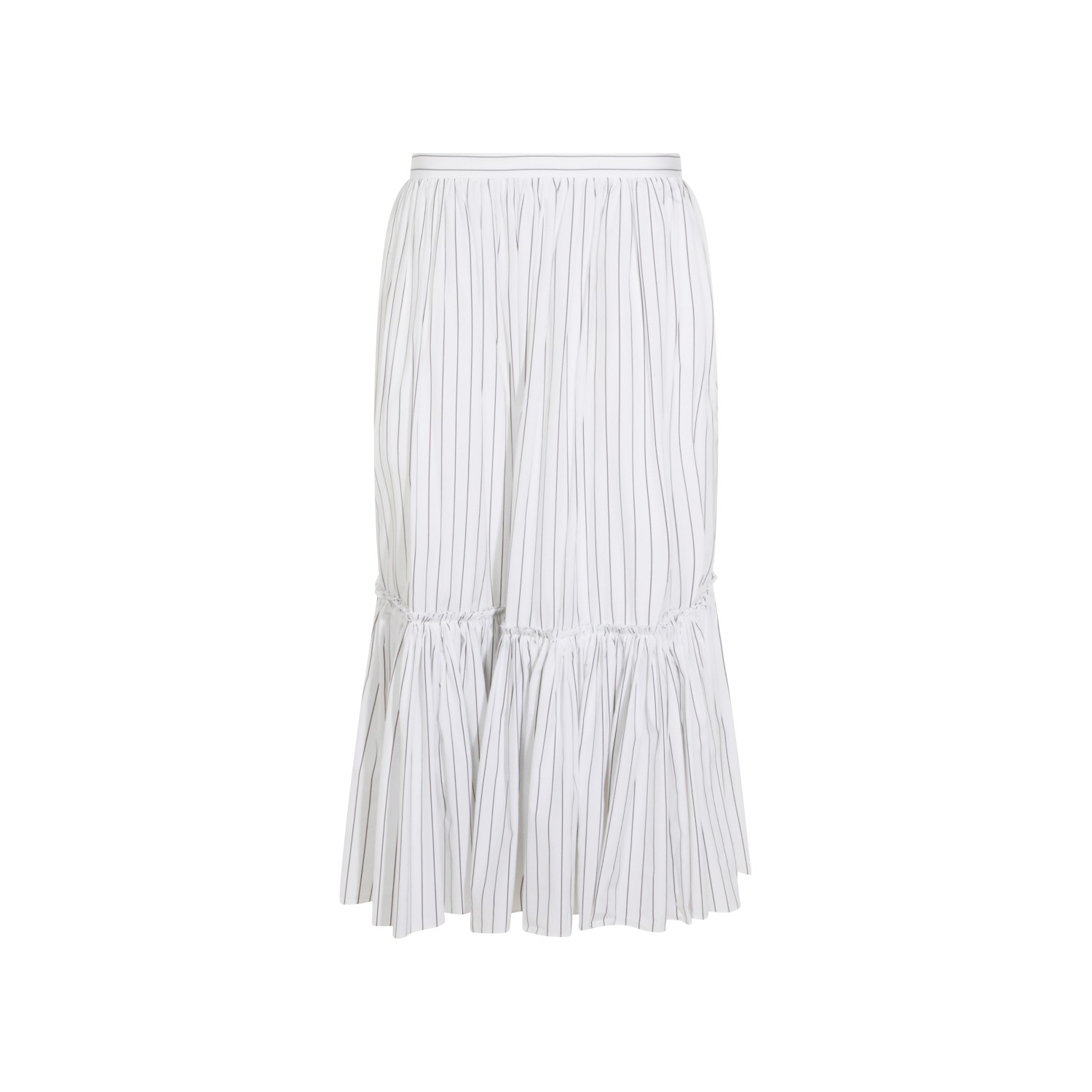 White cotton skirt from Jil Sander featuring elasticated flat waist, striped motif and regular fit.