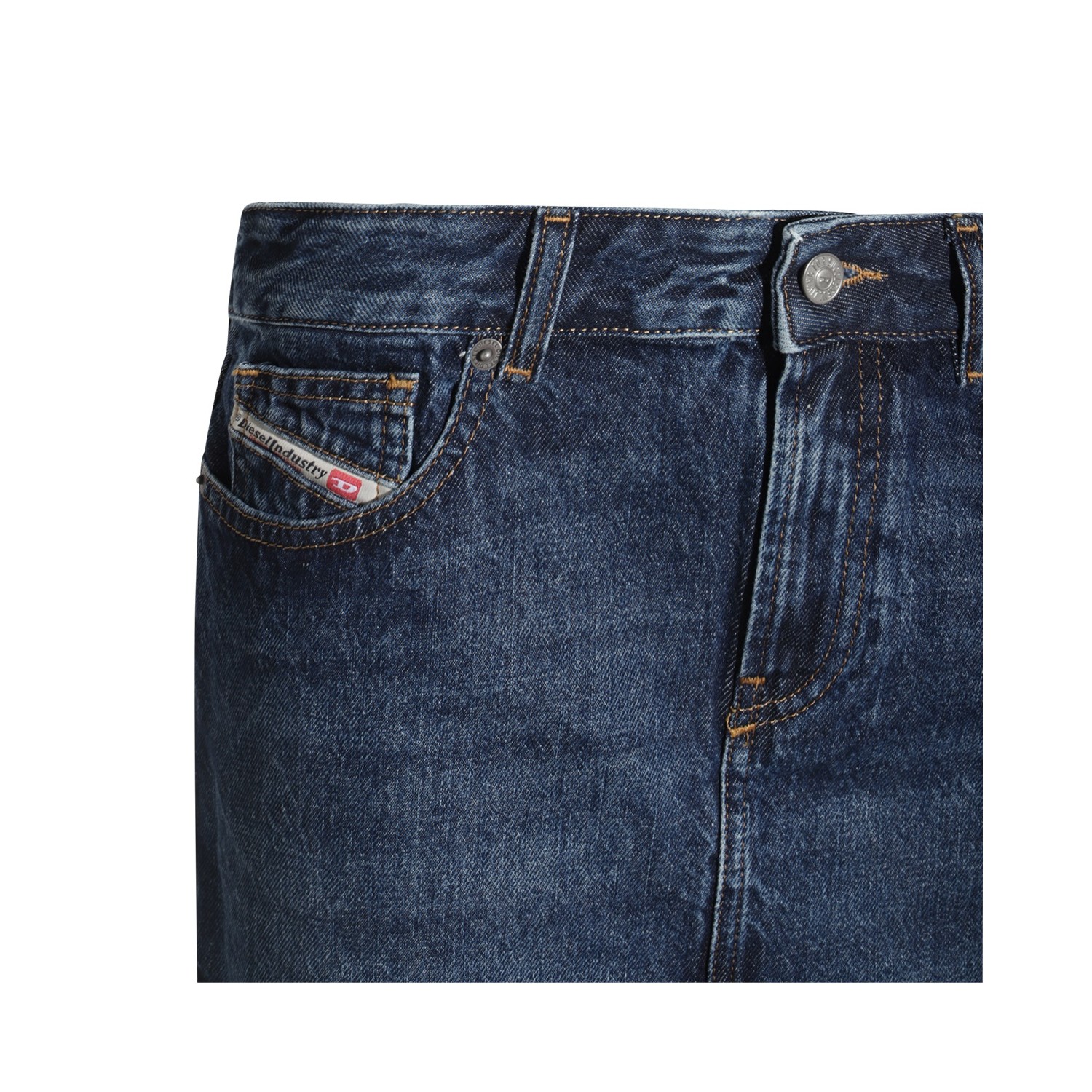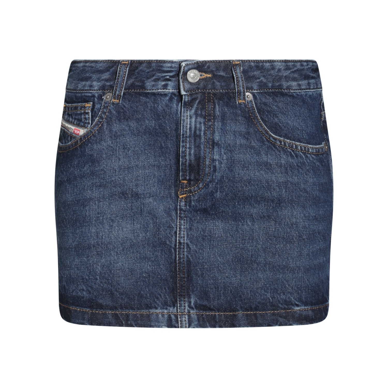 Blue cotton mini skirt from Diesel featuring frontal fastening, belt loops, pockets and mini length.