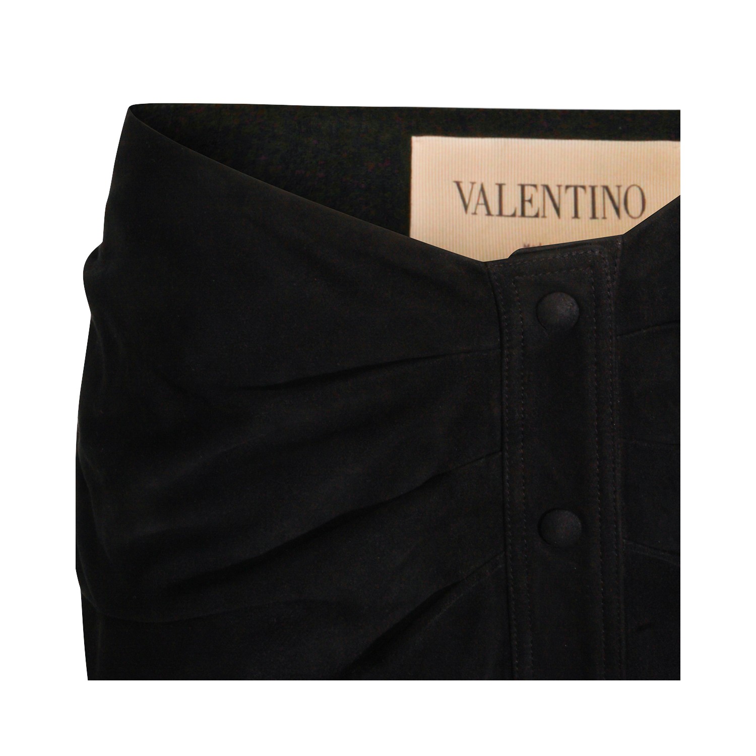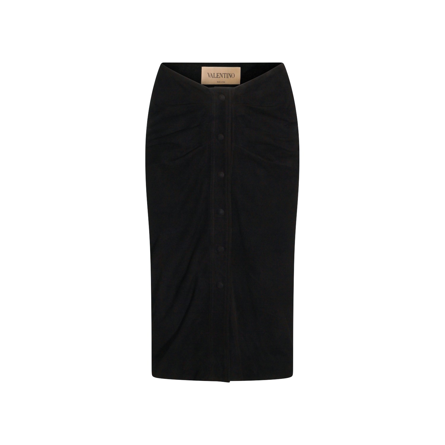 Black silk skirt from Valentino featuring high waist, pleats, button details, slit and slim fit.
