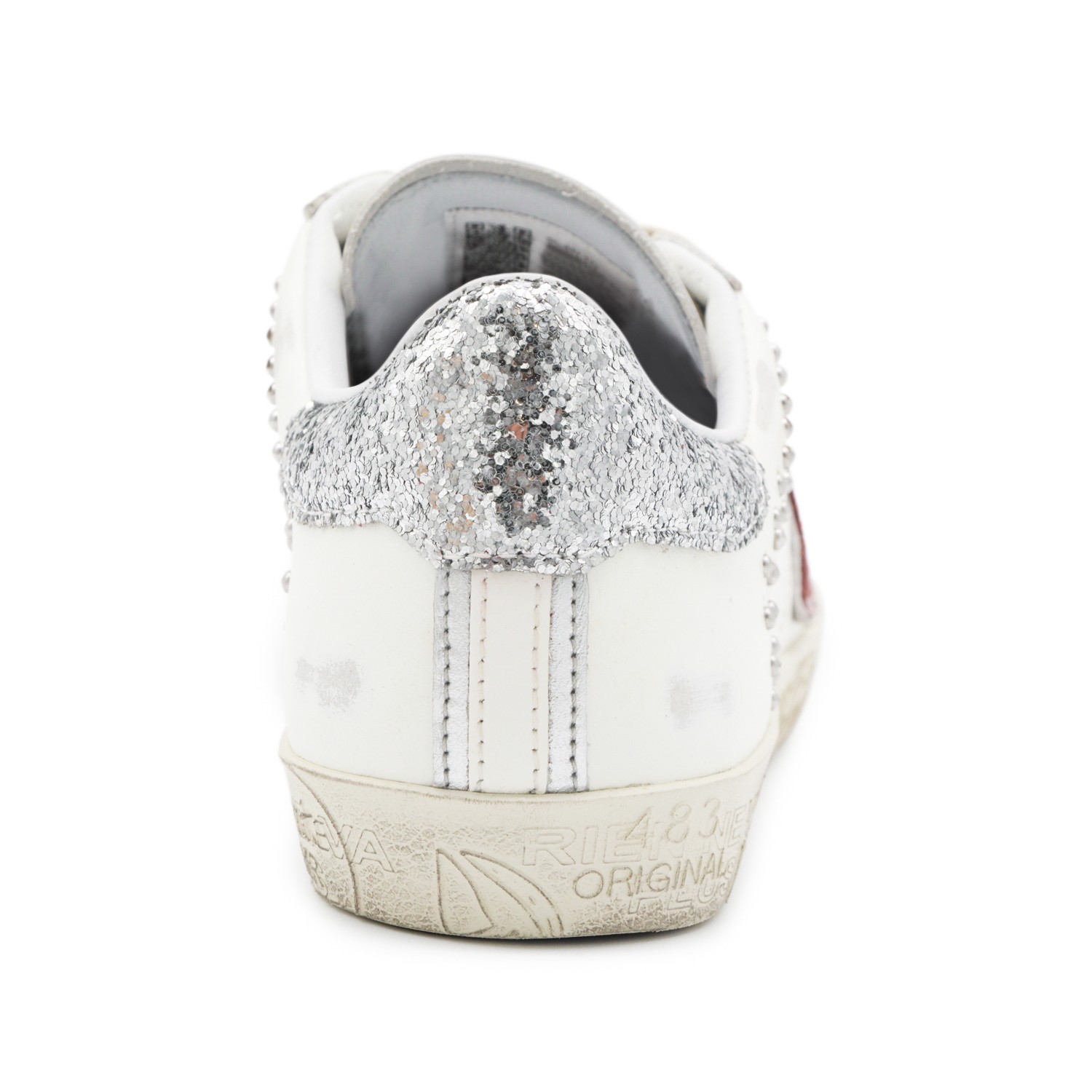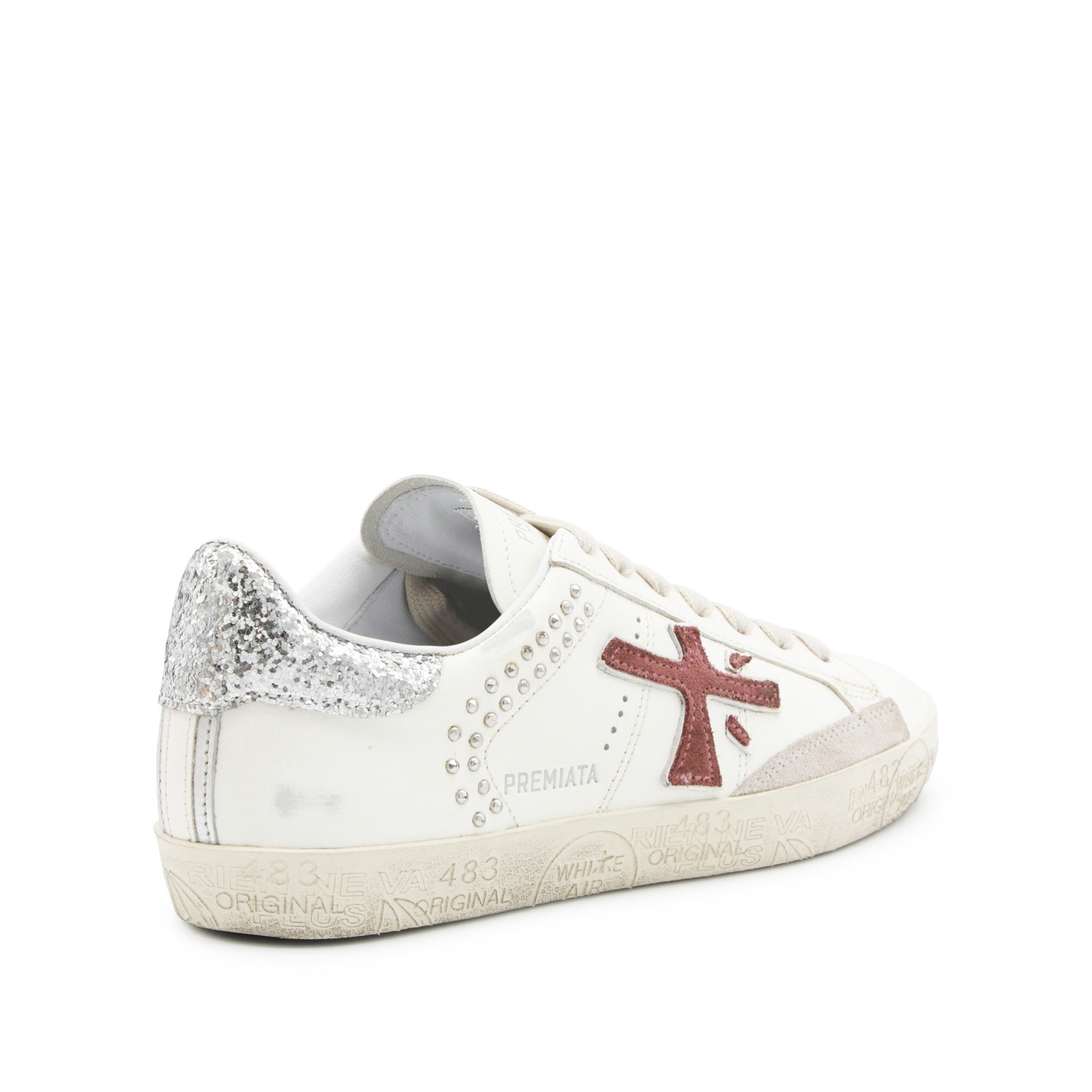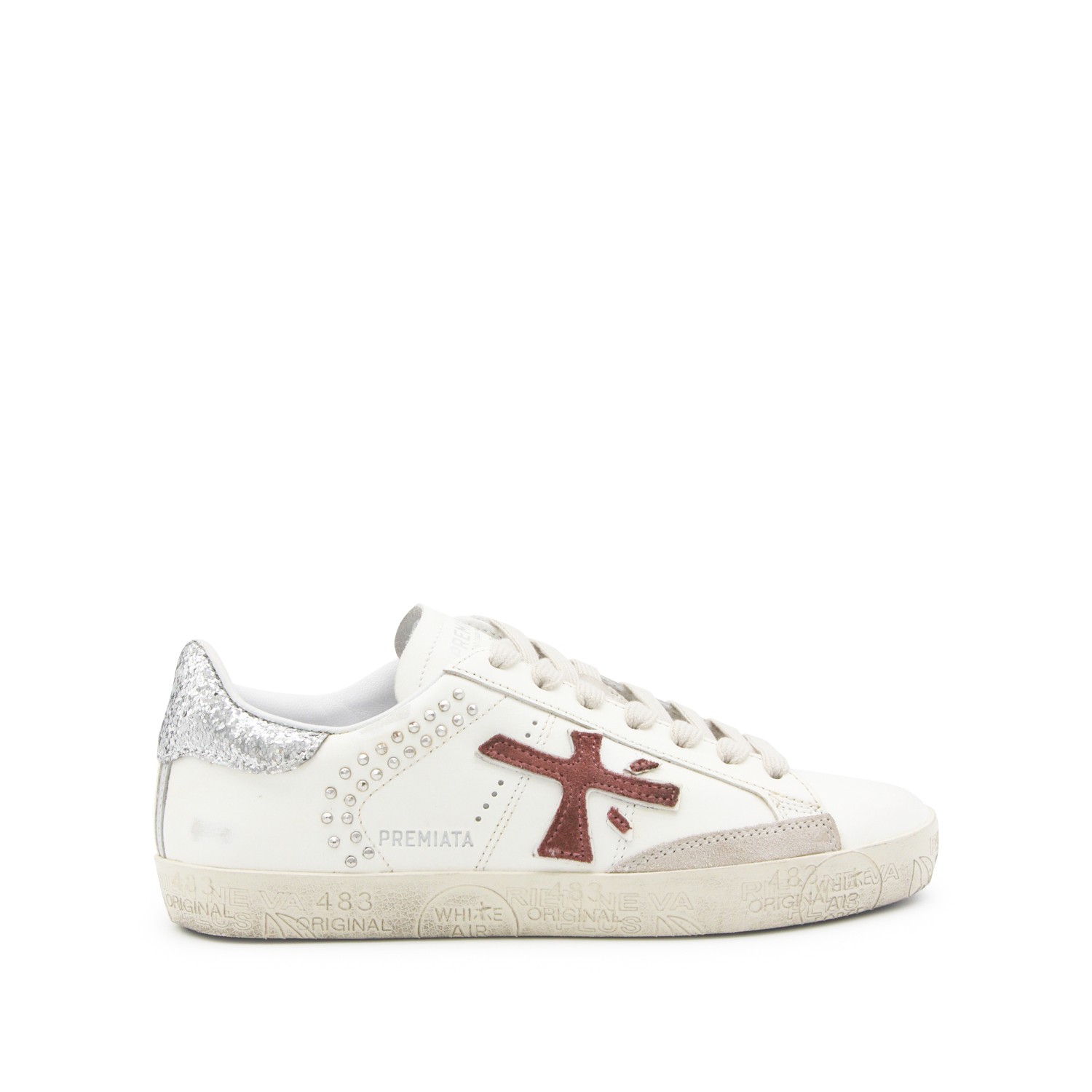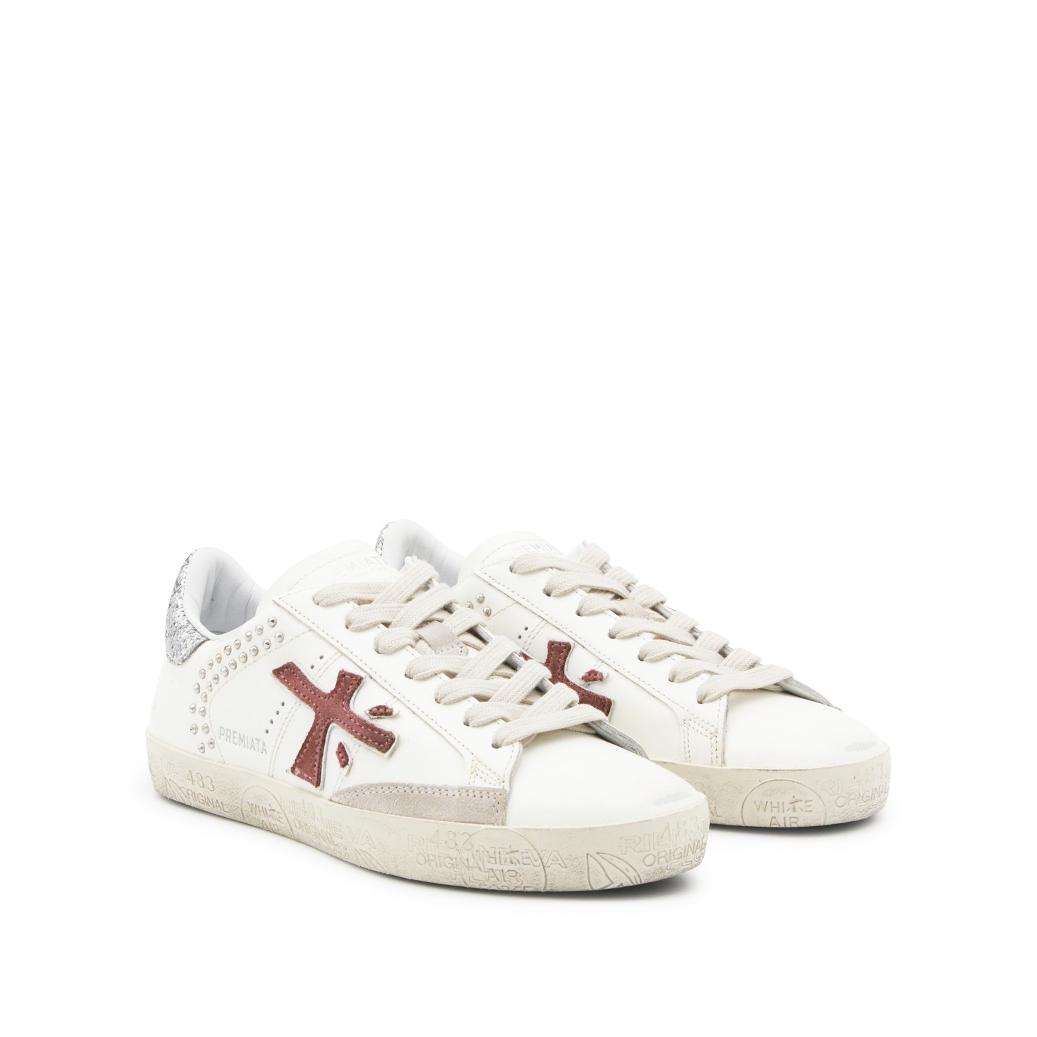 White Stevend sneakers from Premiata featuring round toe, laces fastening, leather sole and logo details.