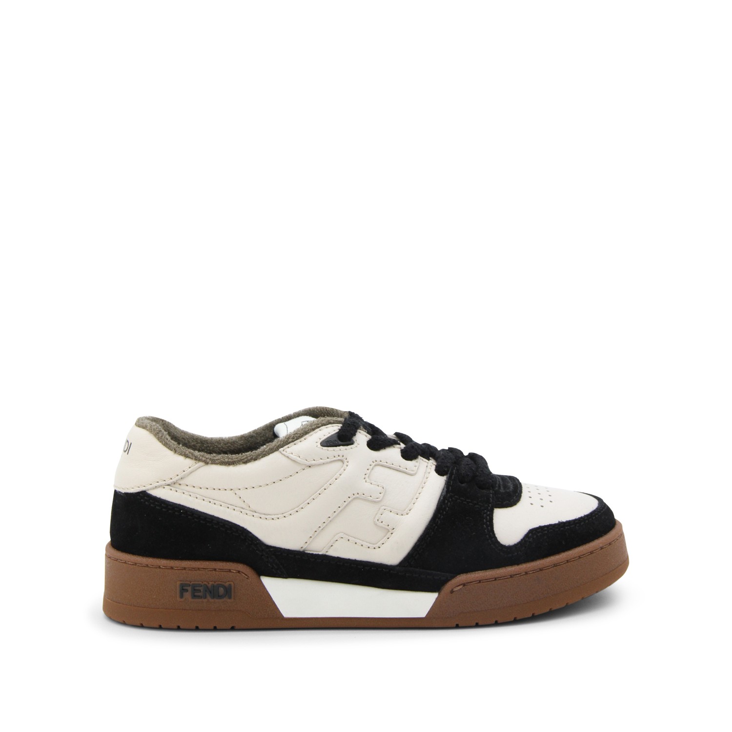 Black and milk sneakers from Fendi featuring round toe, lace up fastening, lateral logo, contrasting detail and rubber sole.