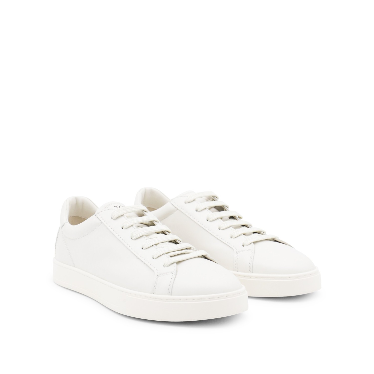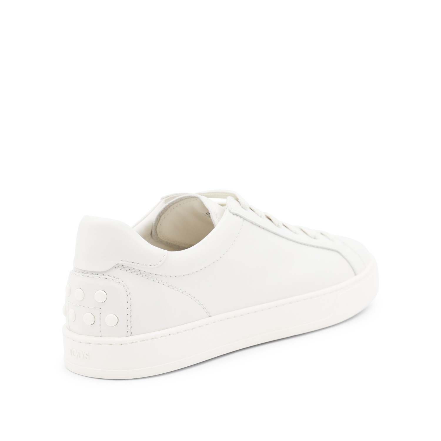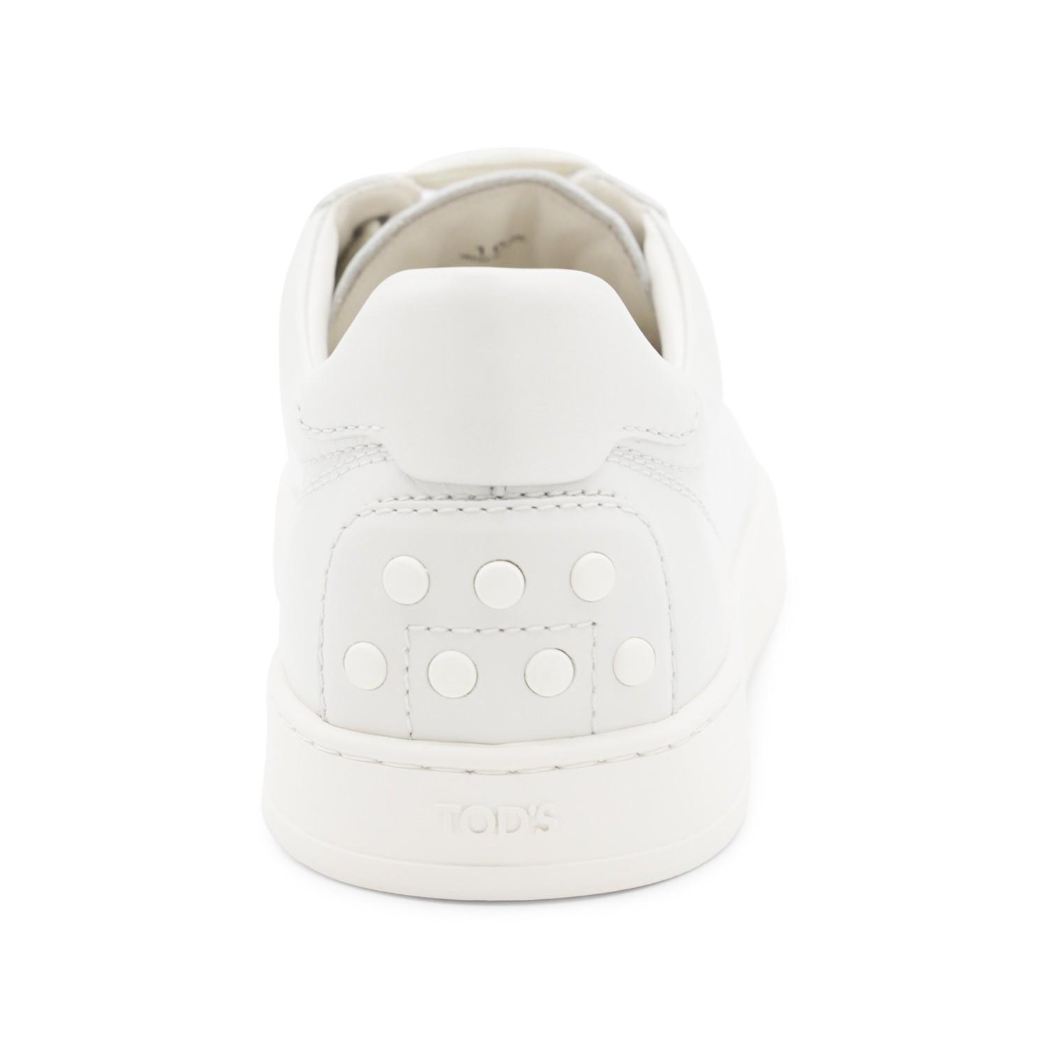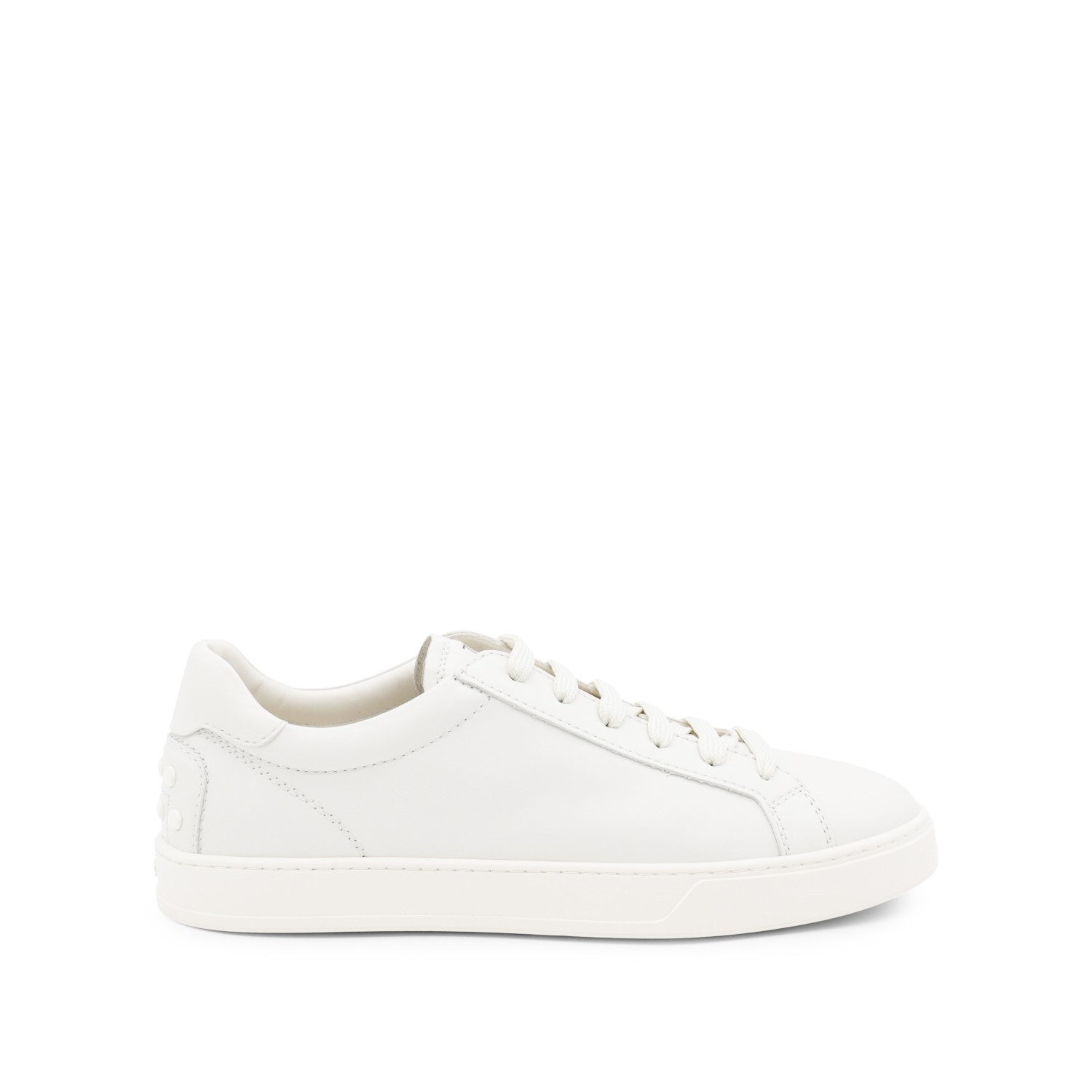 White leather sneakers from Tod's featuring round toe, lace up fastening and rubber sole.