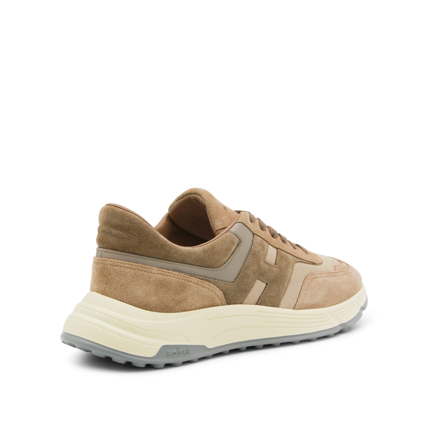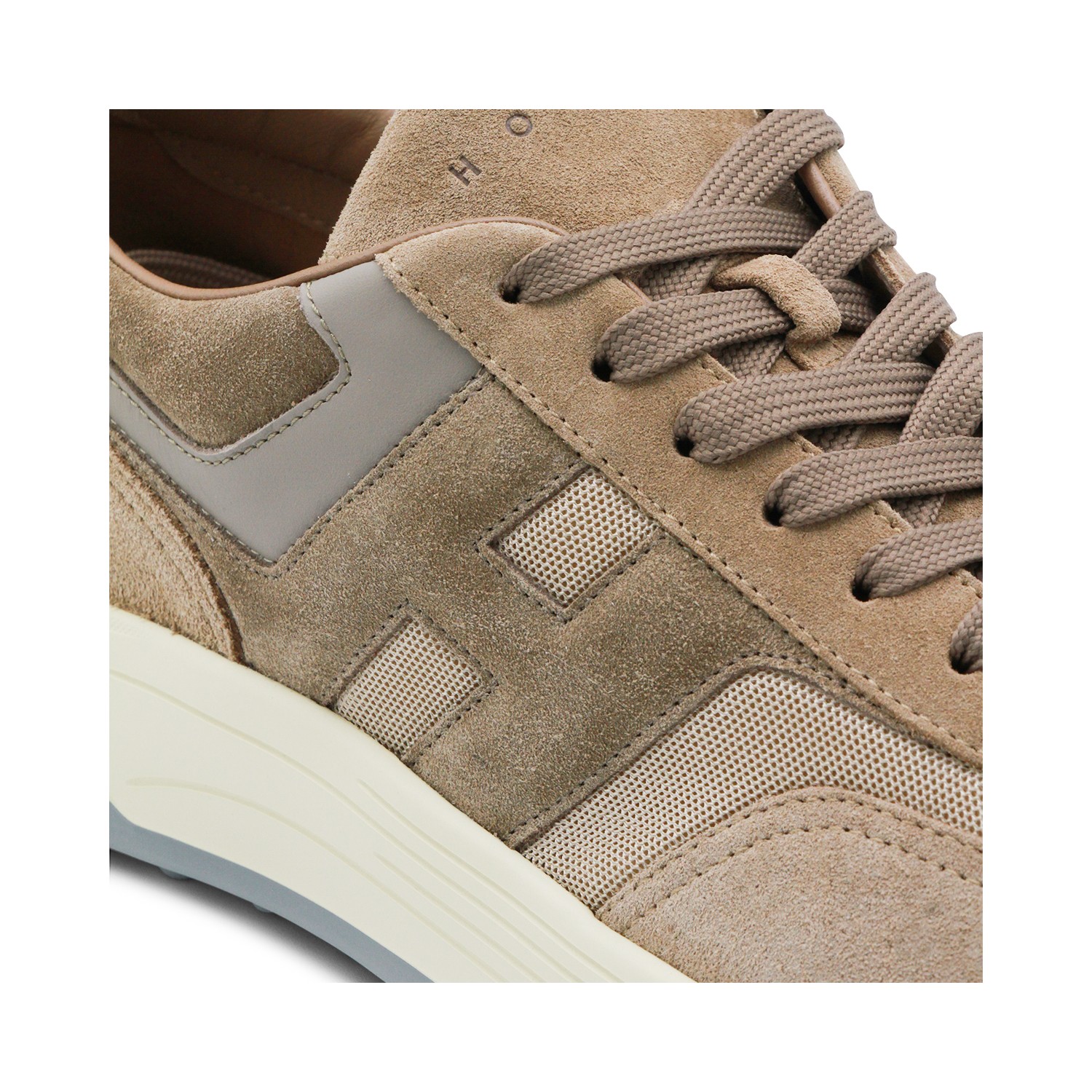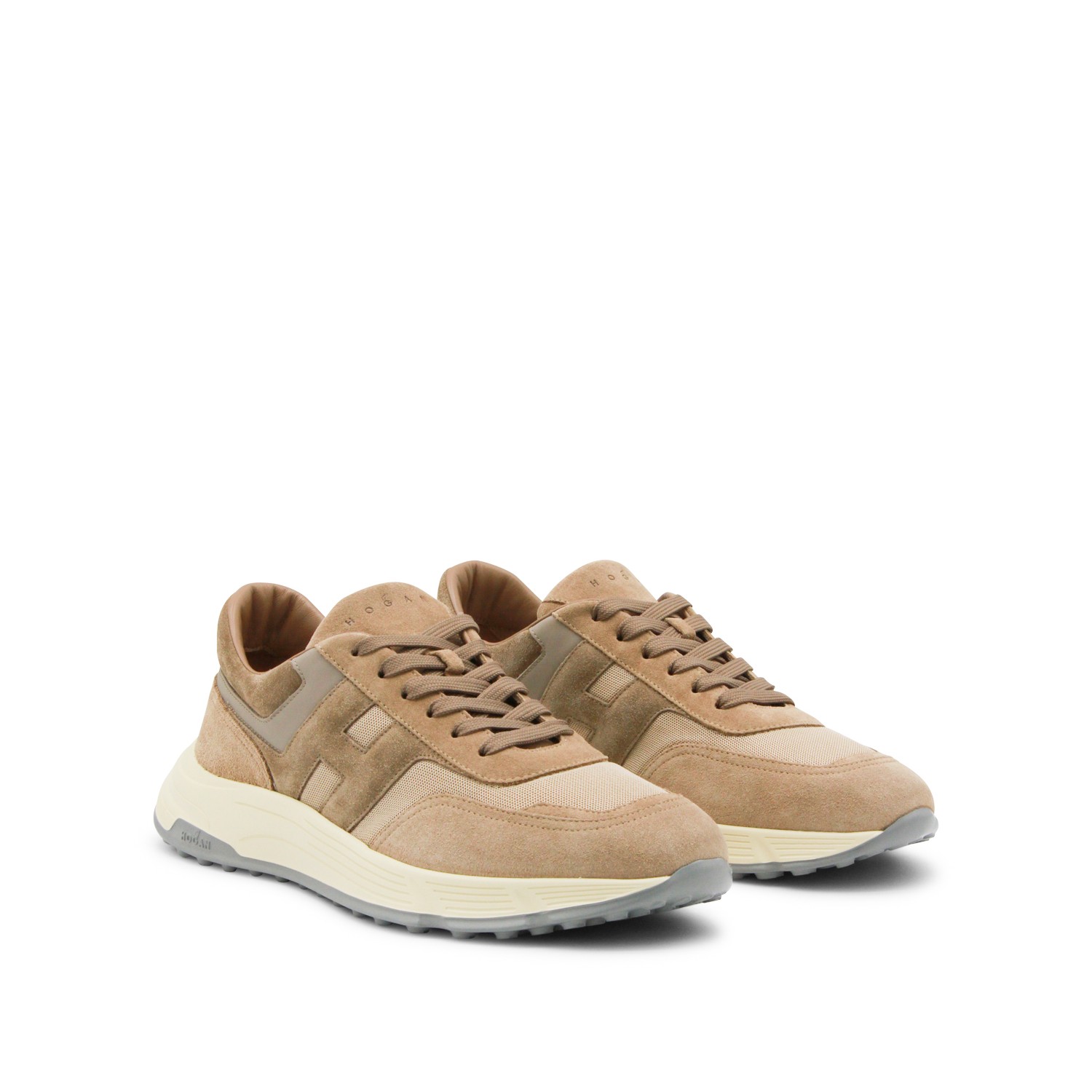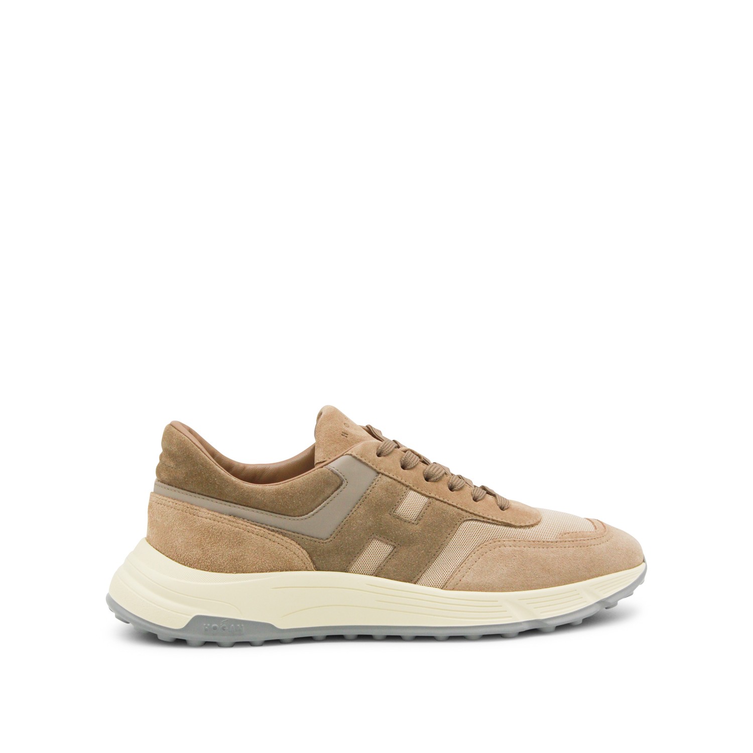 Beige leather sneakers from Hogan featuring round toe, lace-up fastening, lateral contrasting logo and rubber sole.