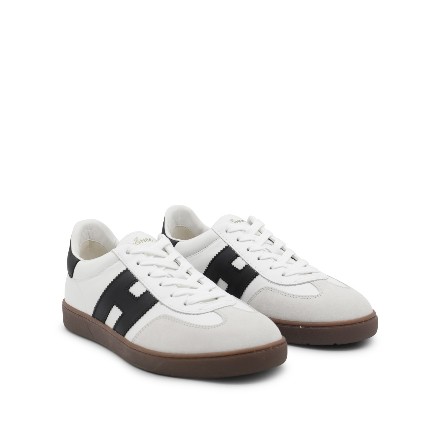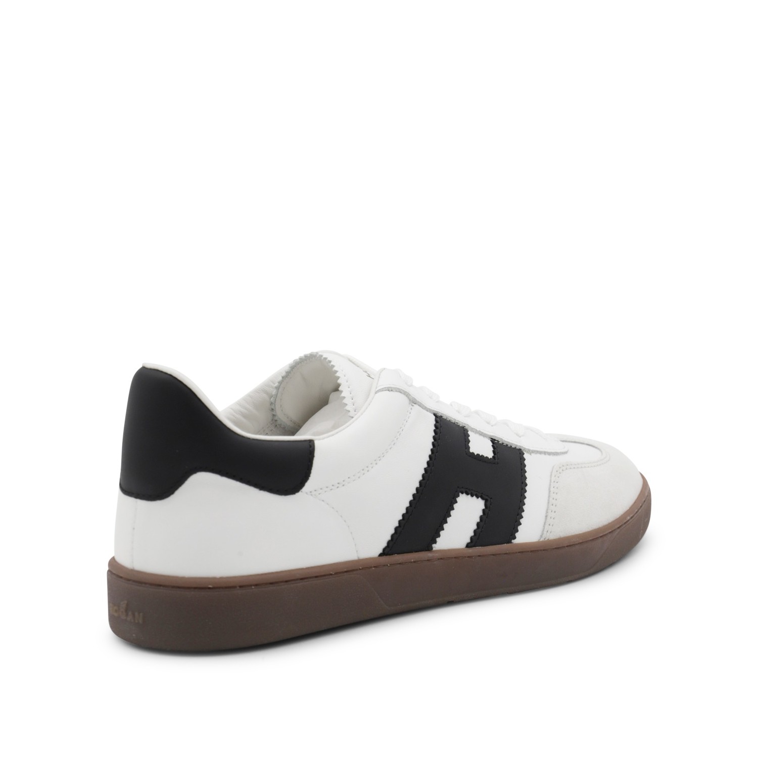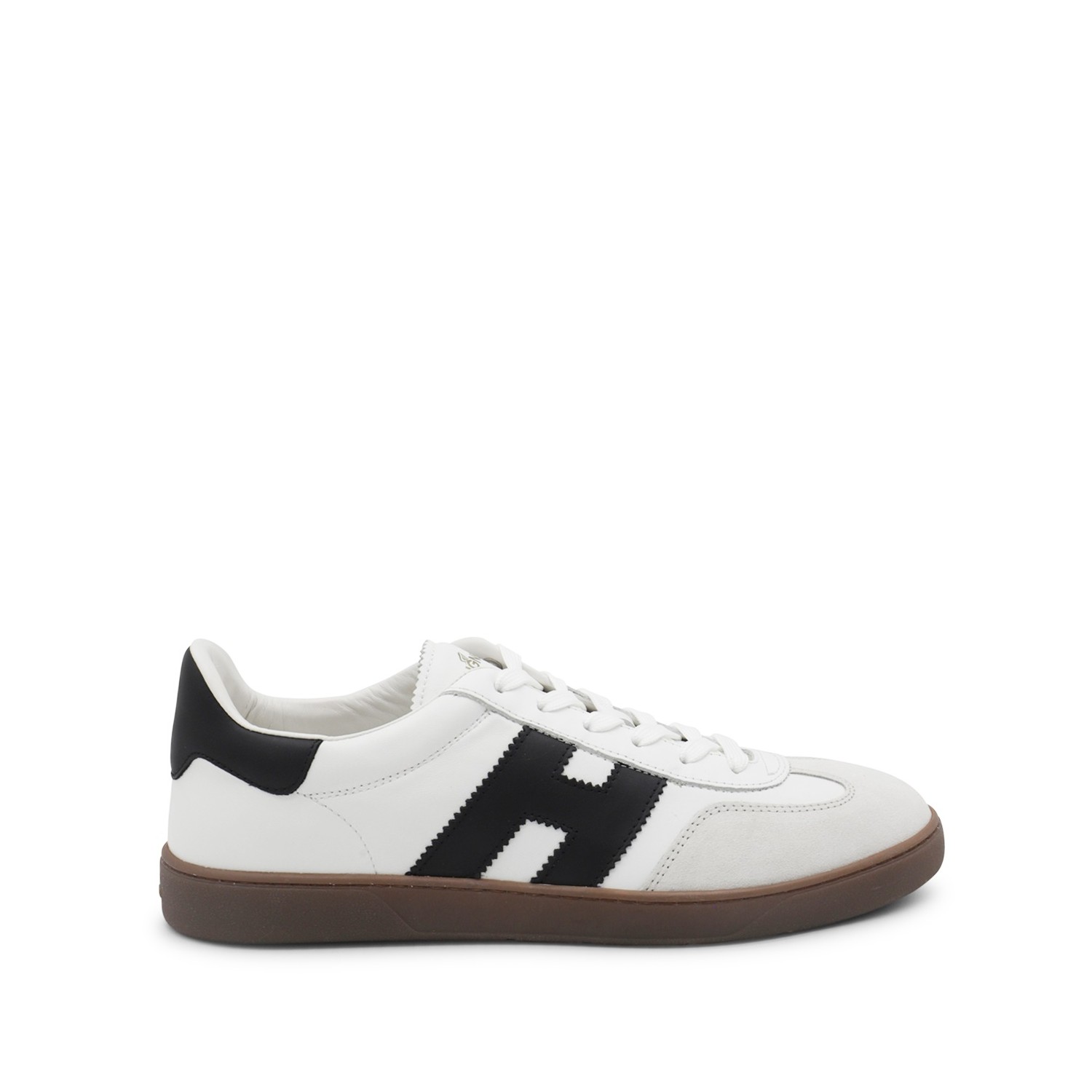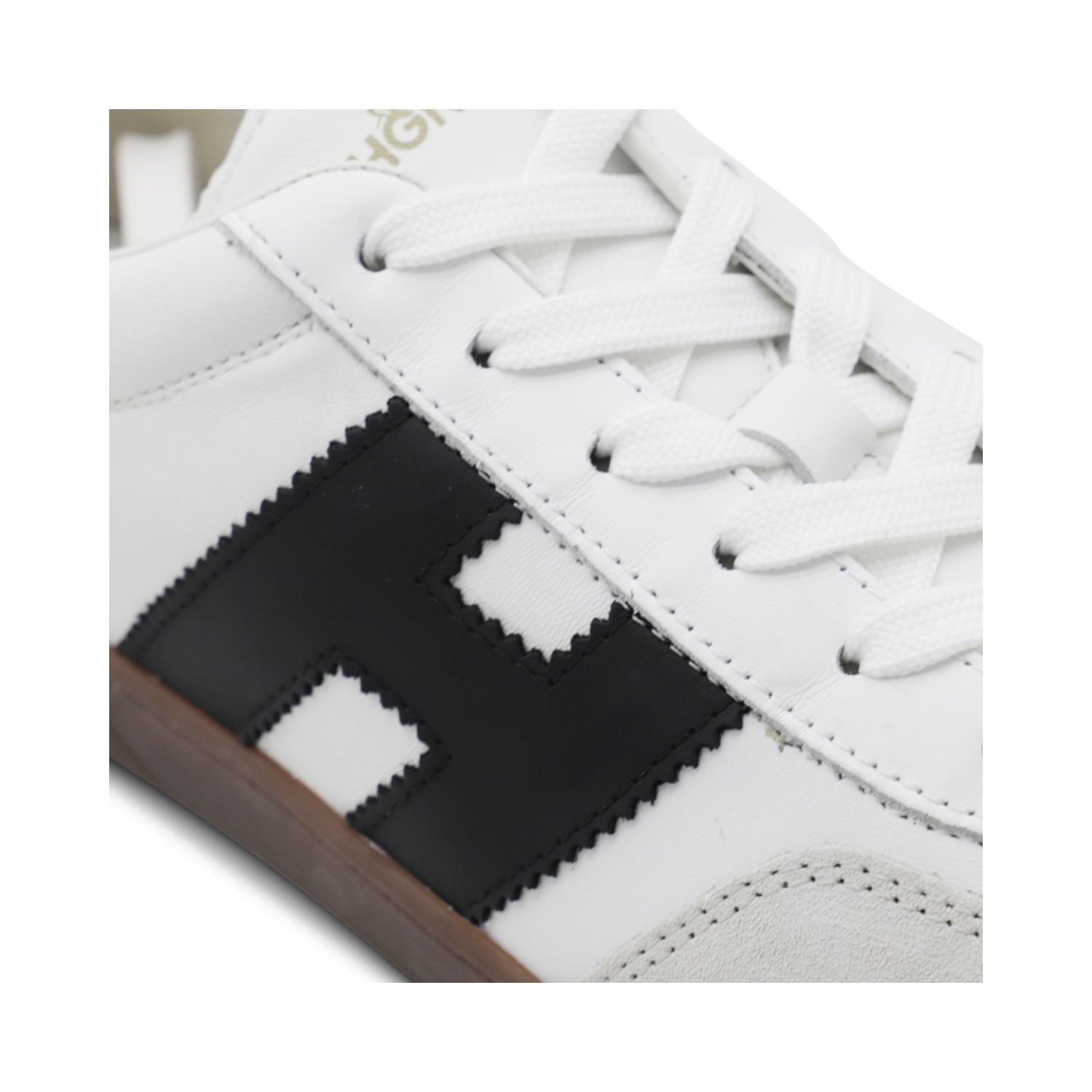 White and black leather sneakers from Hogan featuring round toe, cotton laces, lateral logo and leather sole.