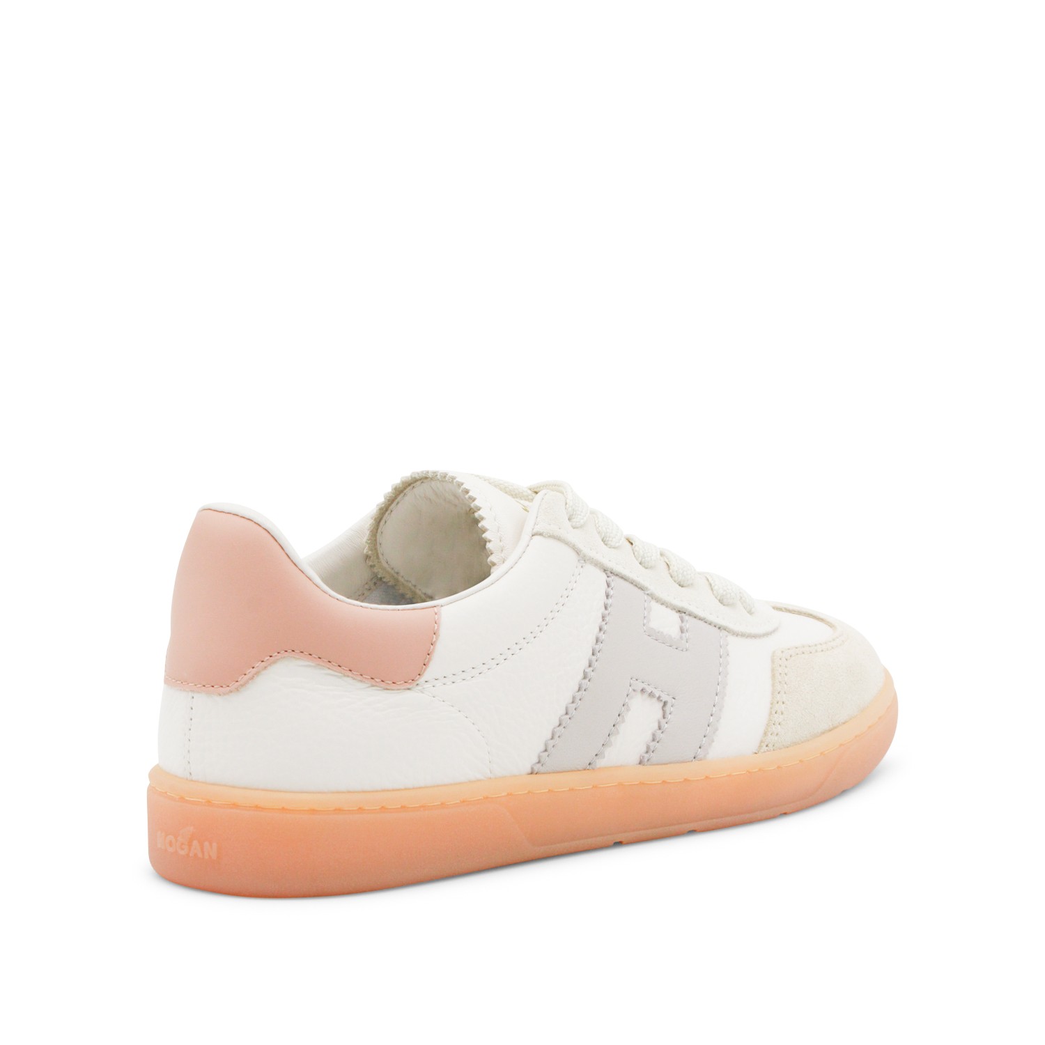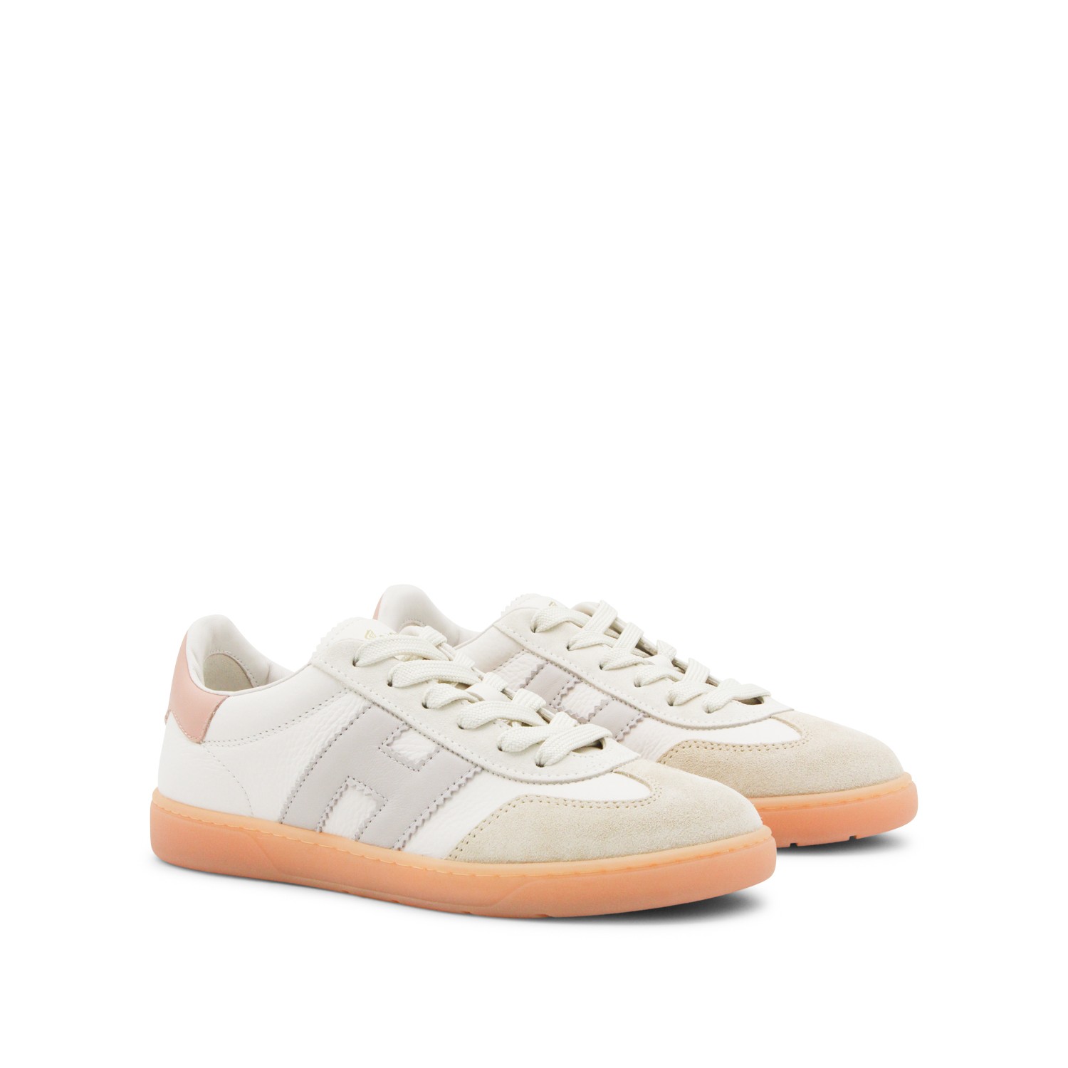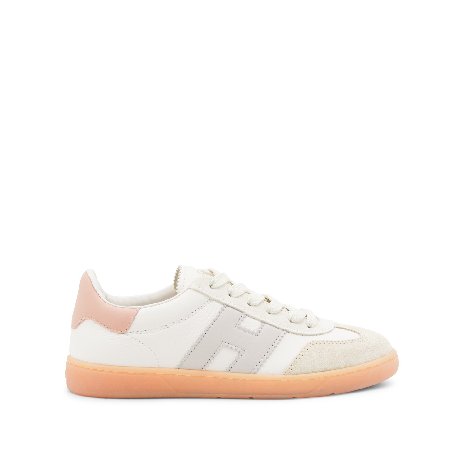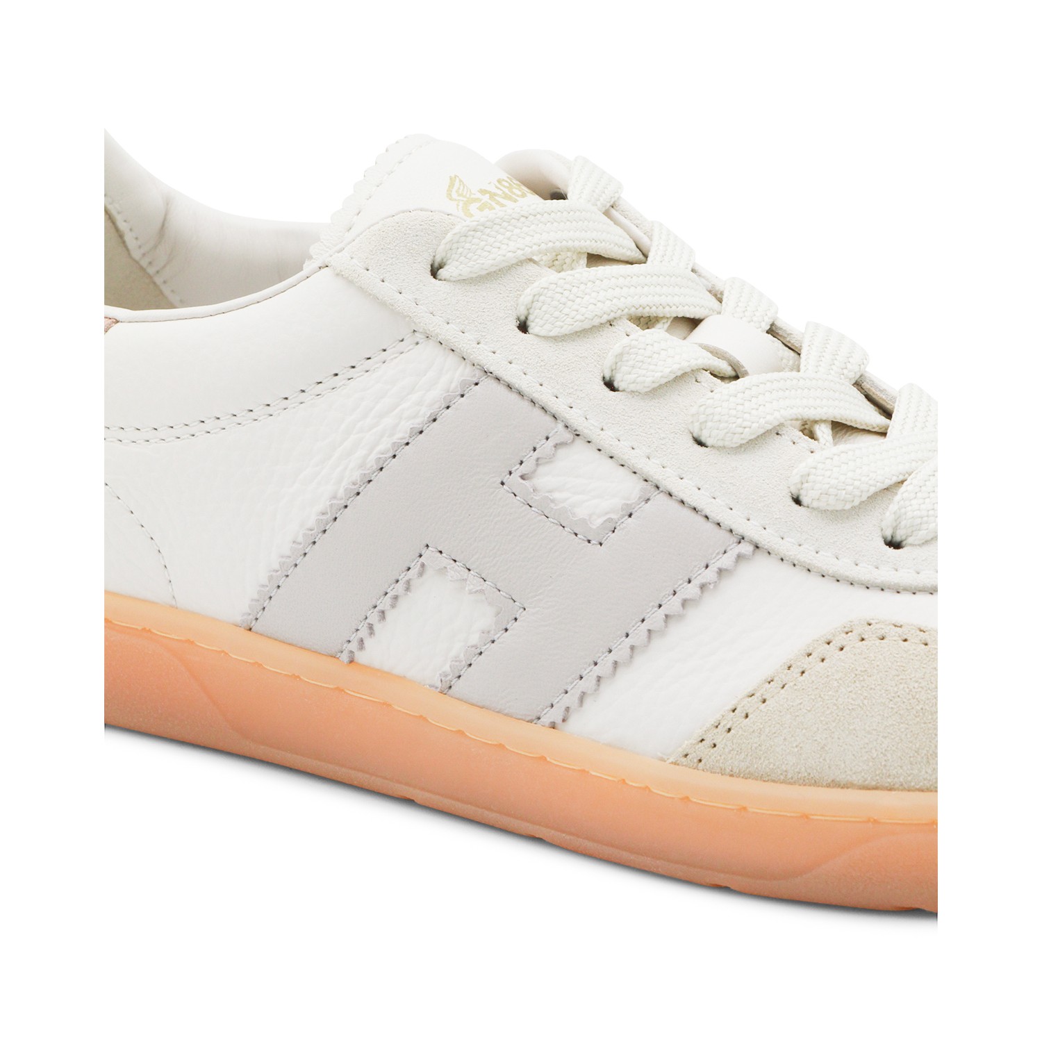 White leather Cool sneakers from Hogan featuring rubber sole, round toe, lace up closure, contrasting details and H inserts at side.