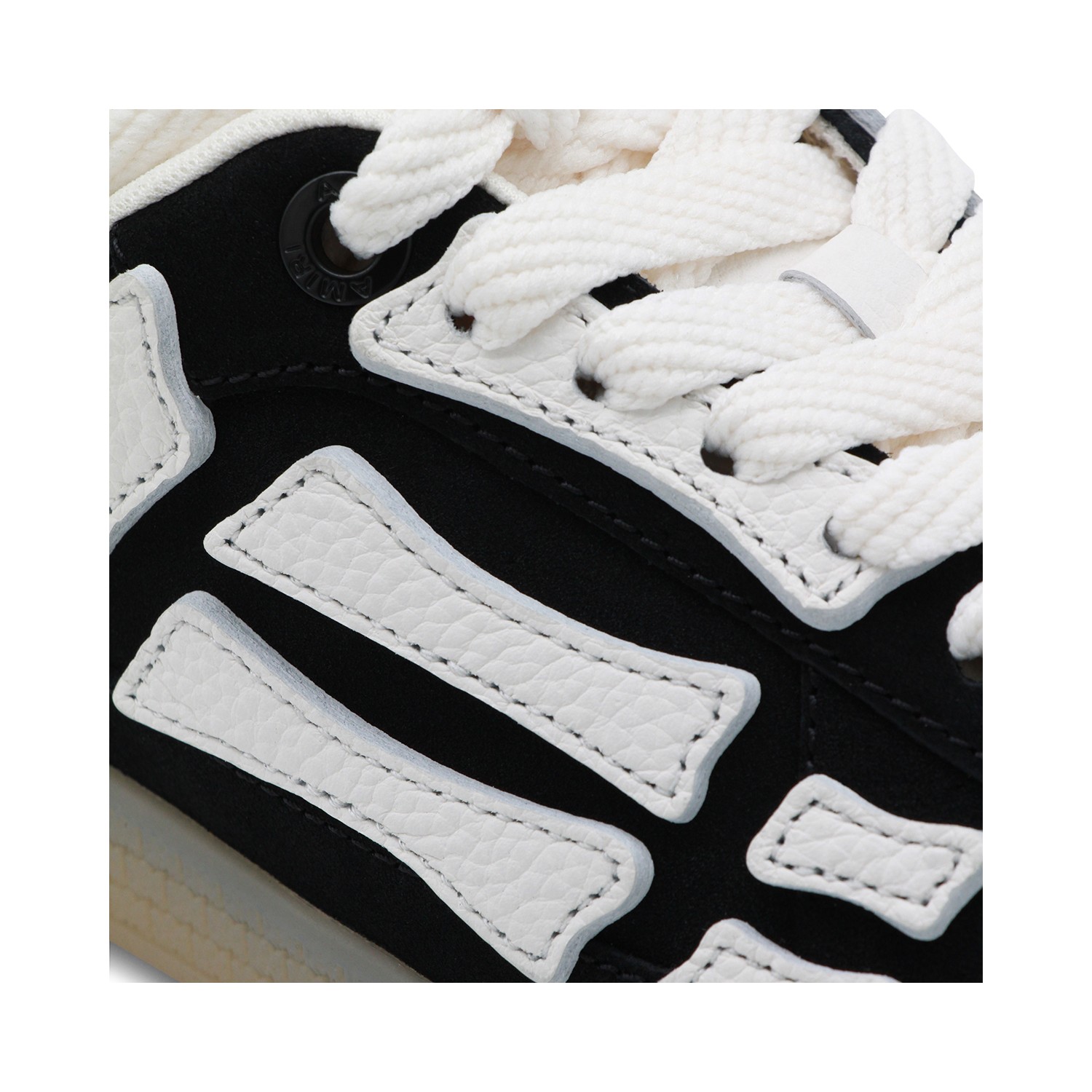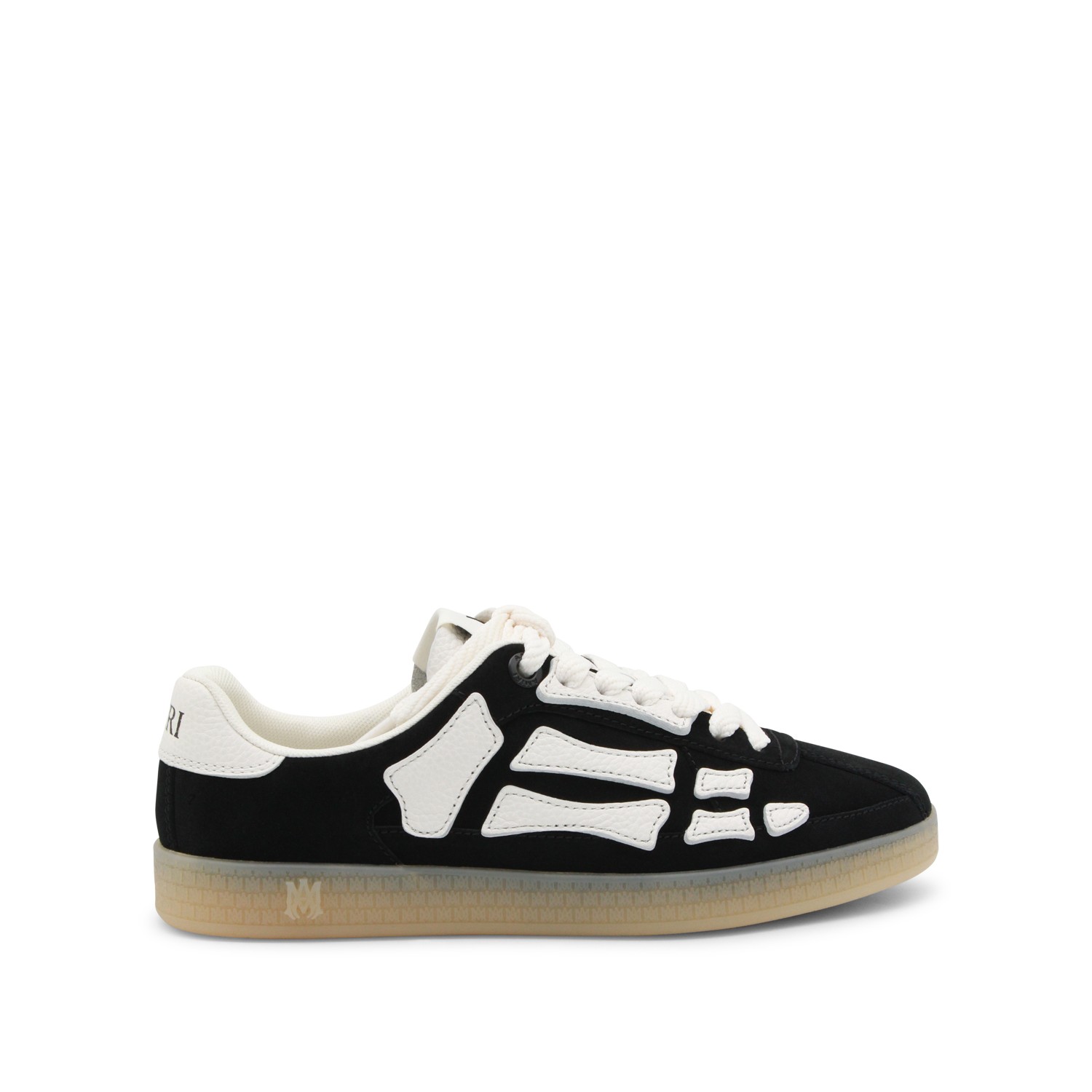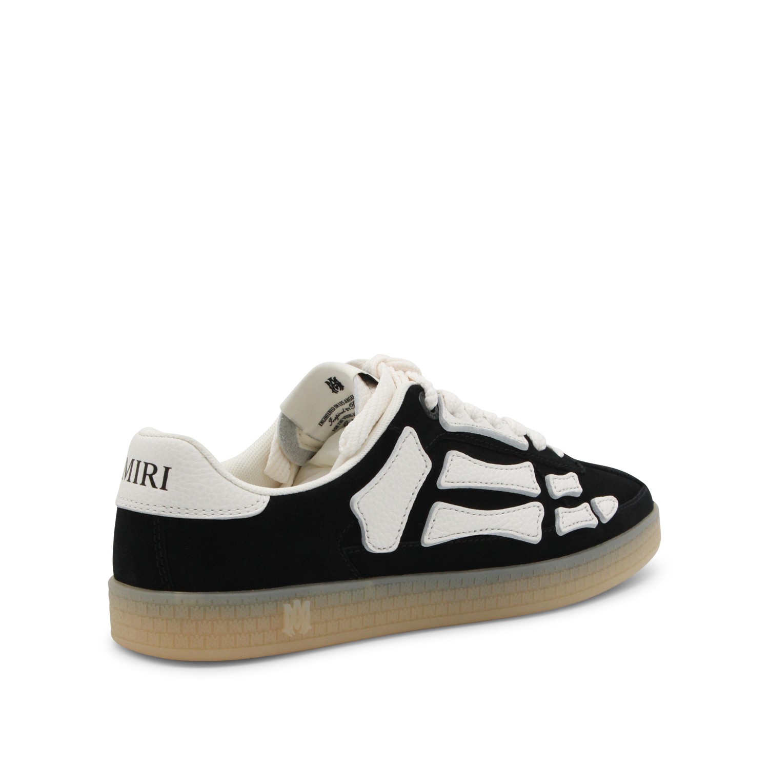 Black leather sneakers from Amiri featuring round toe, lace-up fastening, lateral details and rubber sole.