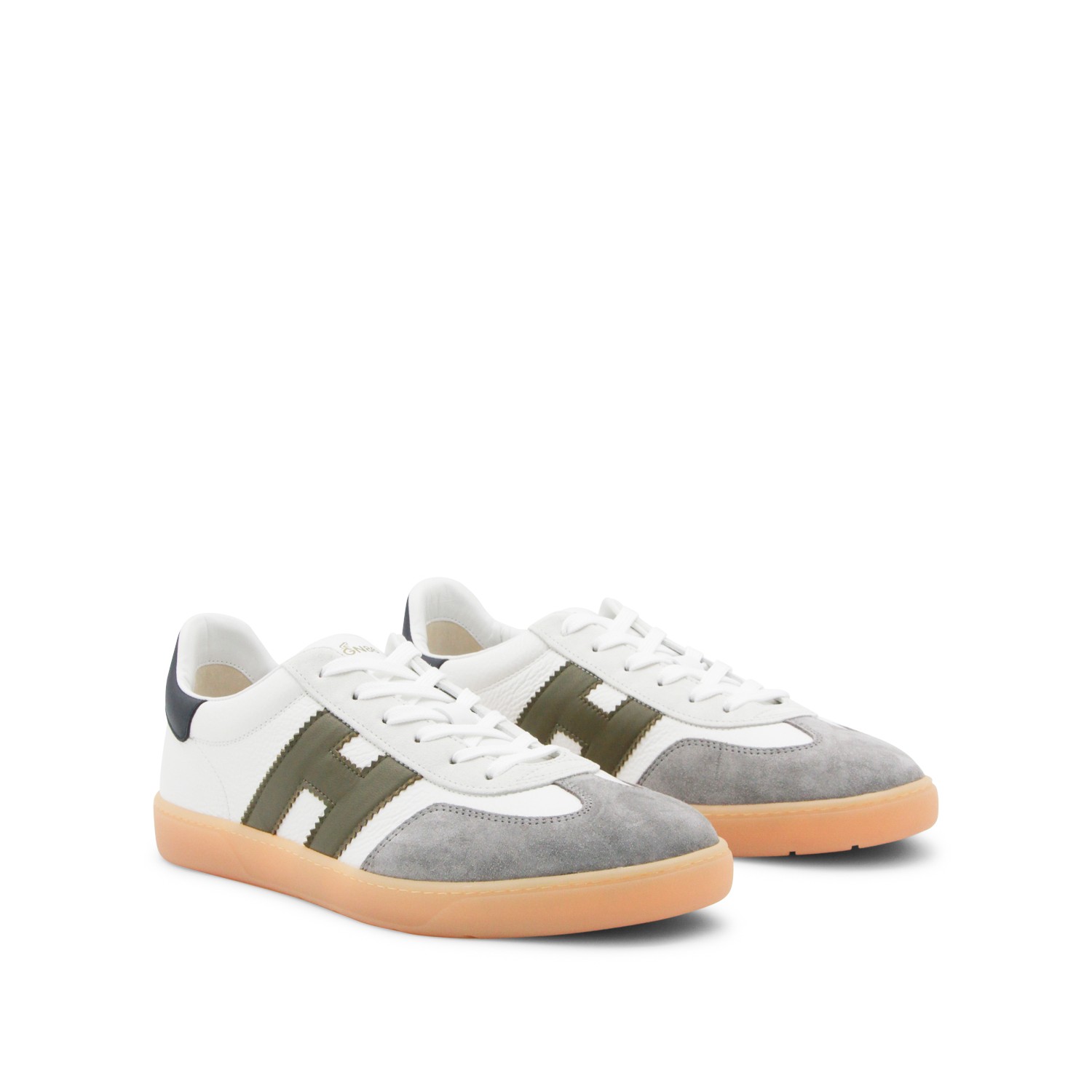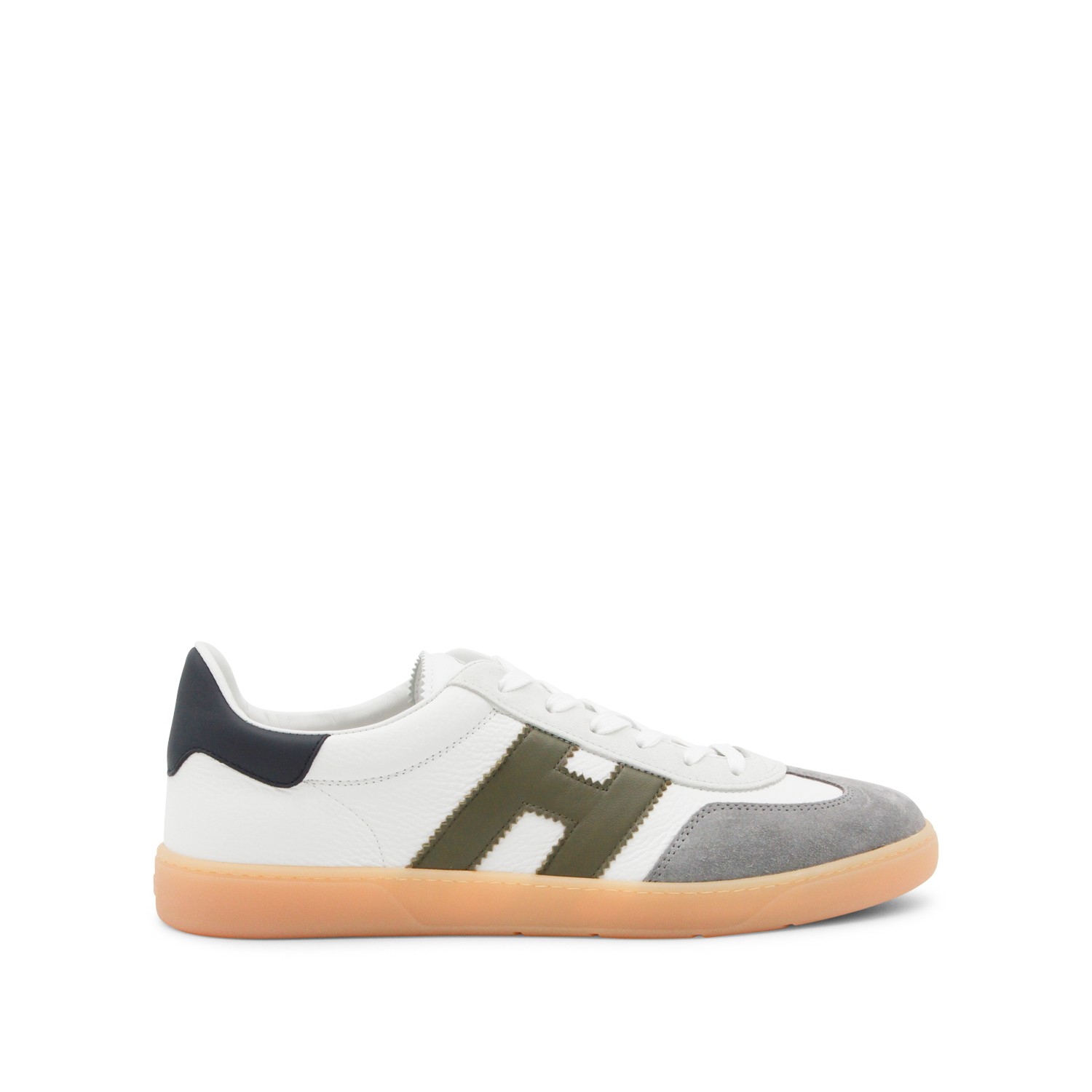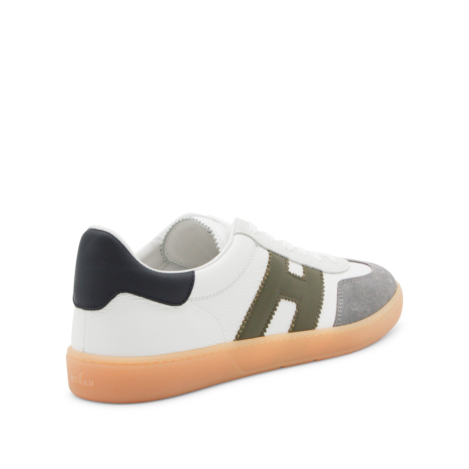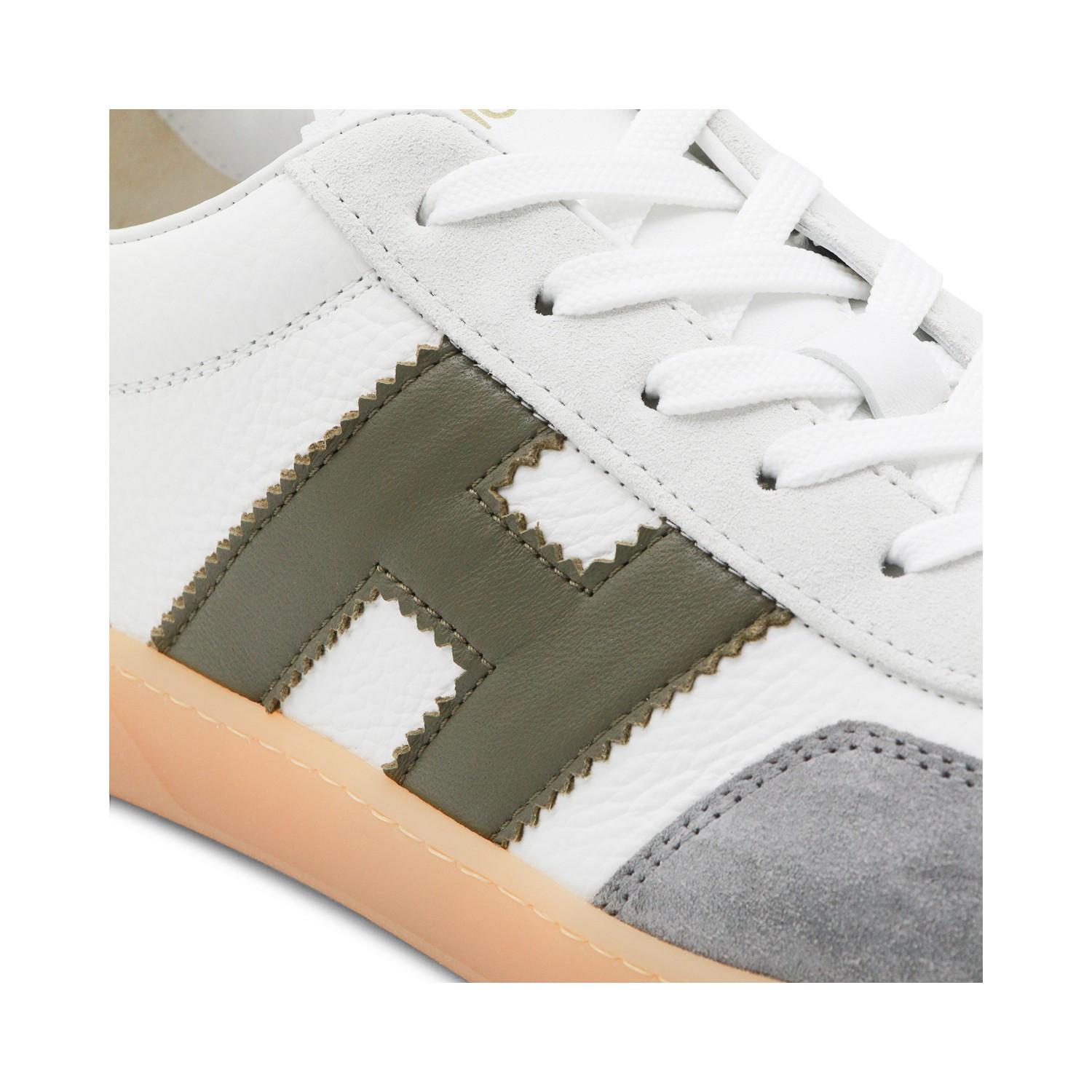 White leather sneakers from Hogan featuring round toe, lace-up fastening, colorful details, lateral logo and rubber sole.
