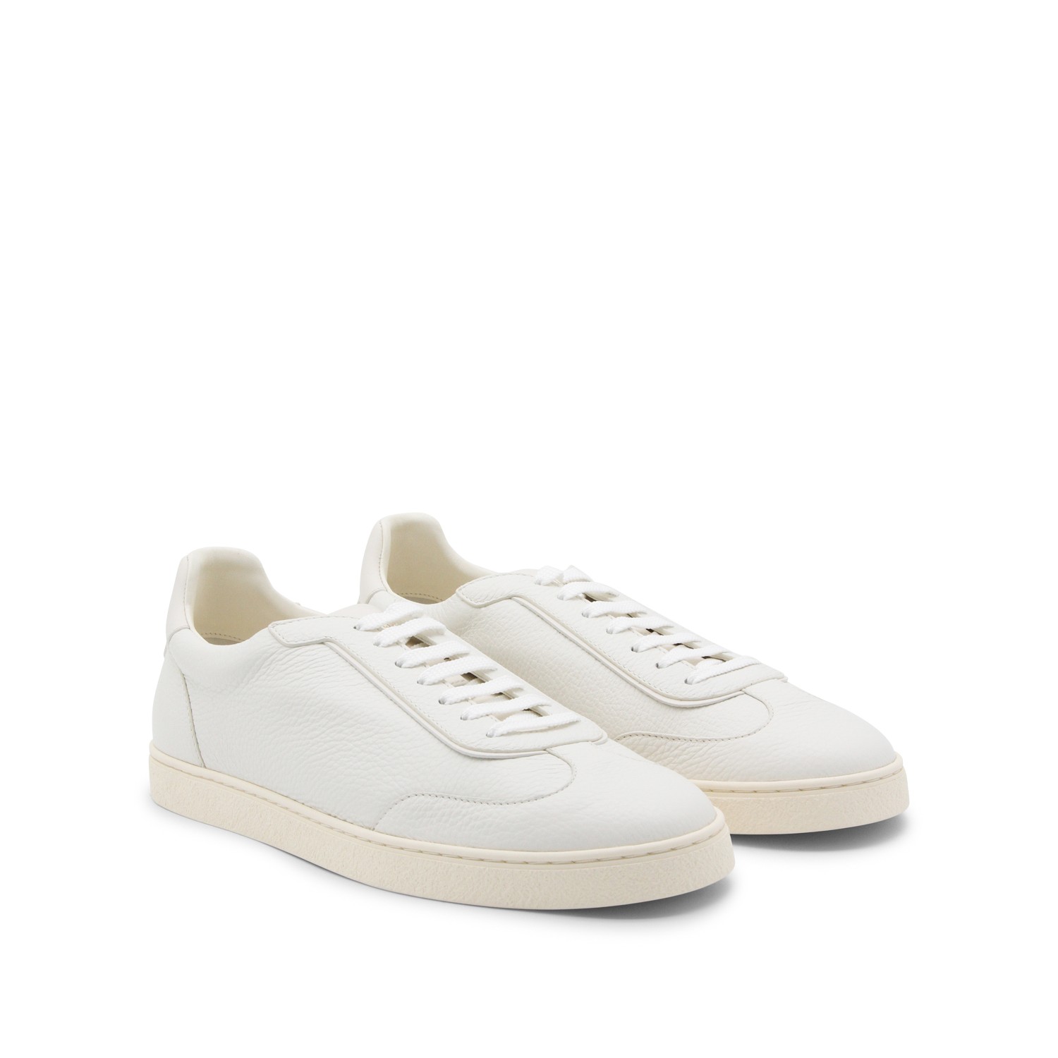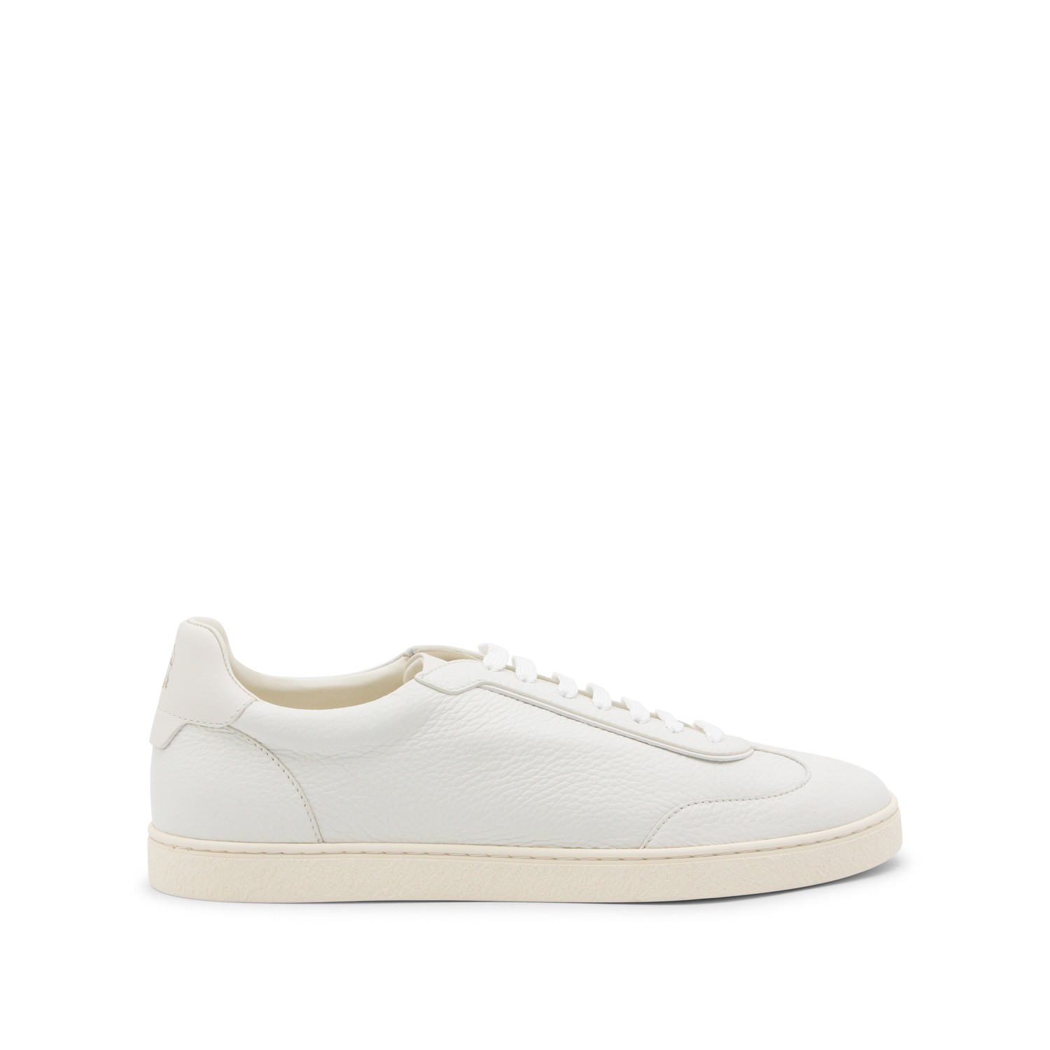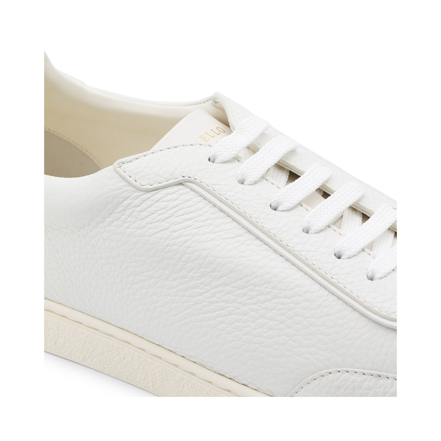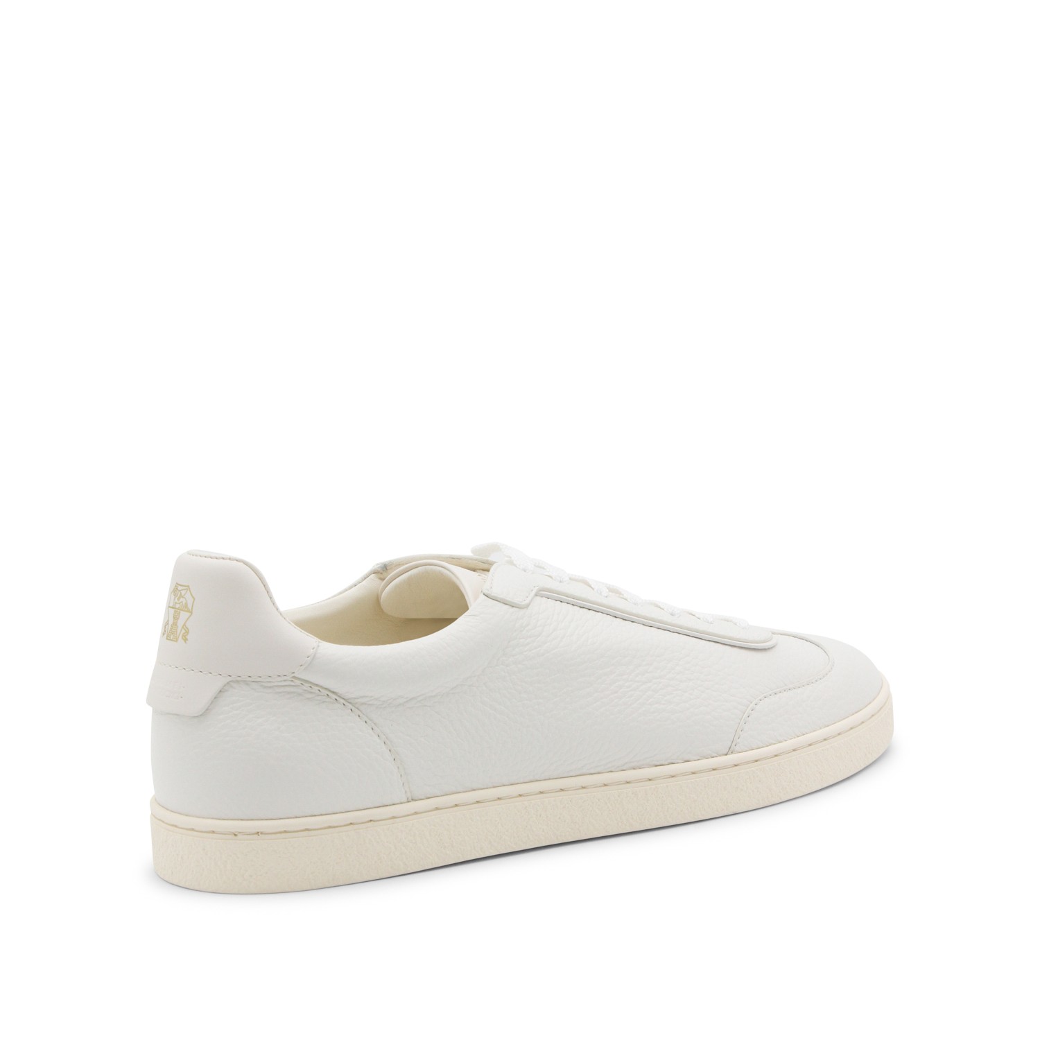 White leather sneakers from Brunello Cucinelli featuring round toe, lace up fastening, back logo, stitching details and rubber sole.