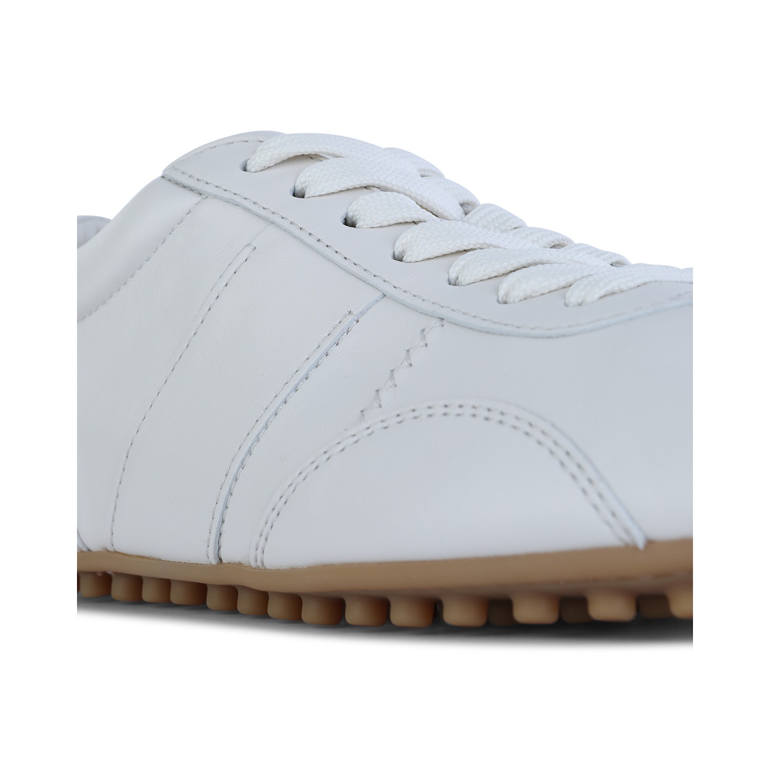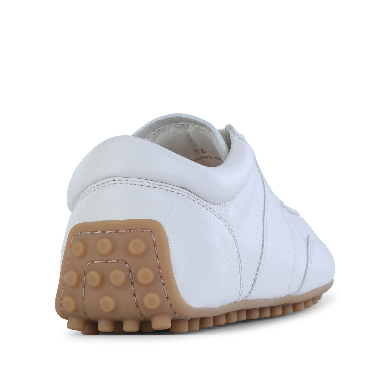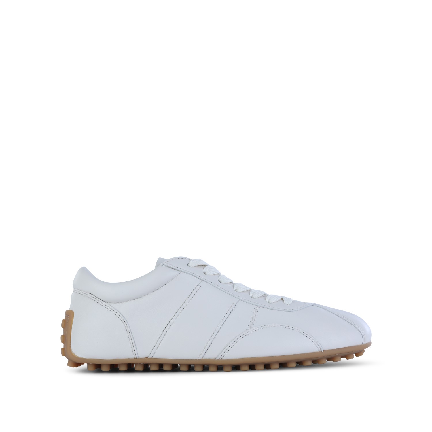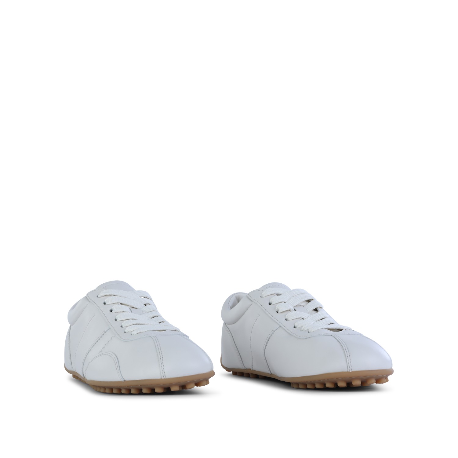 White leather sneakers from Tod's featuring round toe, lace-up fastening, stitching details and rubber sole.