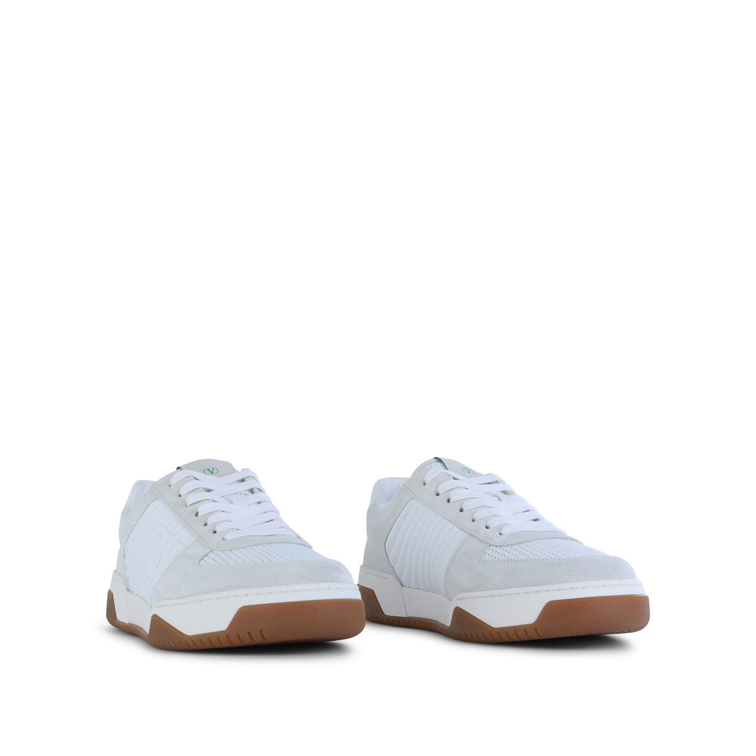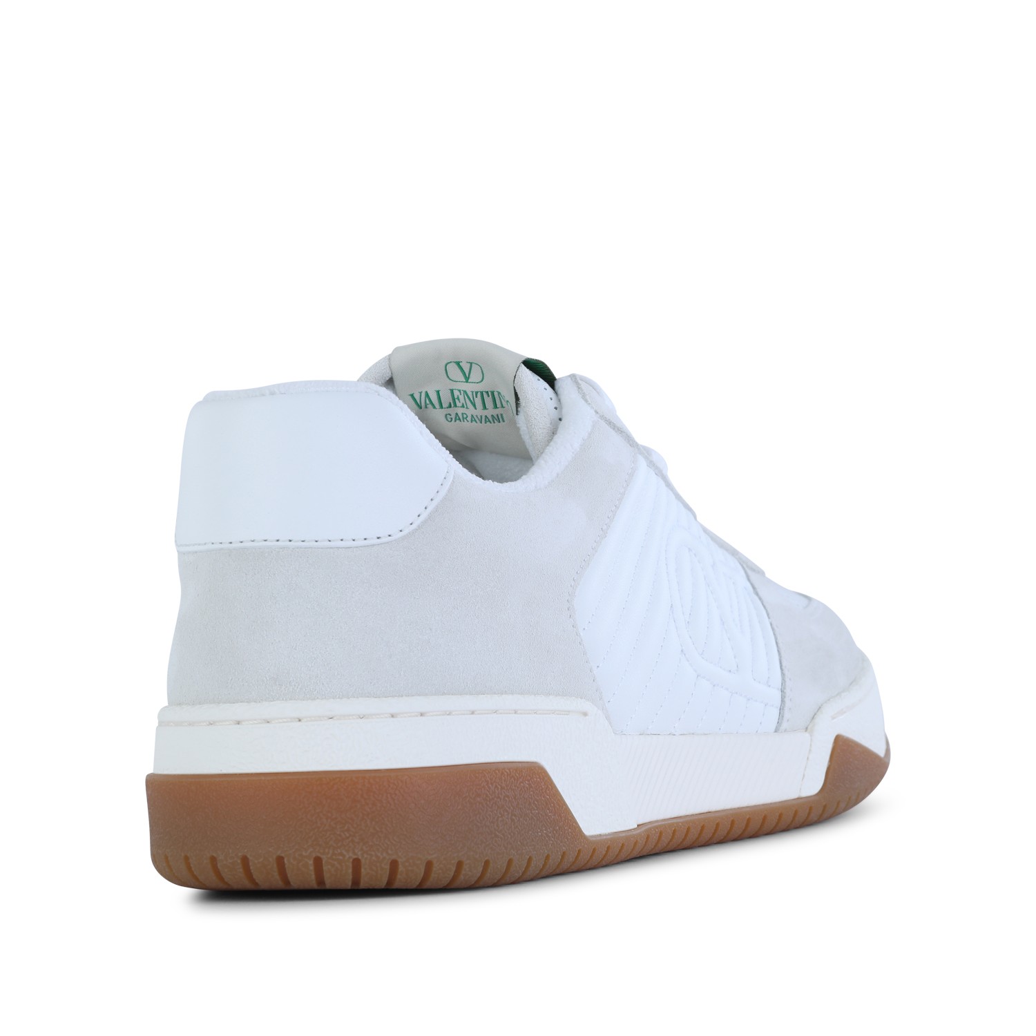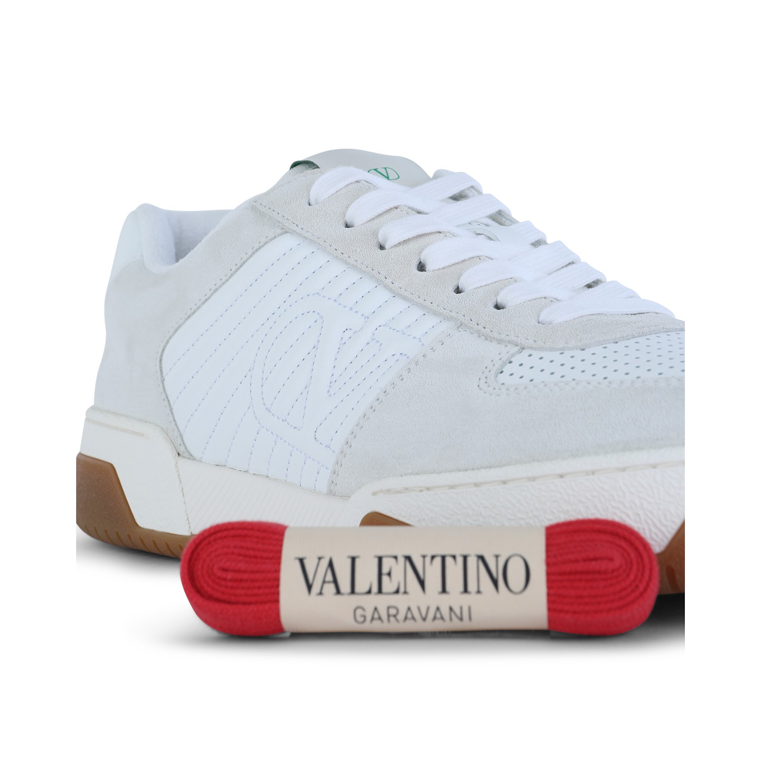 White leather sneakers from Valentino Garavani featuring round toe, cotton lace up fastening, lateral logo, all over details and rubber sole.