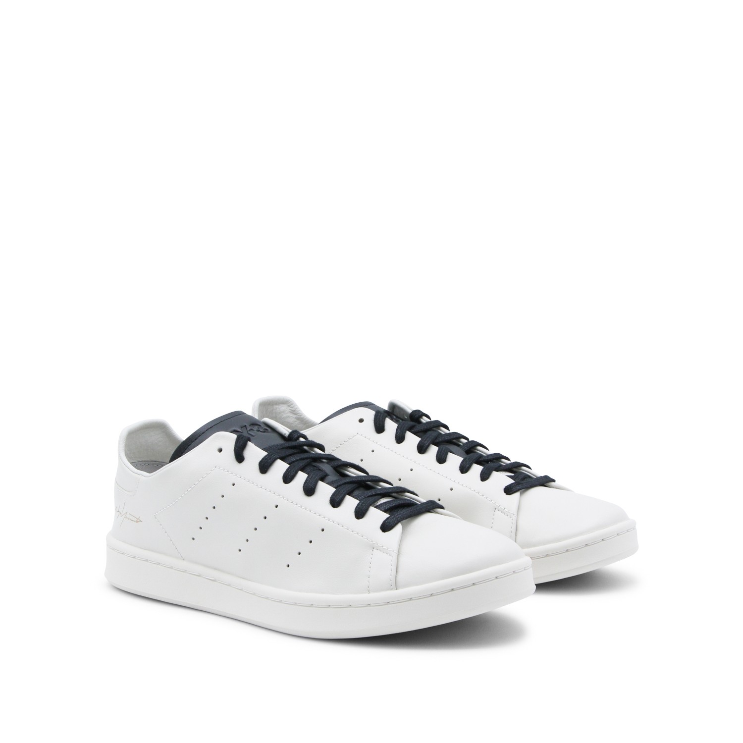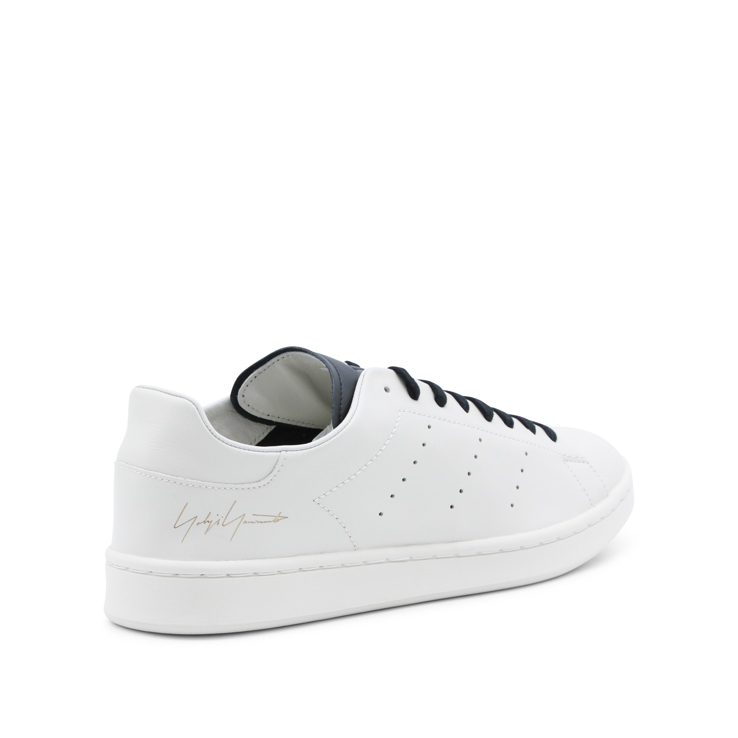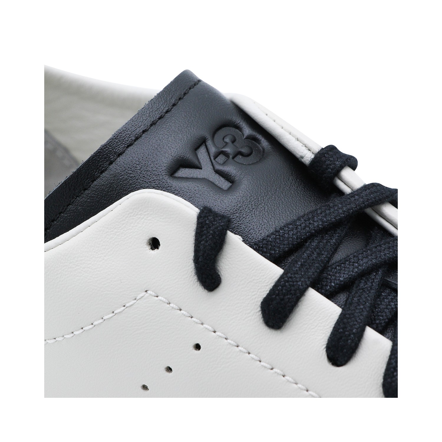 Beige leather Stan Smith sneakers from Adidas Y-3 featuring round toe, rubber sole, contrasting cotton laces and logo detail at side.