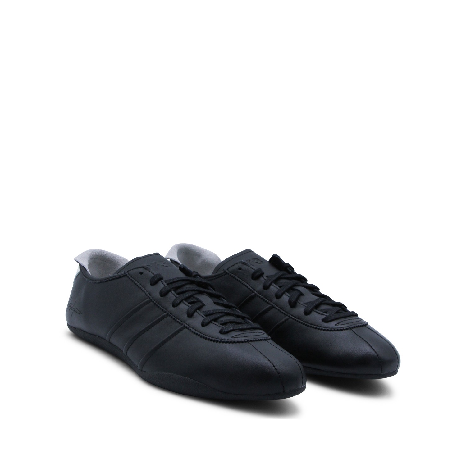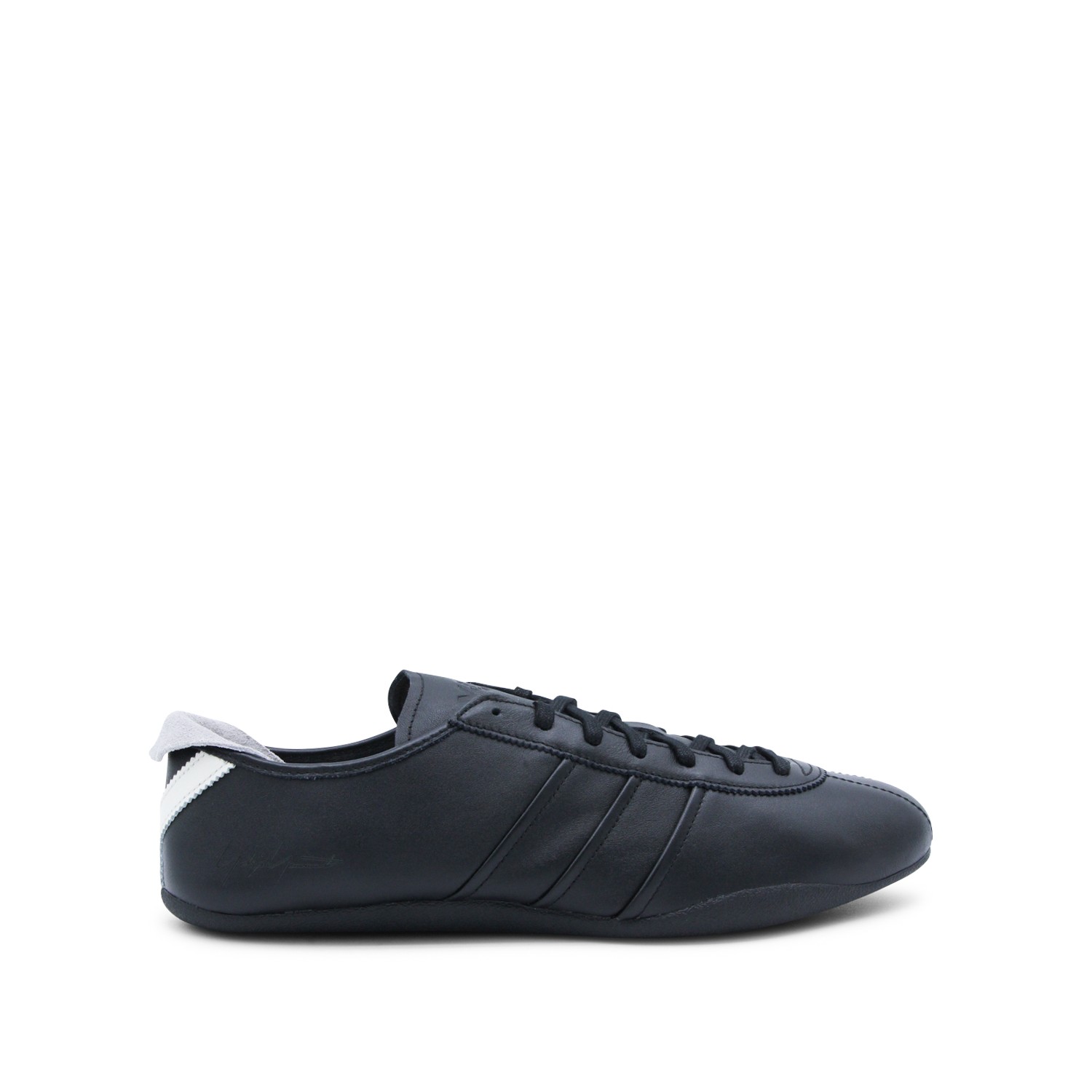 Black anche white leather Tokyo sneakers from Adidas Y-3 featuring slim rubber sole, round toe, cotton laces, logo details and contrasted tongue heel.