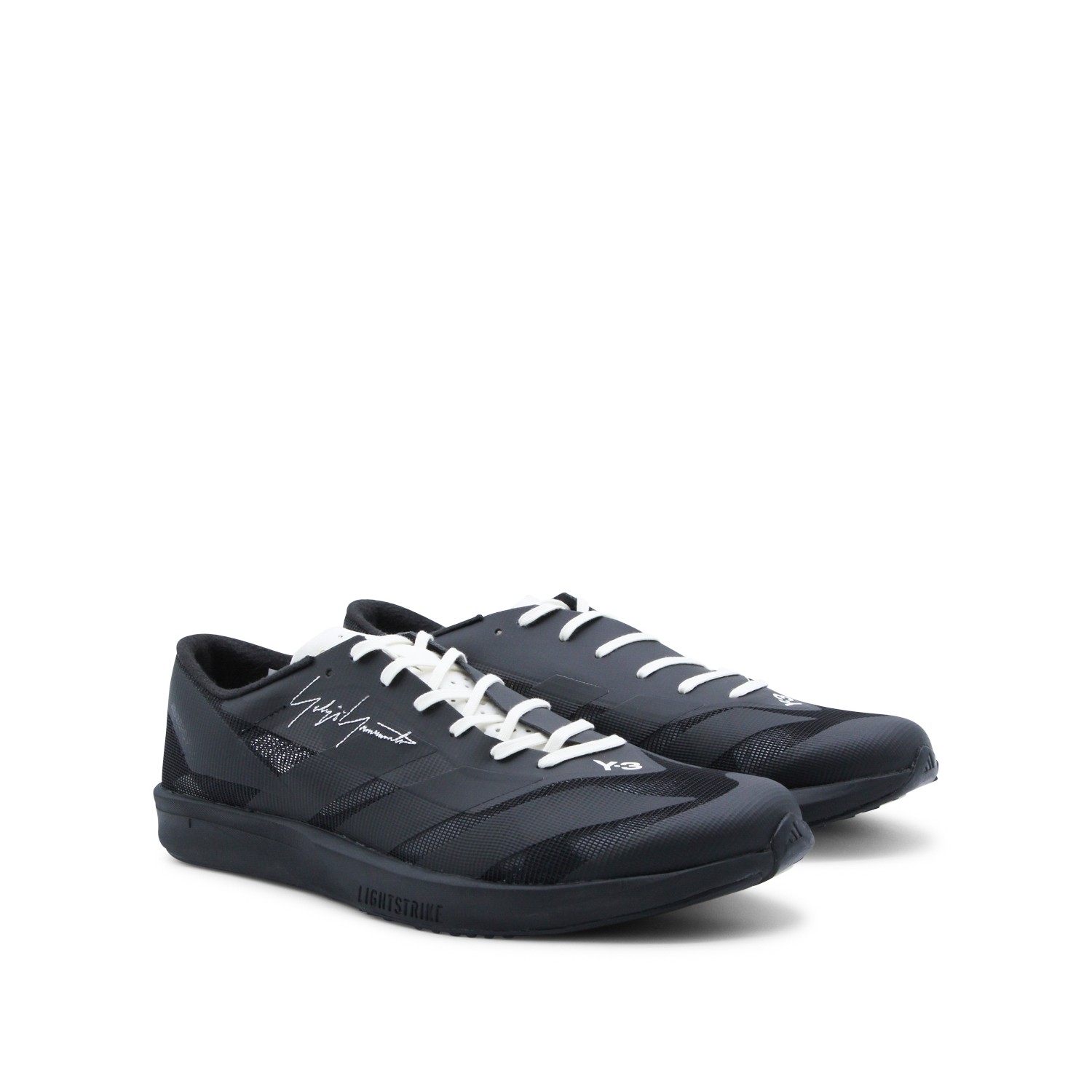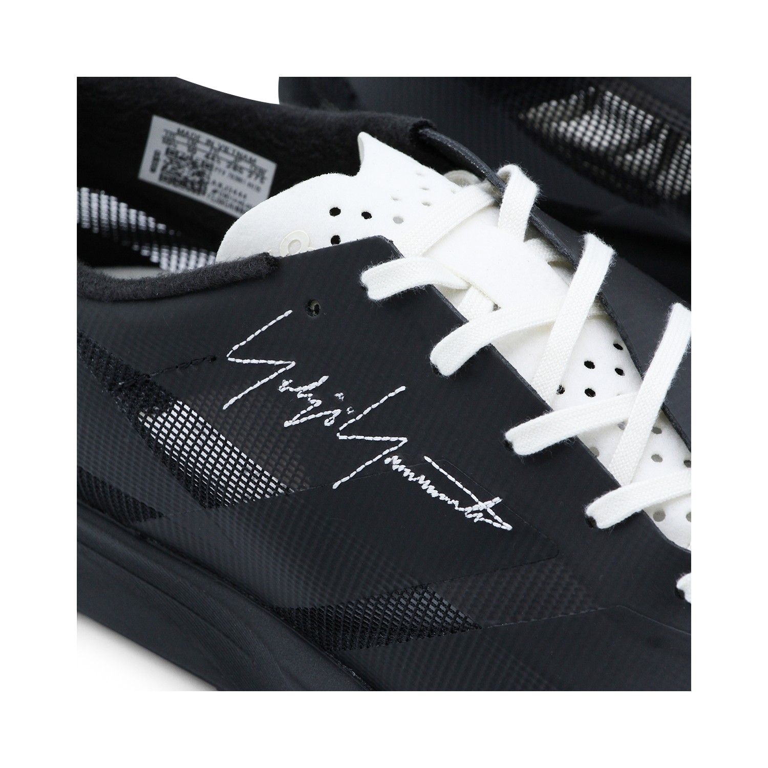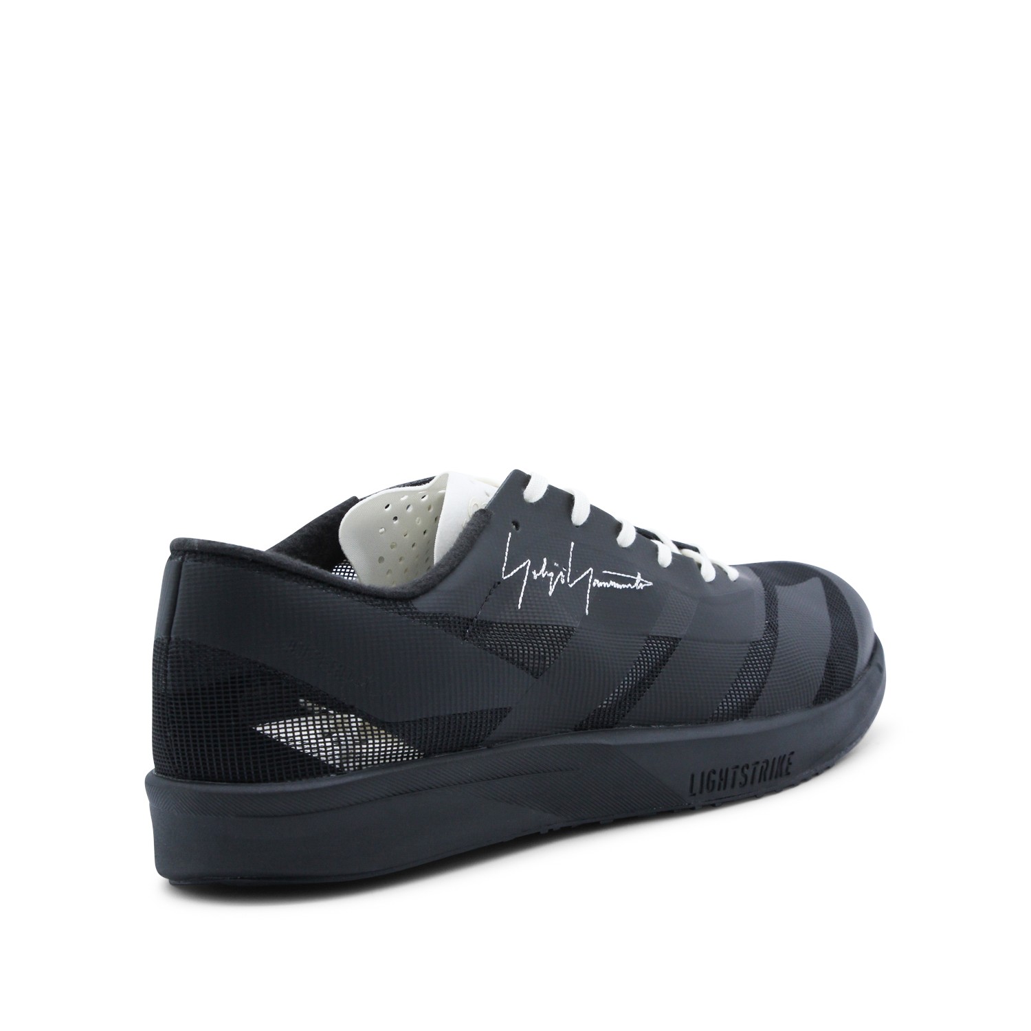 Black leather Aci6 Zero sneakers from Adidas Y-3 featuring rubber sole, cotton laces, round toe, logo inserts at side and mesh inserts.