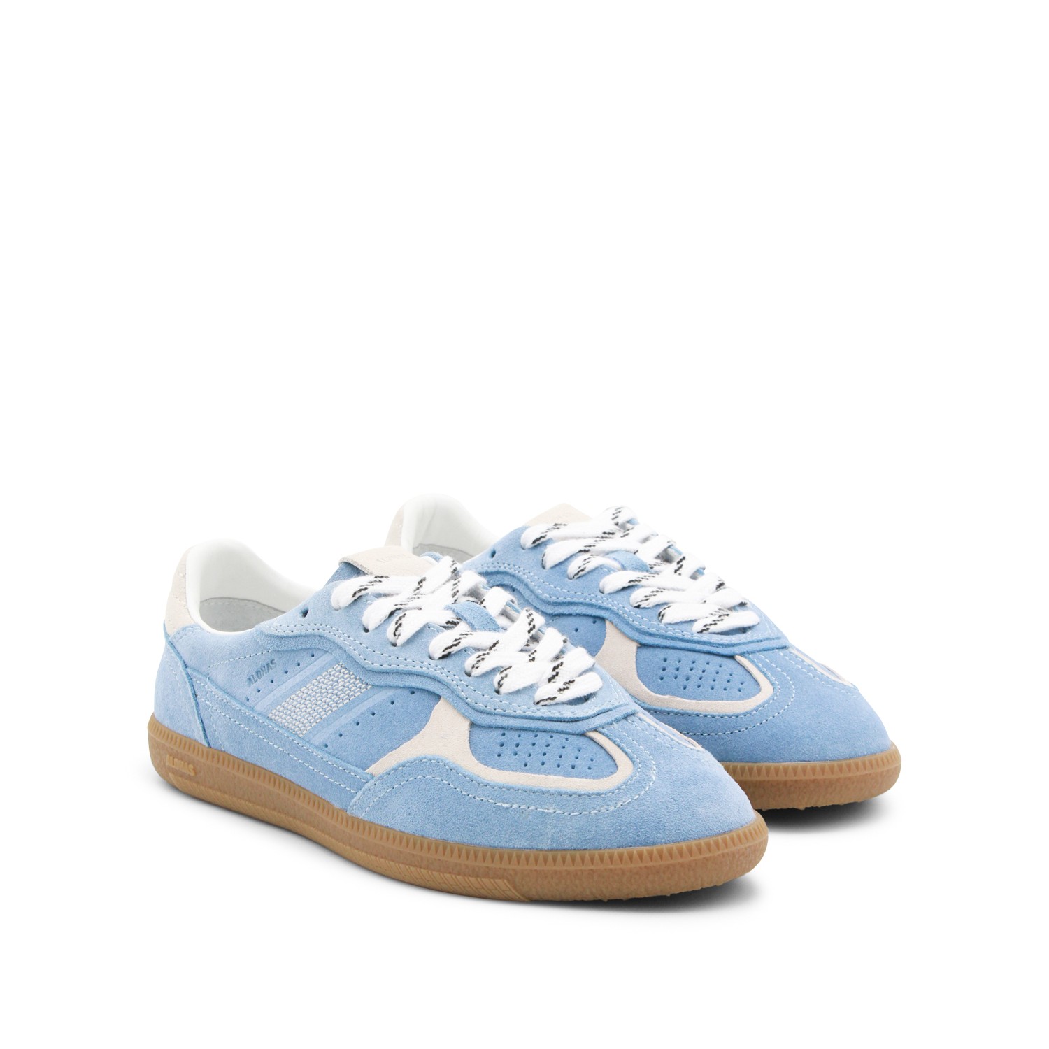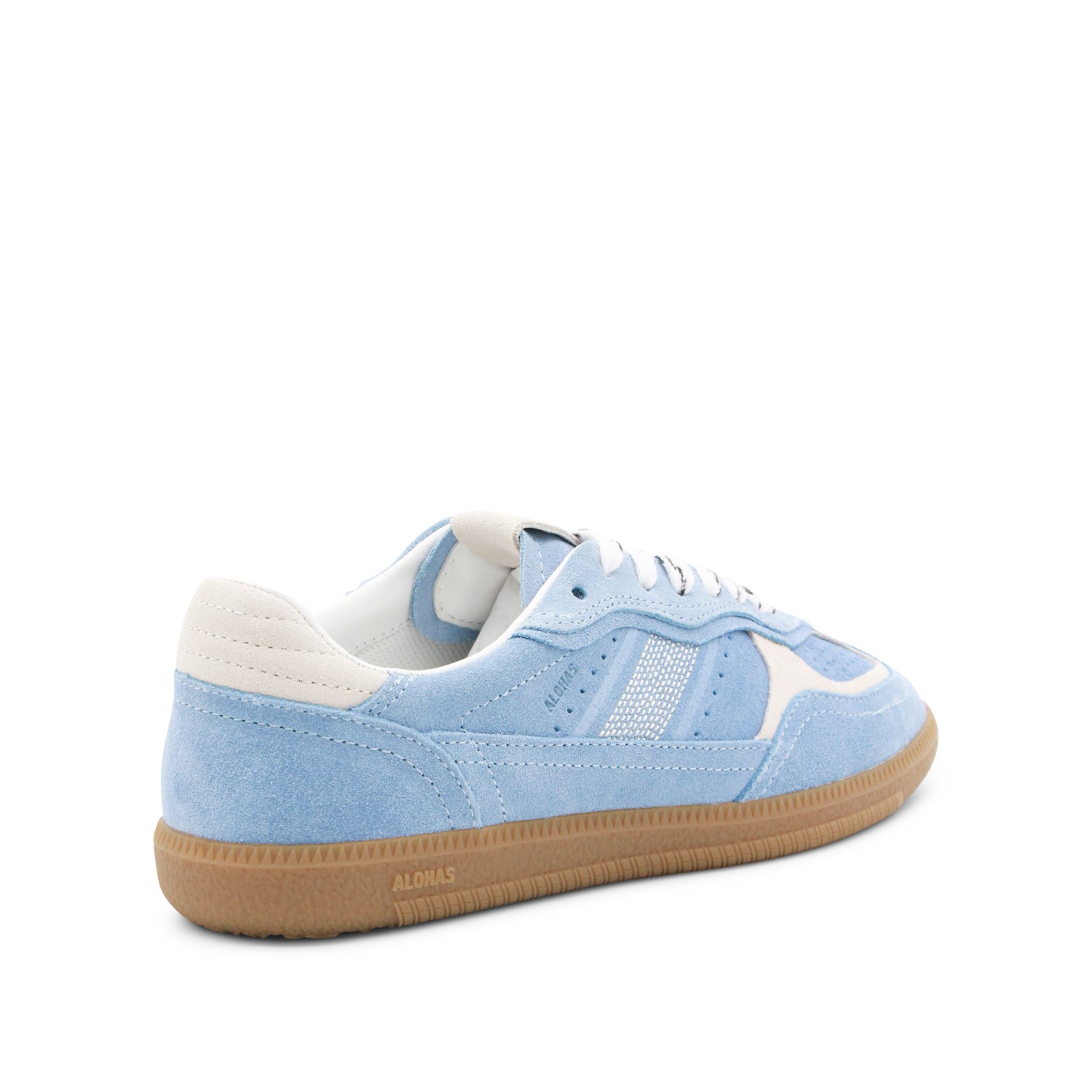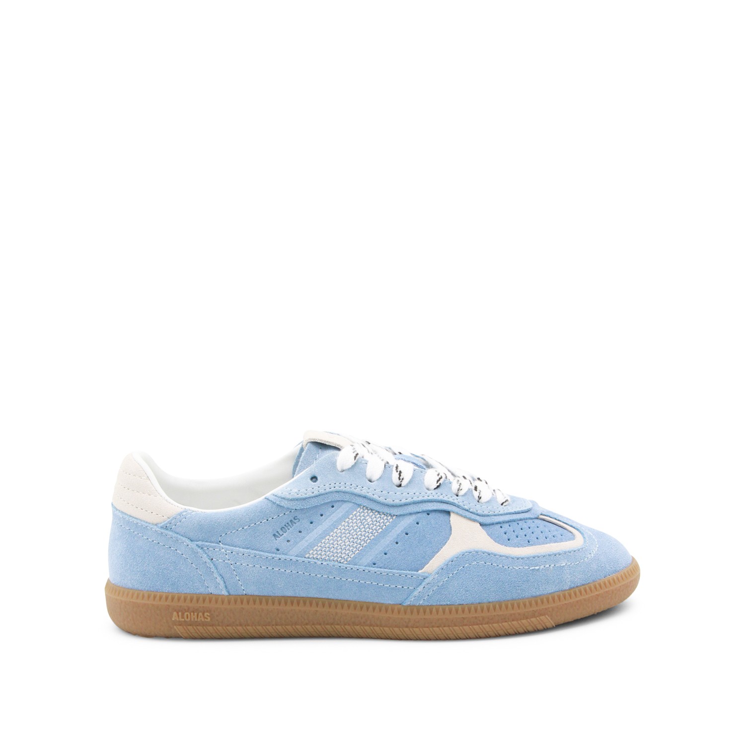 Light blue leather sneakers from Alohas featuring round toe, lace-up fastening, all-over details and rubber sole.