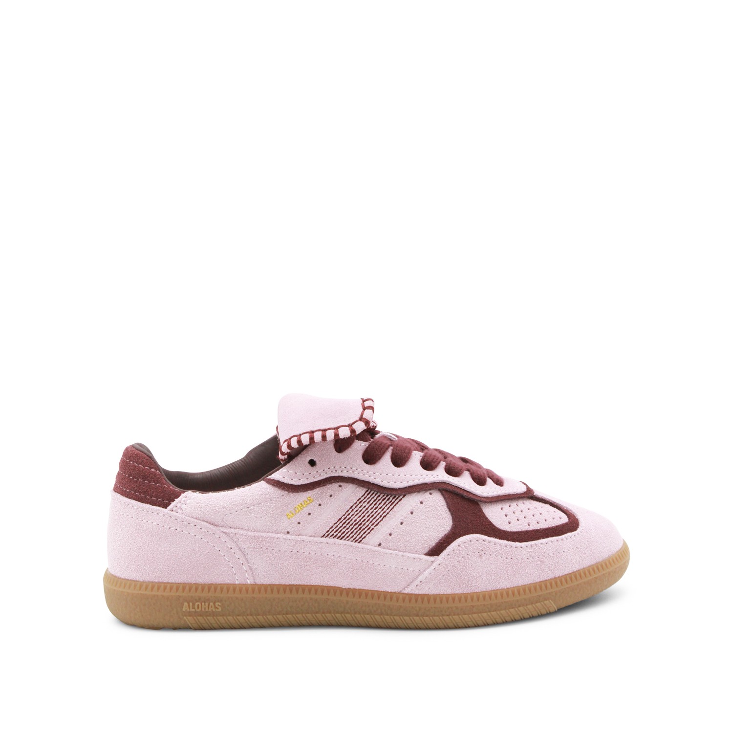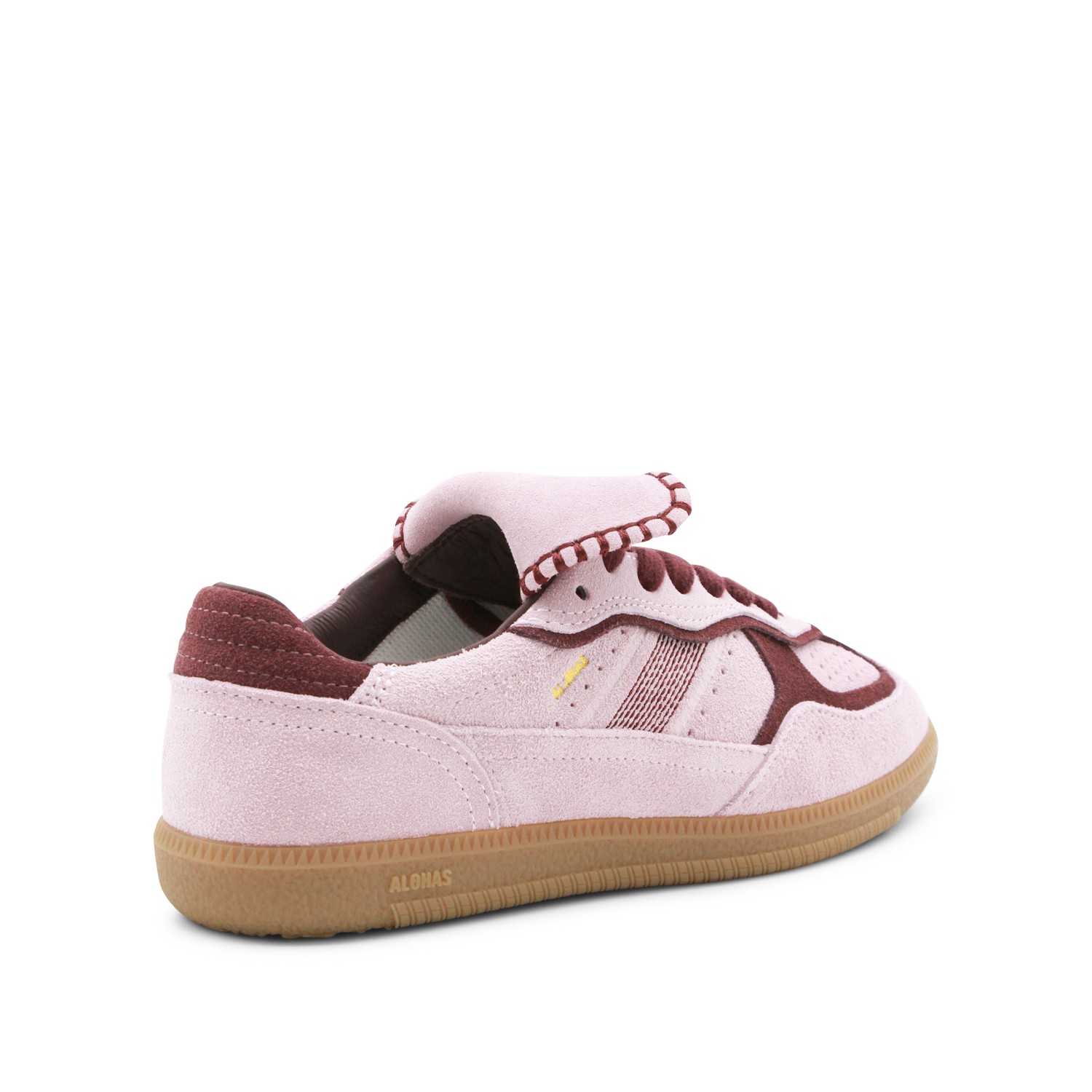 Suede pink burgundy leather sneakers from Alohas featuring round toe, laces up fastening, lace cover tab, contrasting details and rubber sole.