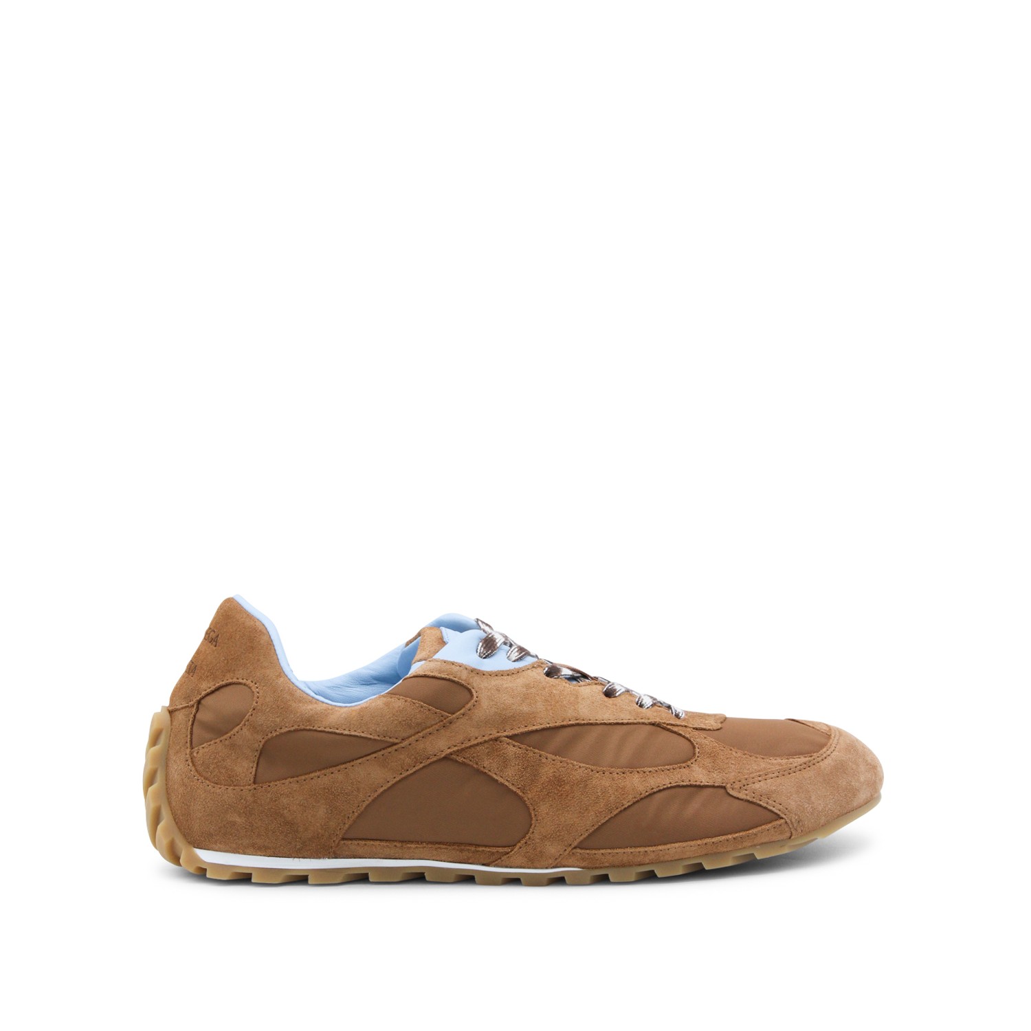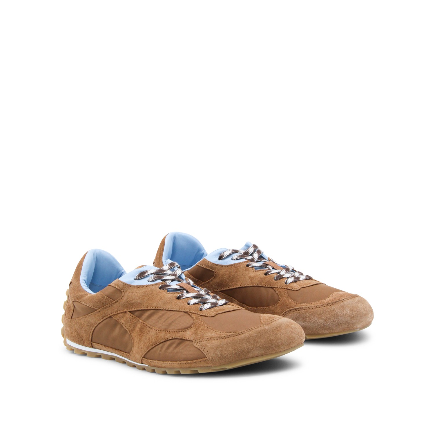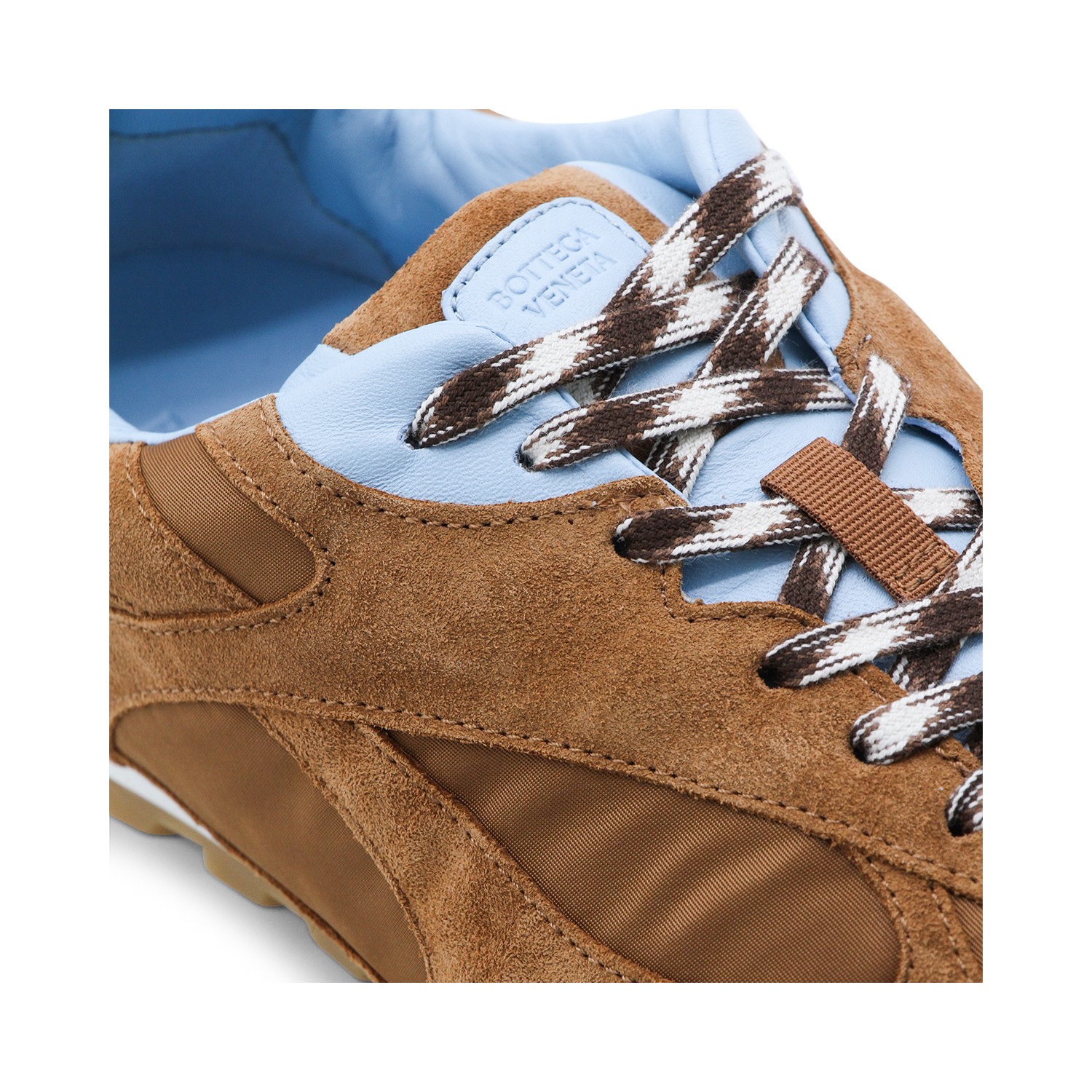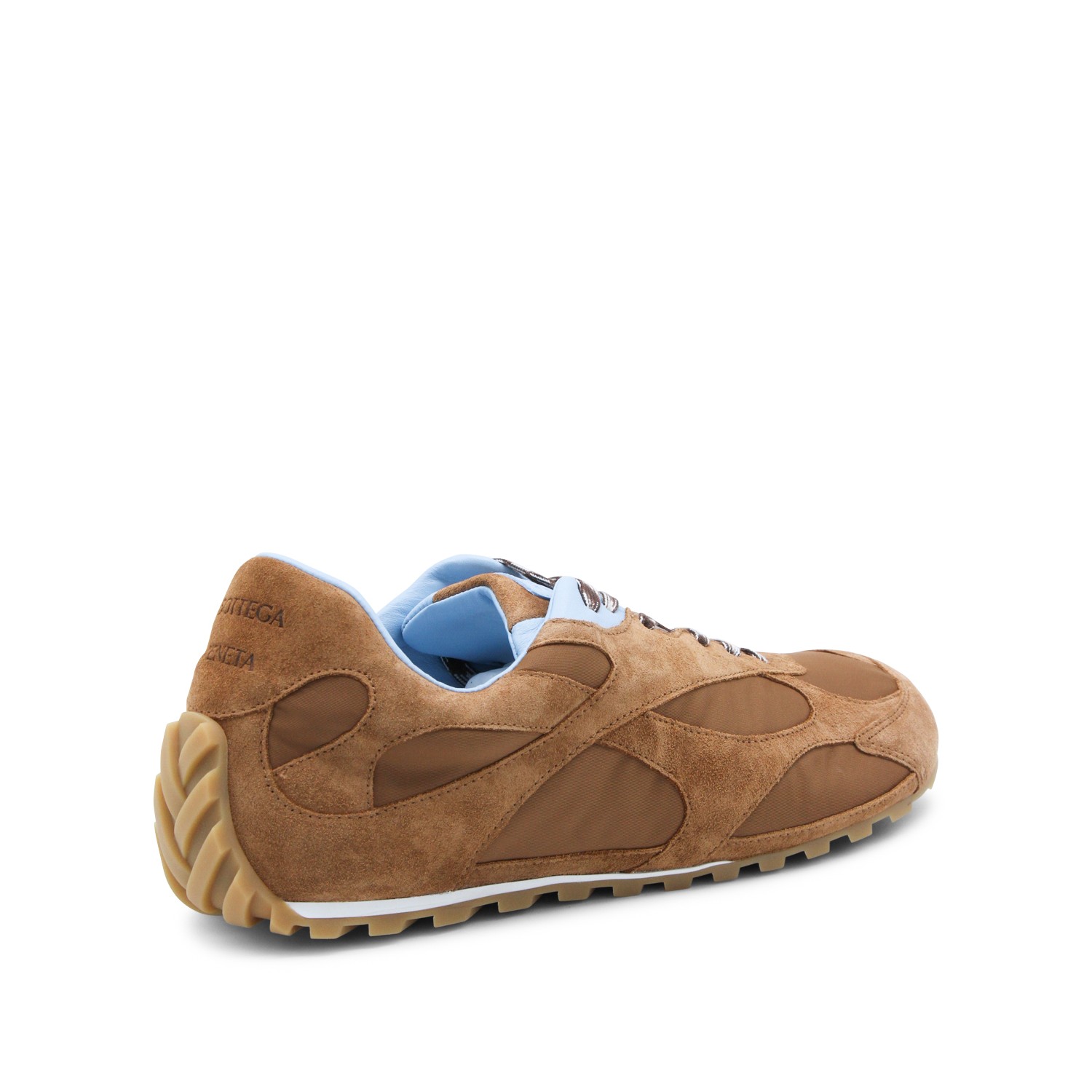 New amber and Iceberg suede sneakers from Bottega Veneta featuring cotton laces, suede inserts, mesh details and low rubber sole.