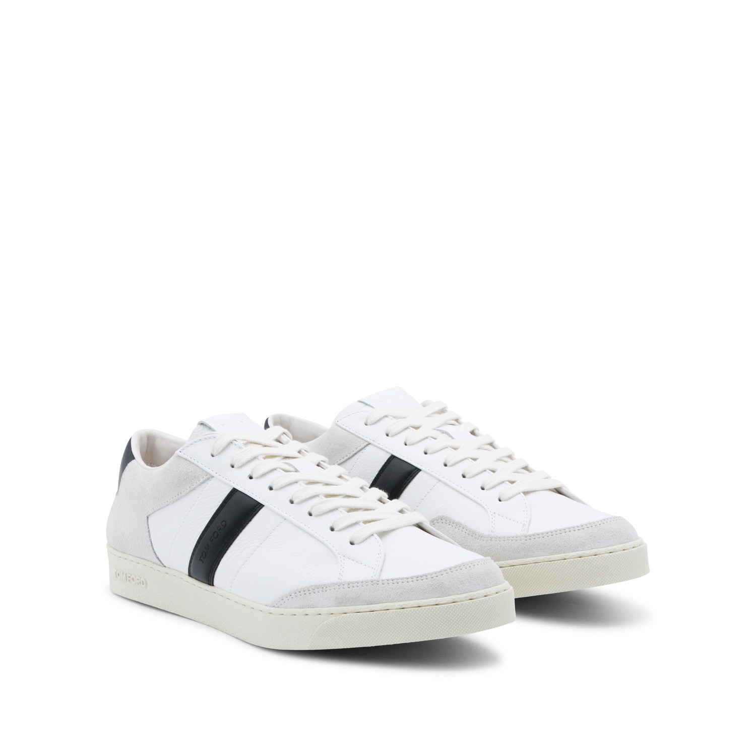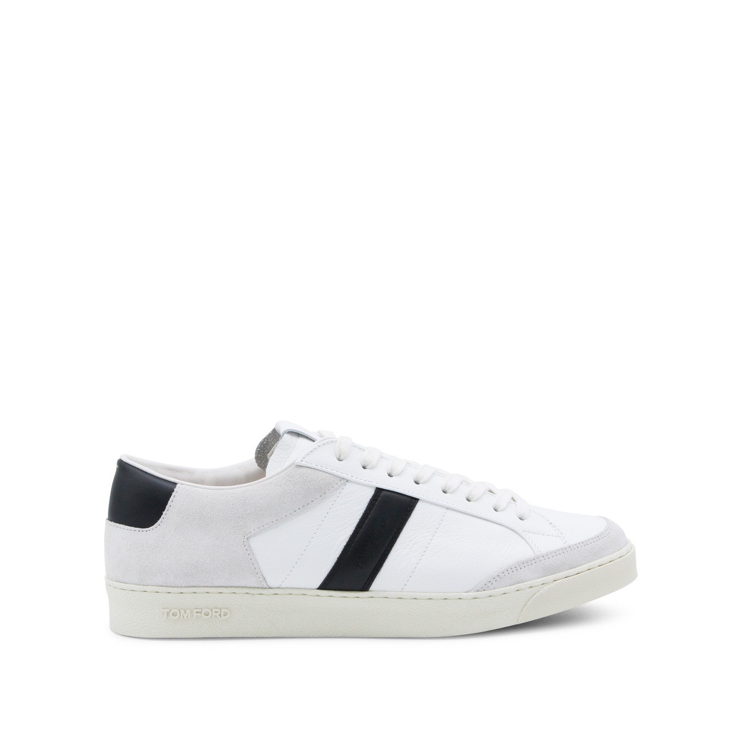 White sneakers from Tom Ford featuring round toe, laces fastening, leather sole, logo detail and suede.