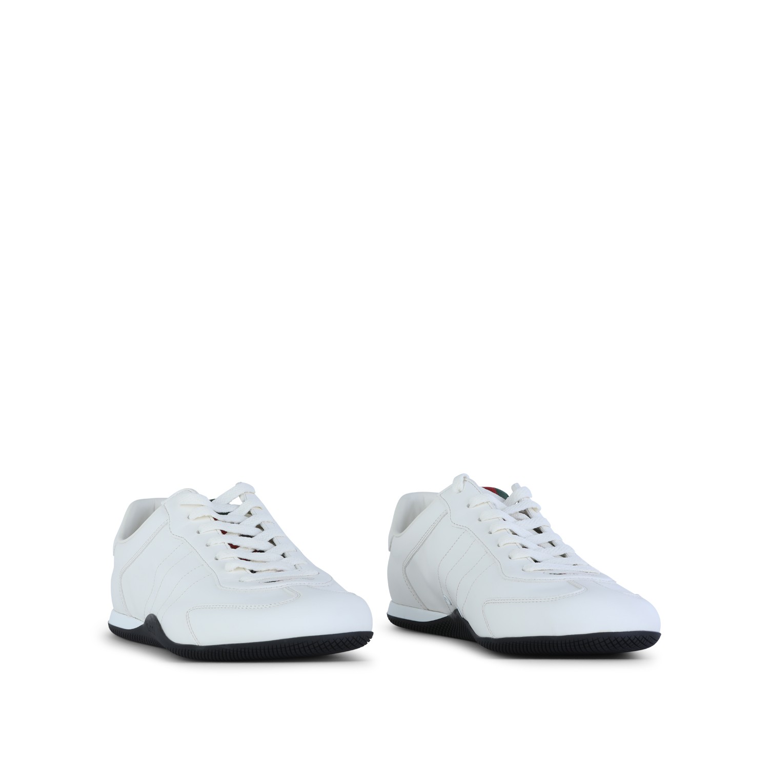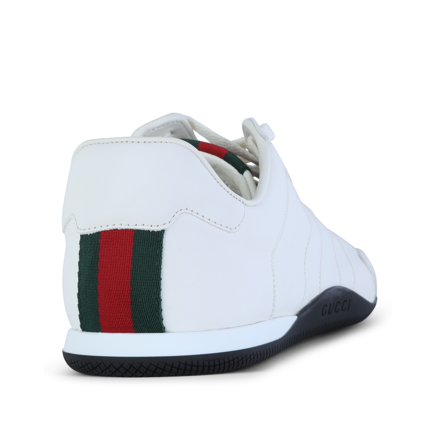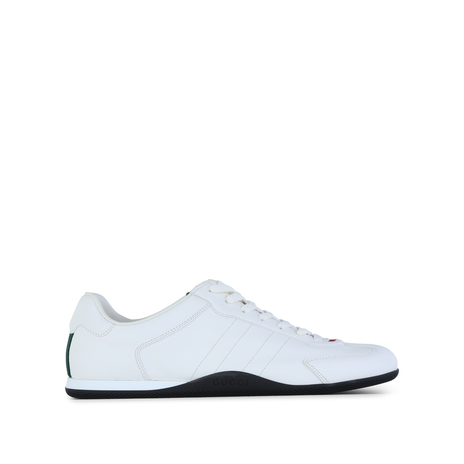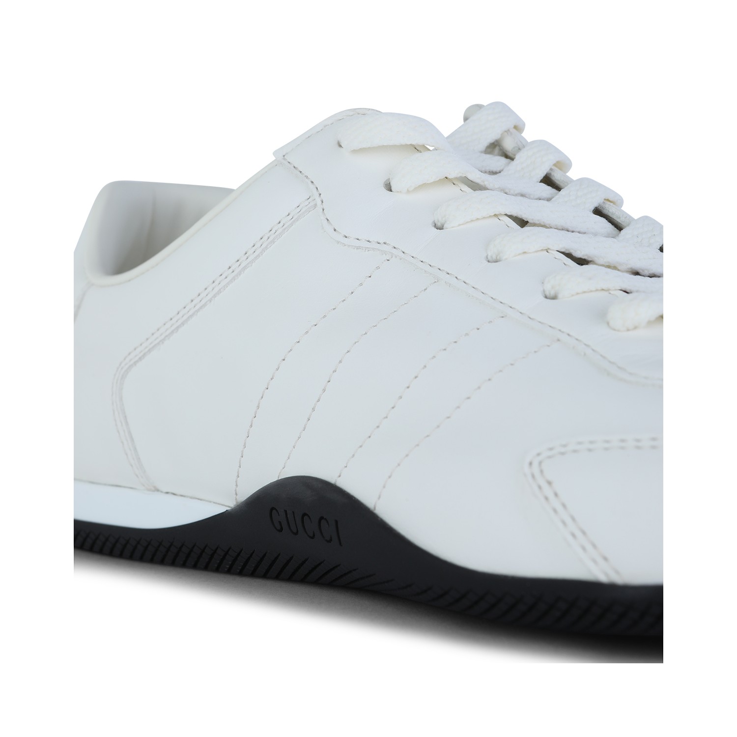 White leather Elan sneakers from Gucci featuring thin rubber sole, cotton laces, logo details and branded insole.